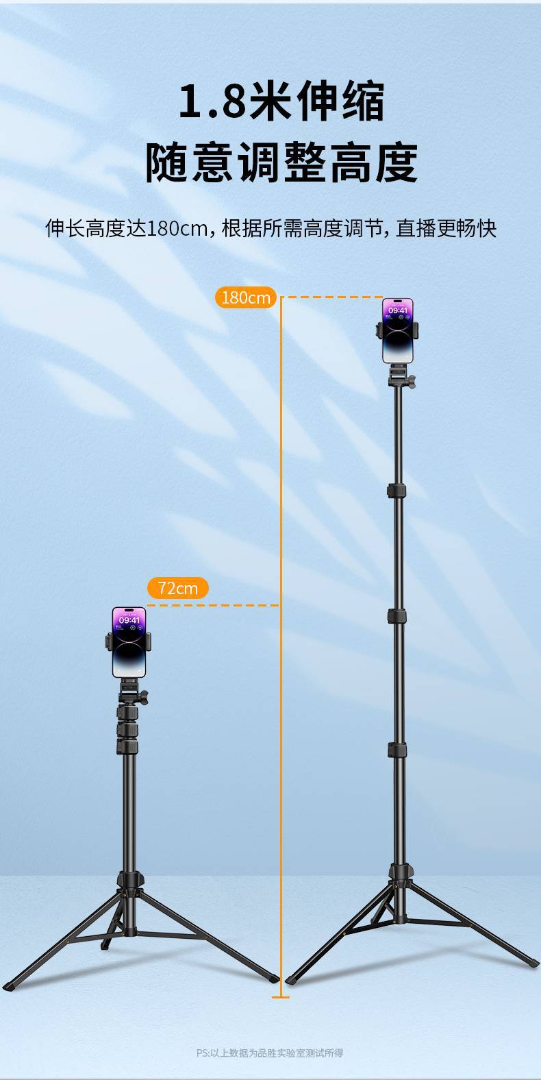 Soporte para teléfono móvil Pinsheng en línea Transmisión en vivo roja 1.8m Transmisión en vivo al aire libre multifunción portátil Soporte de piso de viaje de clase en línea