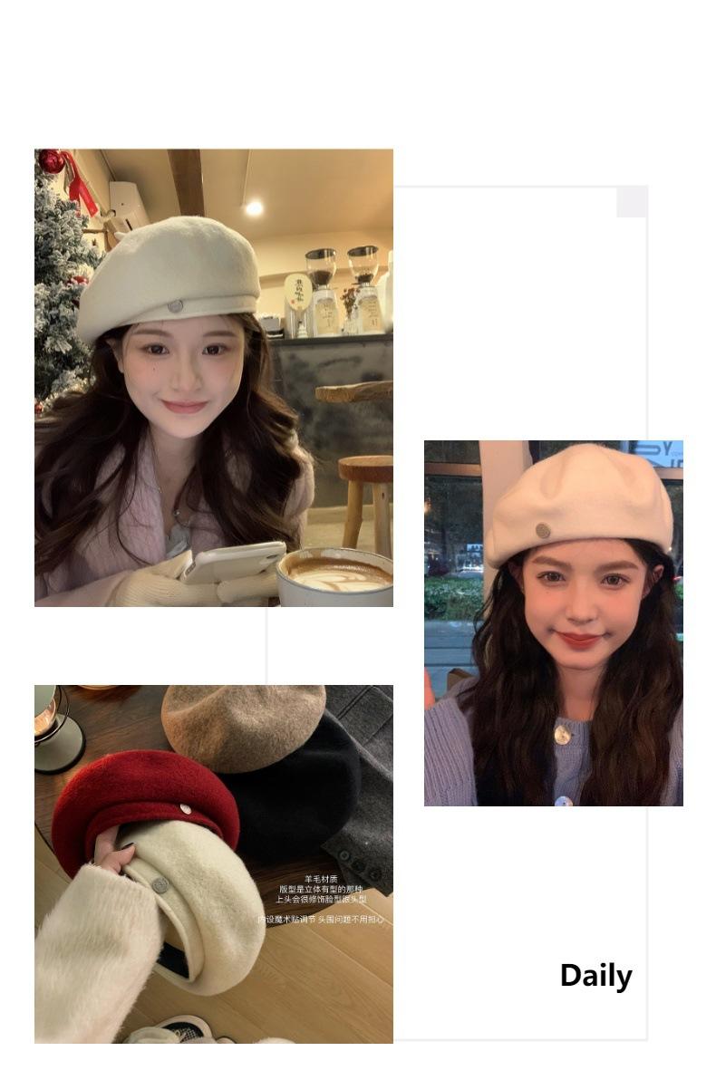 Boina de lana australiana de alta calidad para mujer, boina retro británica de otoño e invierno, gorro combinable, gorro de pintor japonés.
