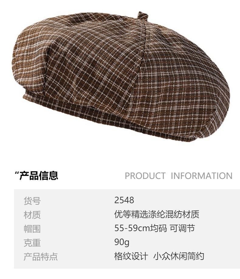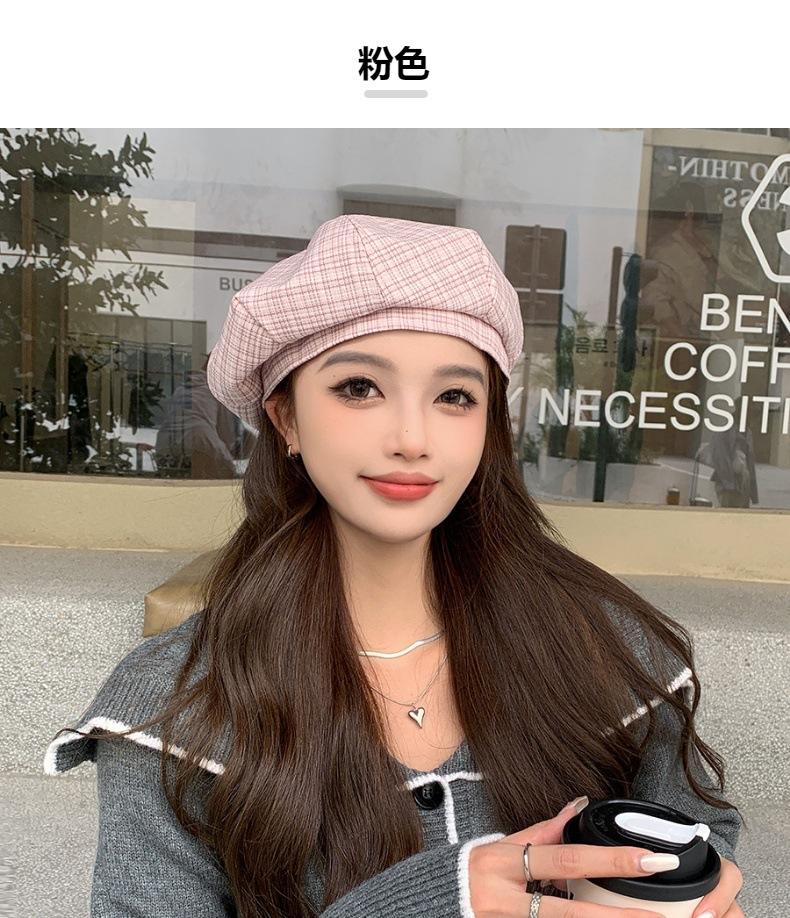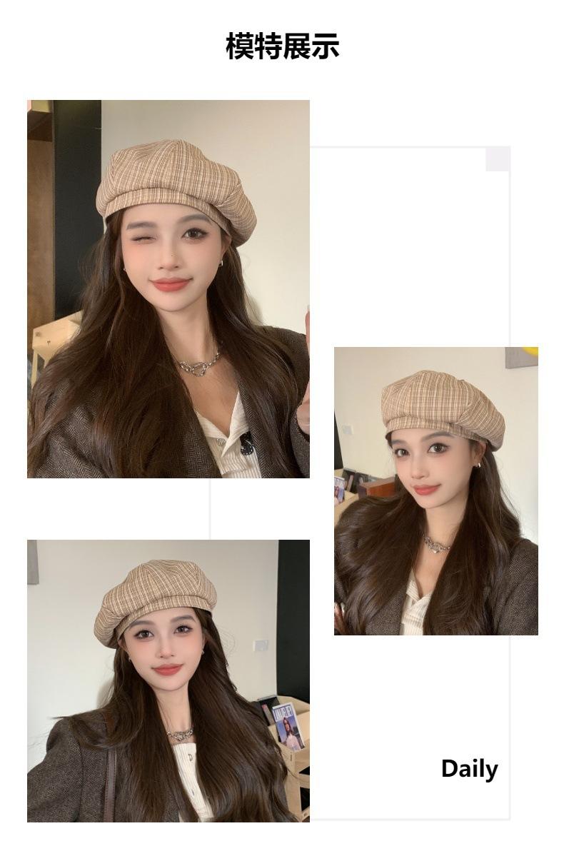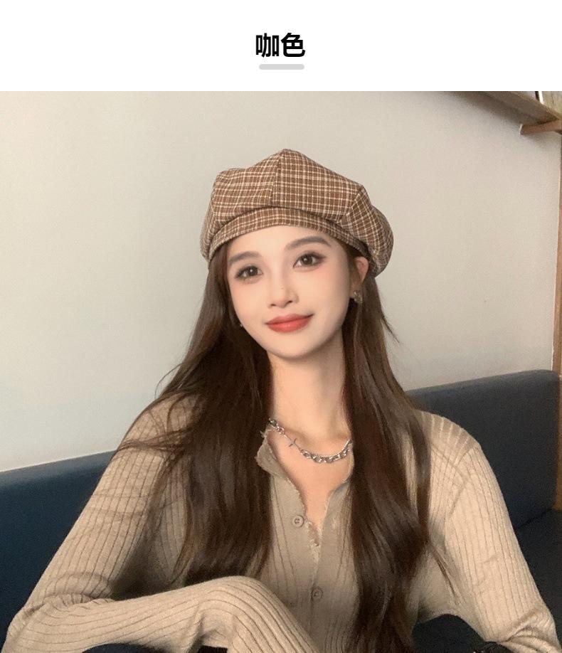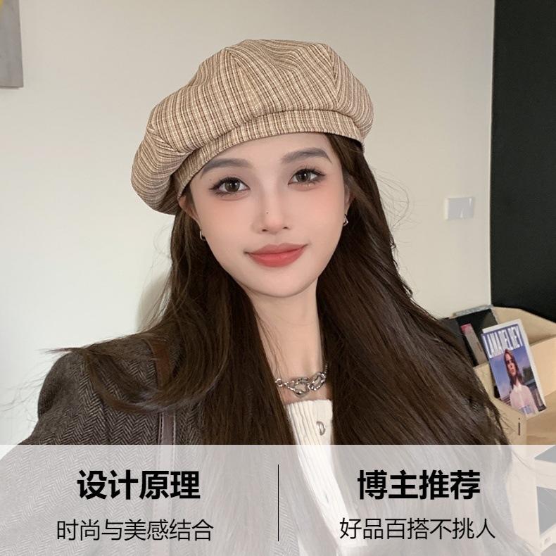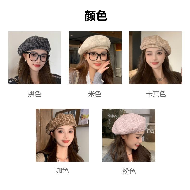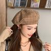 Boina nueva para mujer, elegante, informal, a cuadros, sencilla, estilo pintor, estilo japonés, estilo literario, sombrero de vendedor de periódicos.