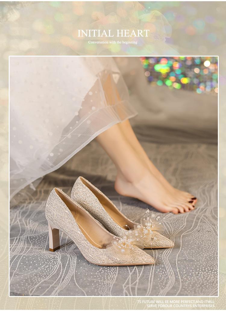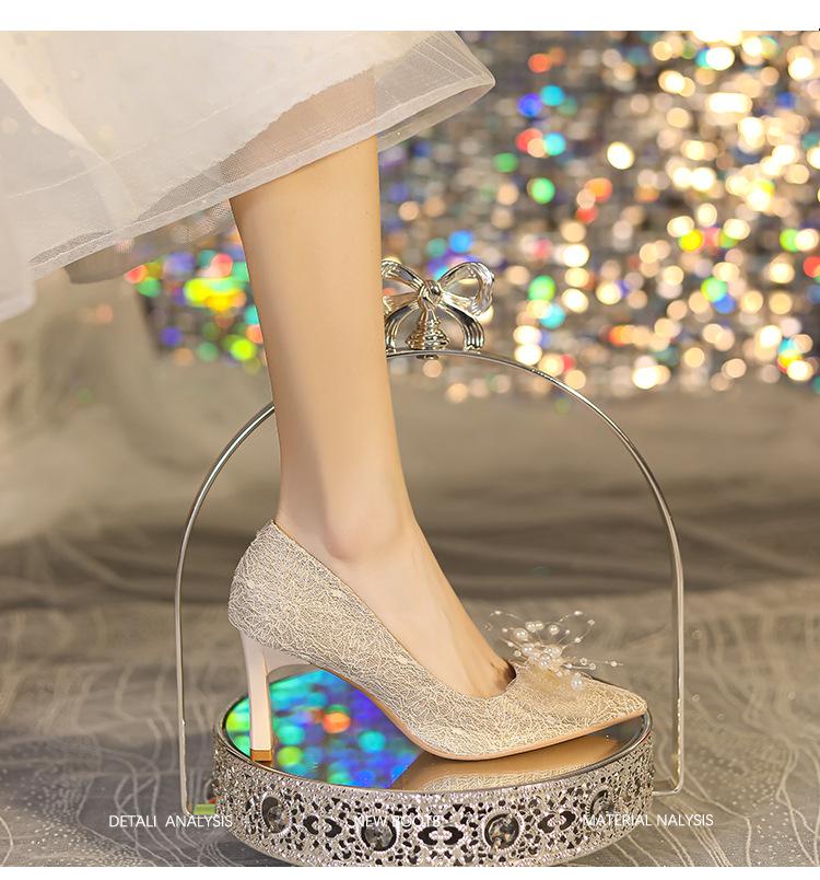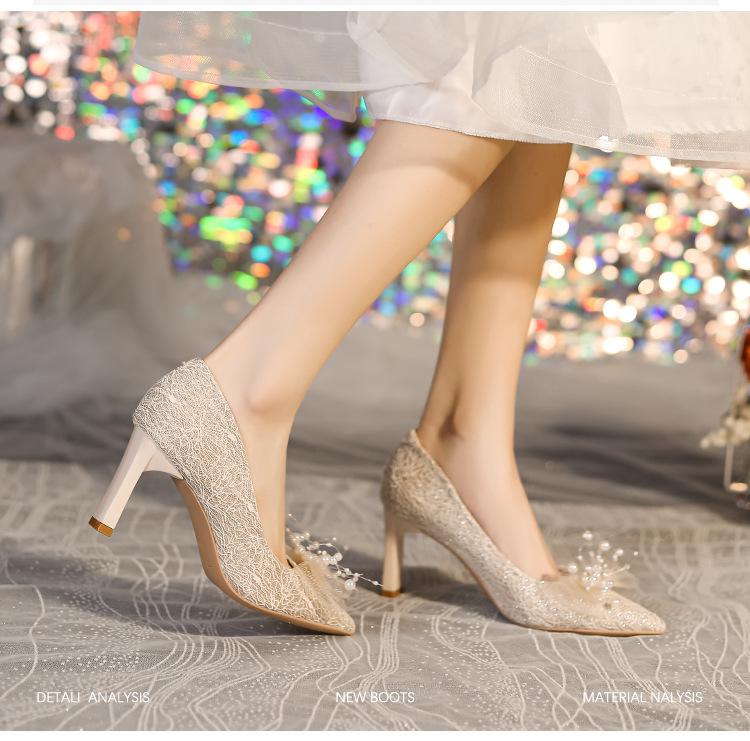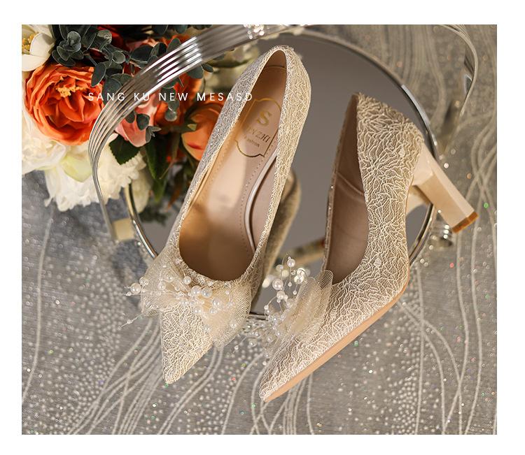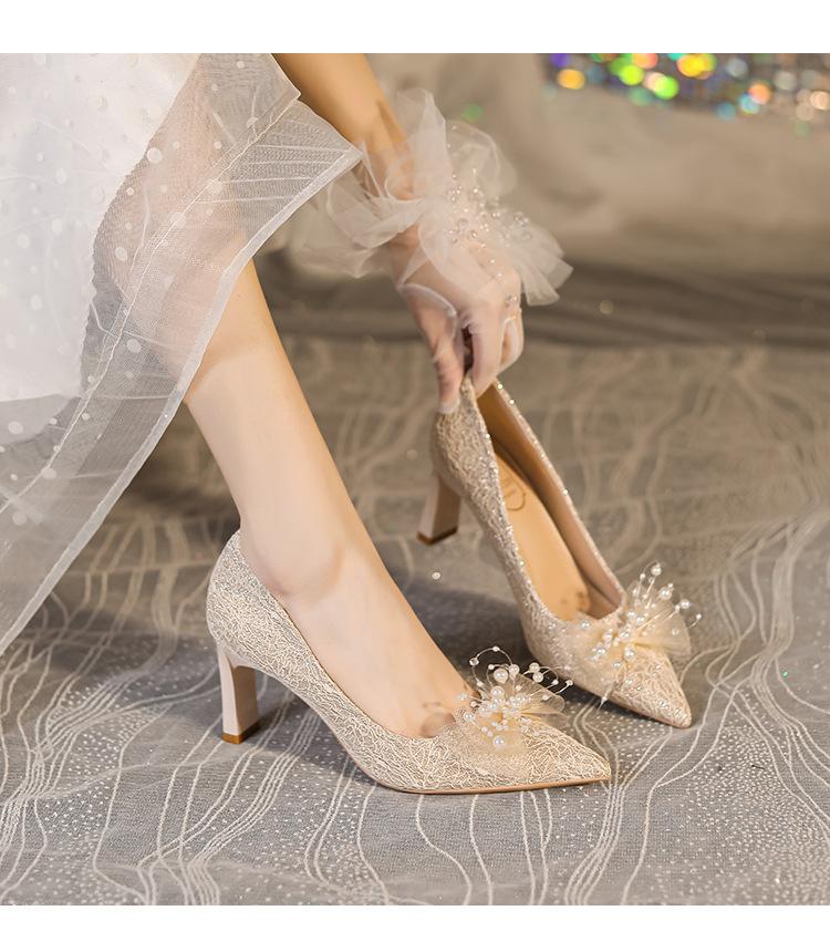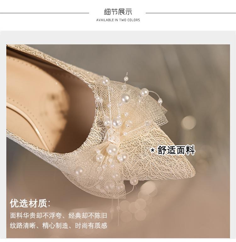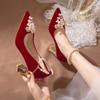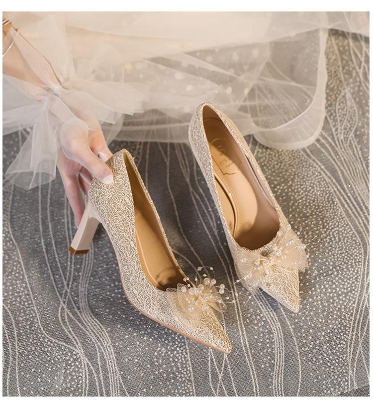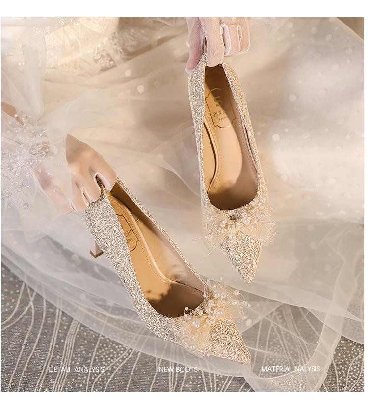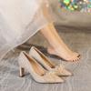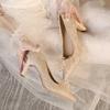 Zapatos de tacón alto de satén con punta puntiaguda para mujer, primavera 2024, nuevos zapatos de boda de corte bajo que se pueden usar con dos pies, zapatos de novia Xiuhe
