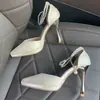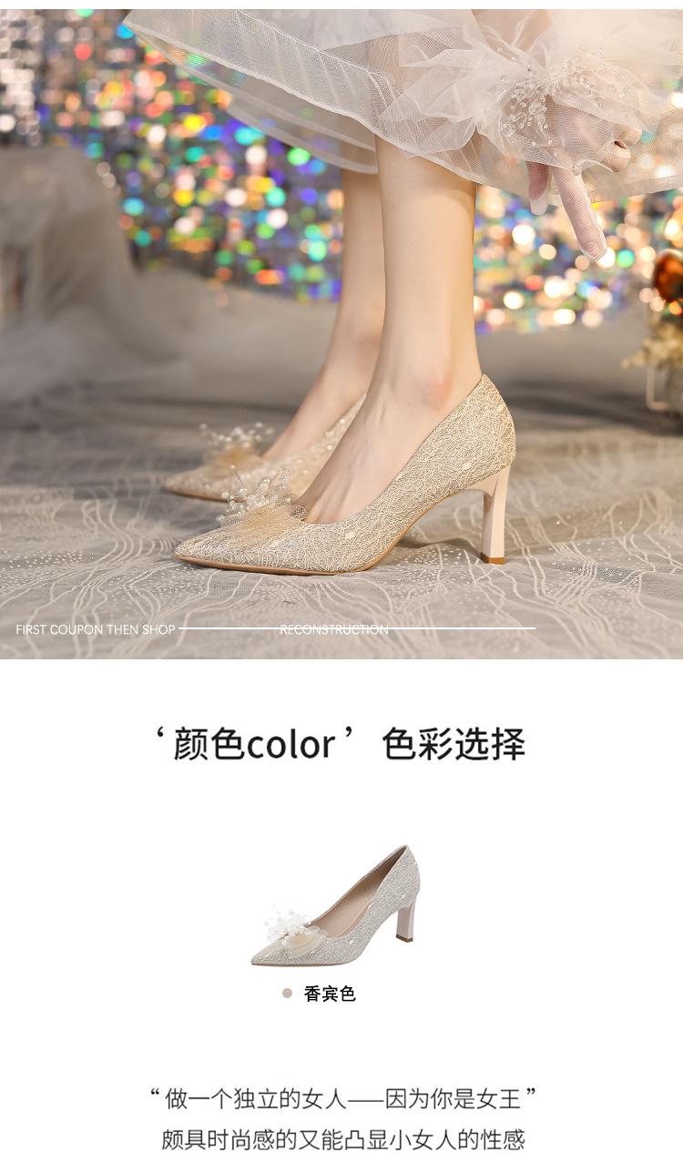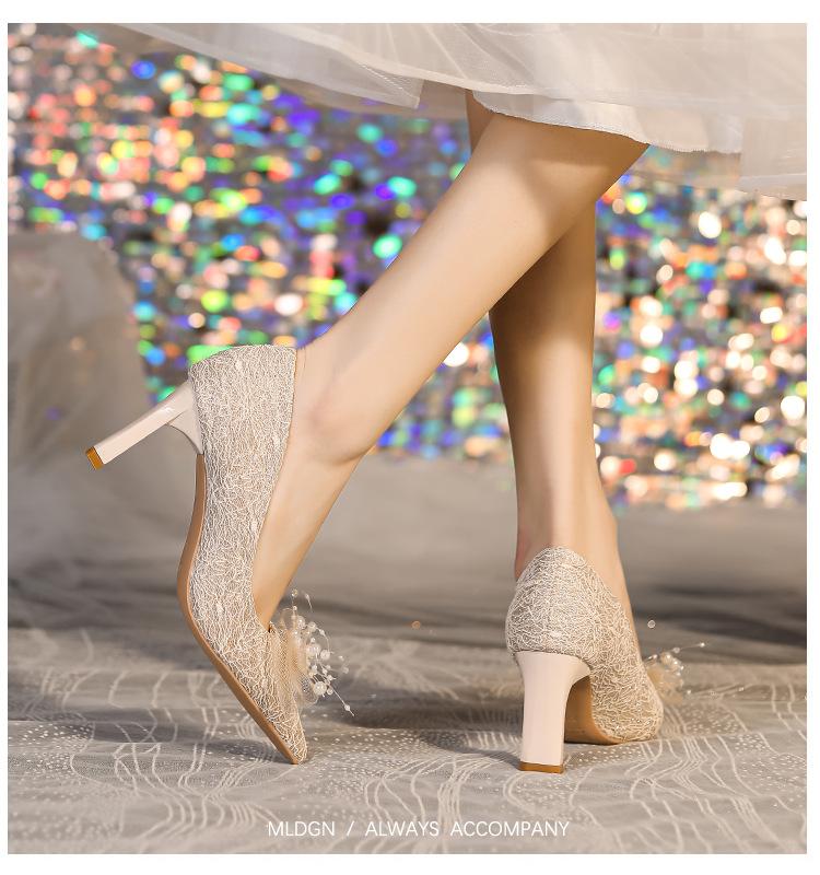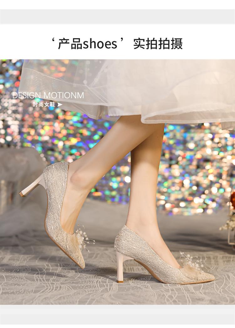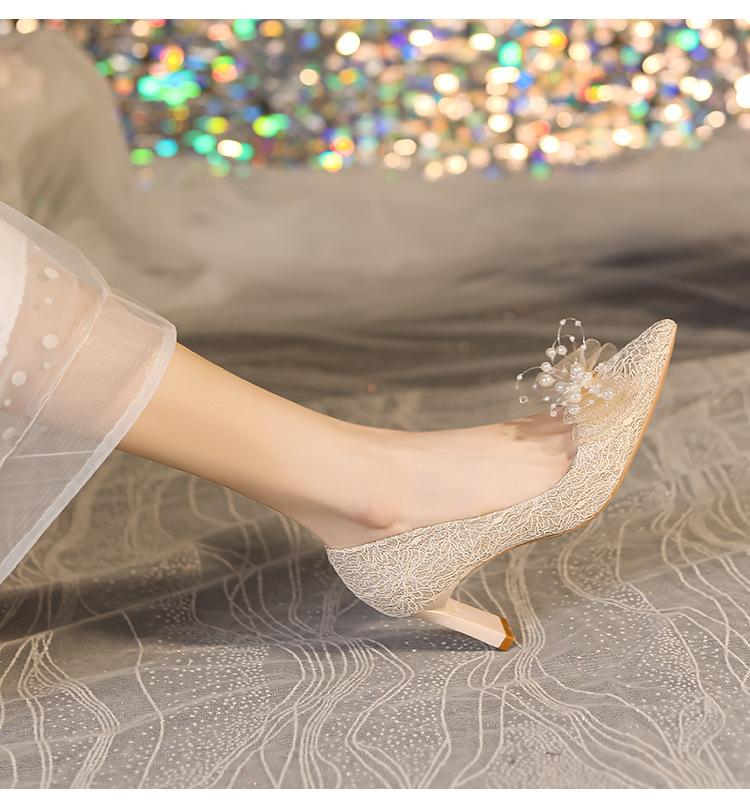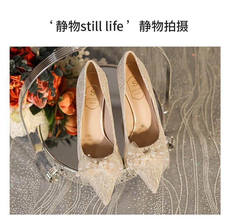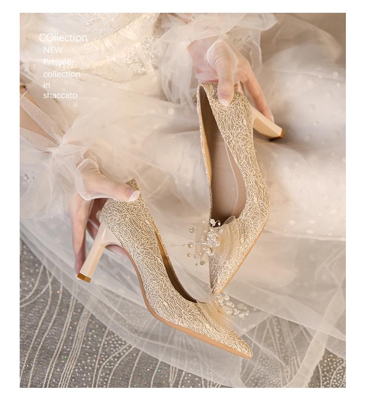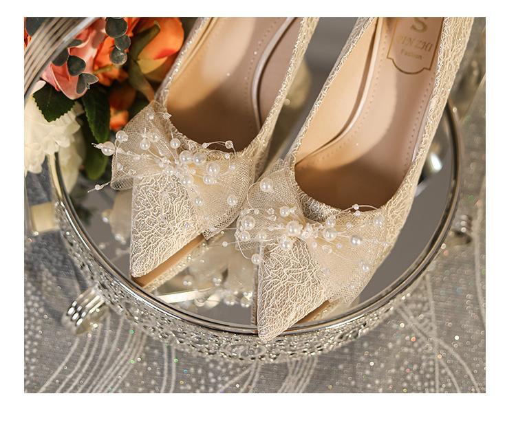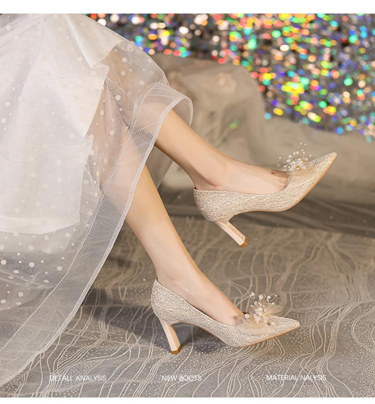 Zapatos de tacón alto de satén con punta puntiaguda para mujer, primavera 2024, nuevos zapatos de boda de corte bajo que se pueden usar con dos pies, zapatos de novia Xiuhe