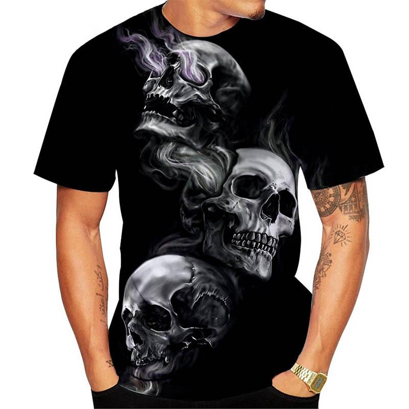 Playera de Moda de Verano Transfronteriza Europea y Americana 2025 Serie Estampado Calavera 3D Top de Hombre Urbano de Cuello Redondo y Manga Corta