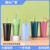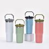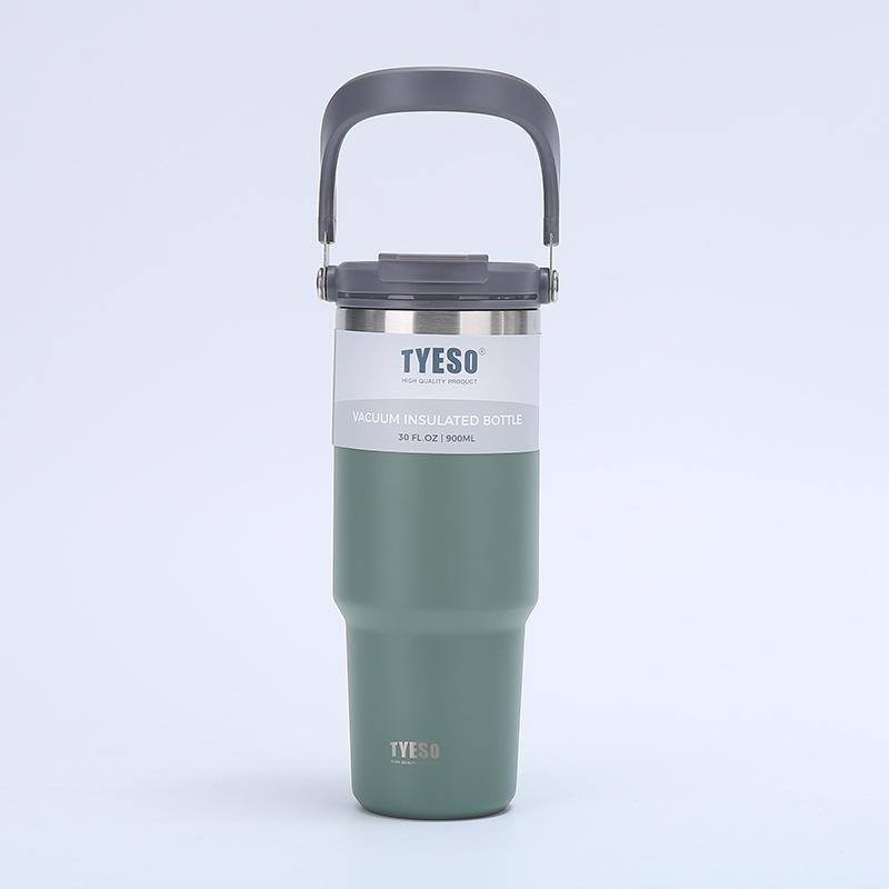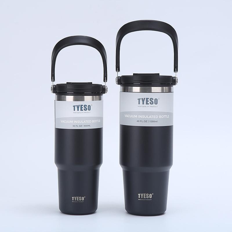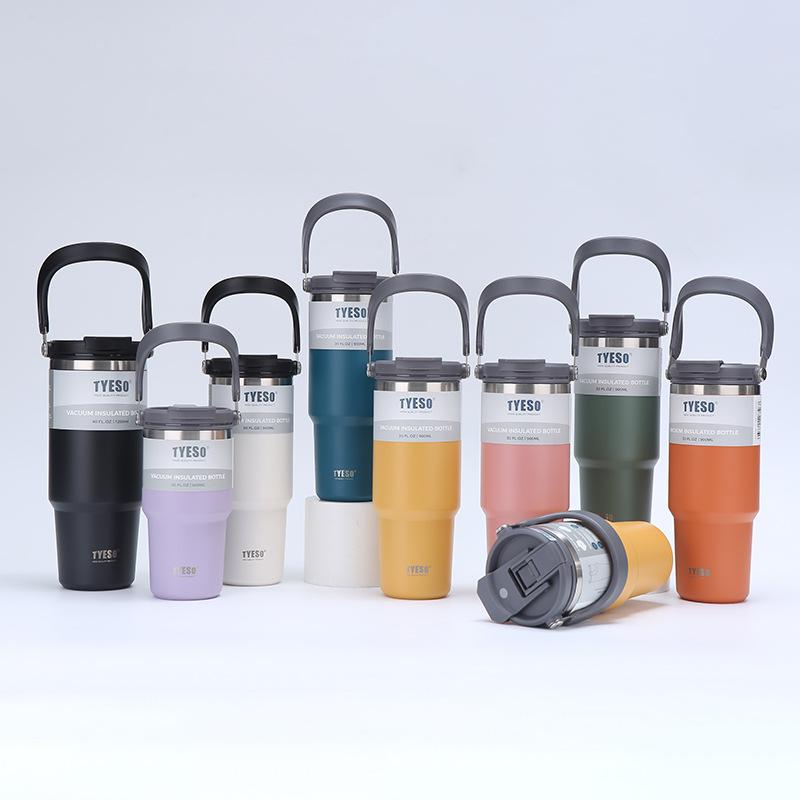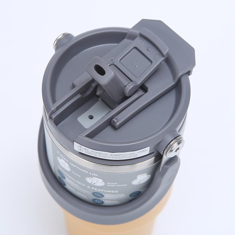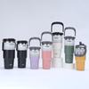 Nueva taza de vacío de acero inoxidable 304 transfronteriza, taza portátil de gran capacidad para automóvil con asa y pajita, taza de agua para automóvil