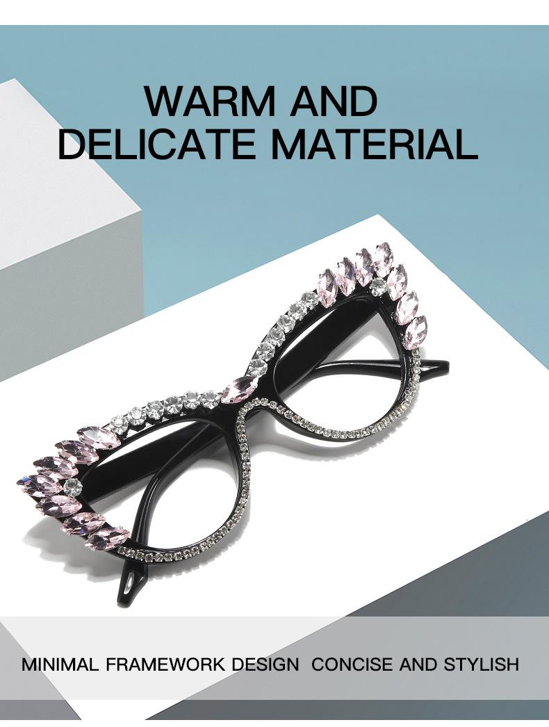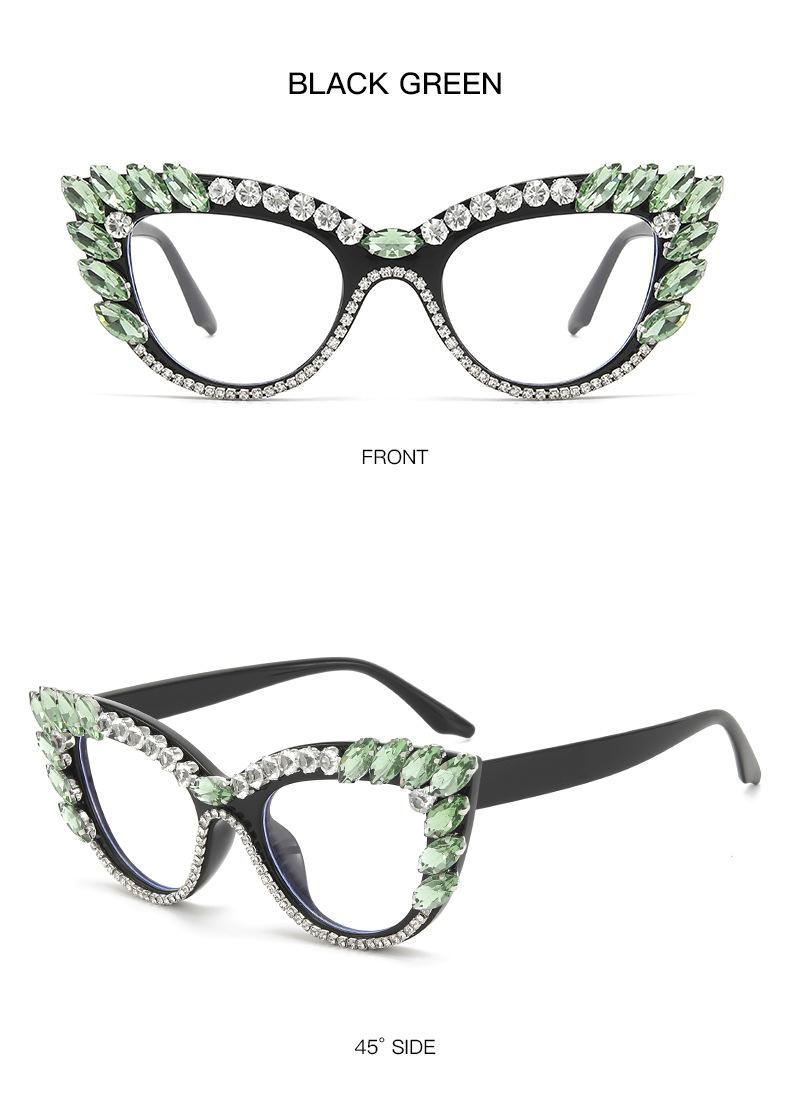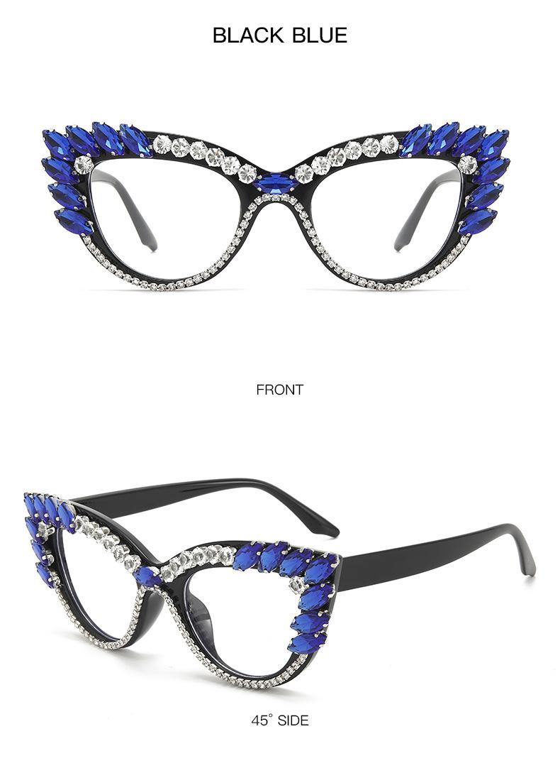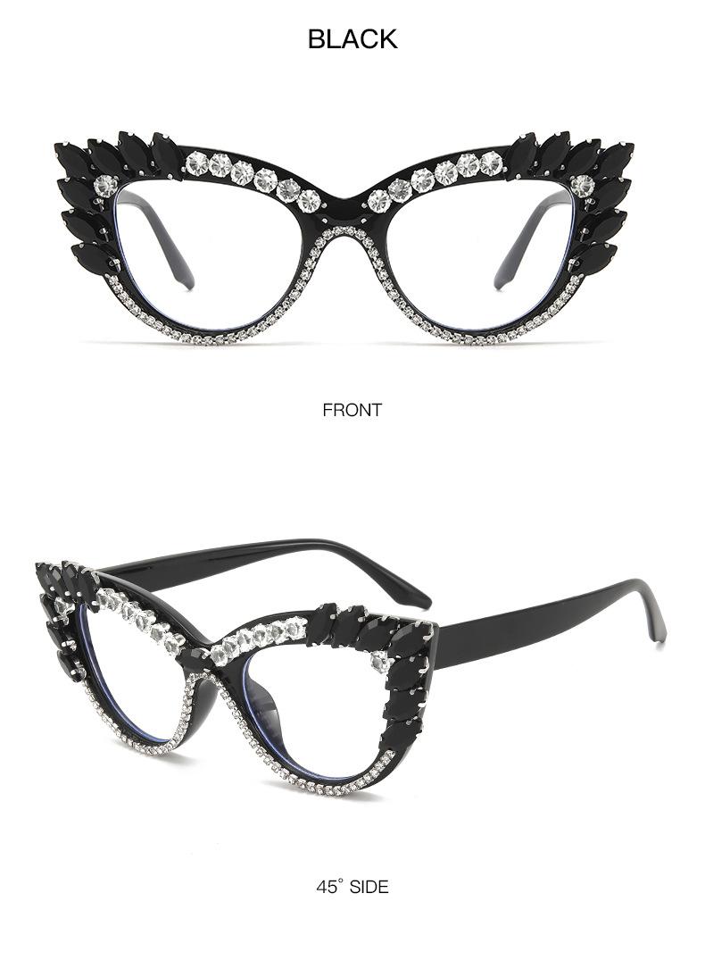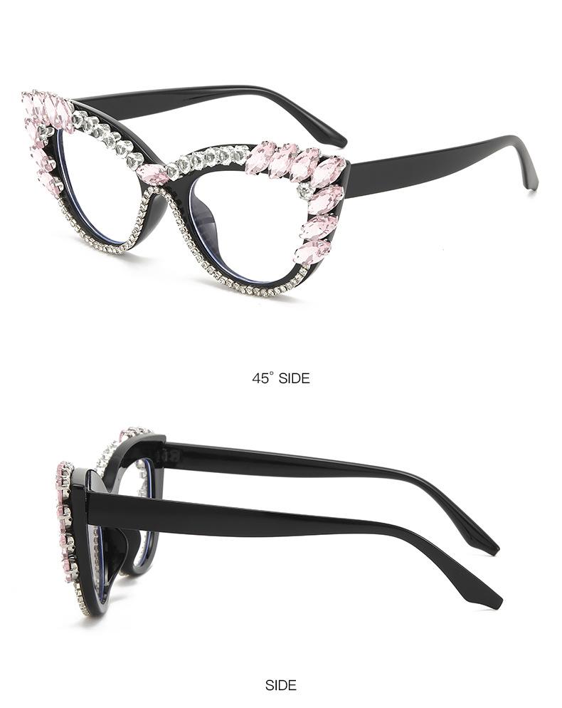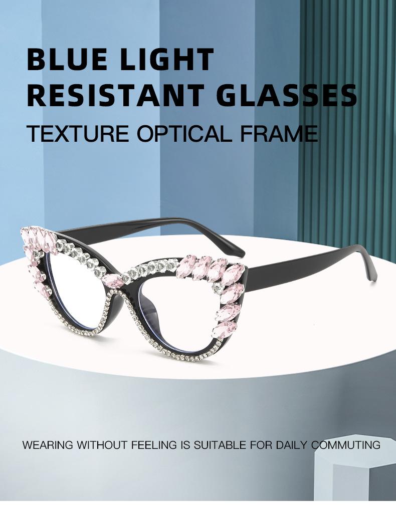 Nuevos Gafas Decorativas de Moda Populares en Internet Ins Ojo de Gato Europeo y Americano Diamante Luz Anti-azul Espejo Plano Protección Ocular Transfronteriza Moda Femenina