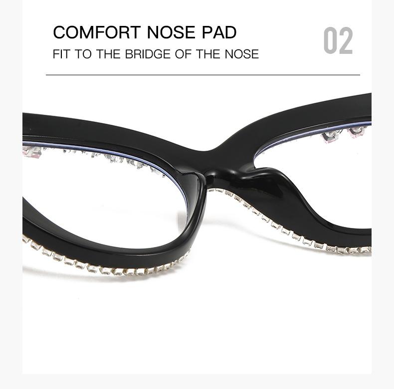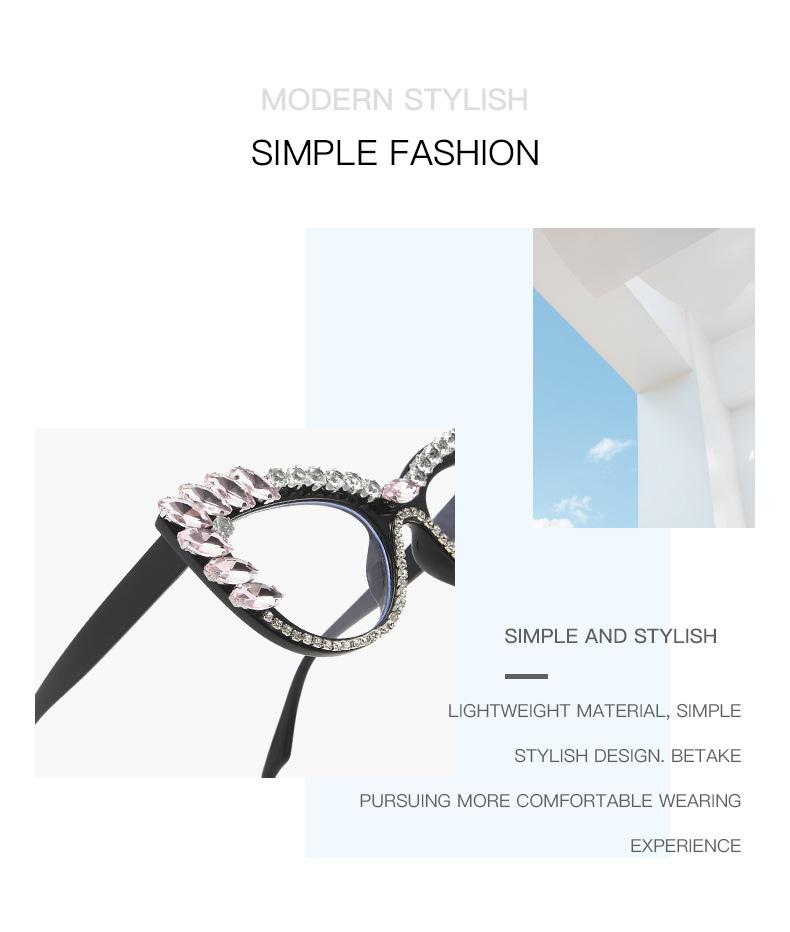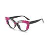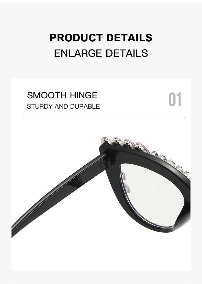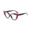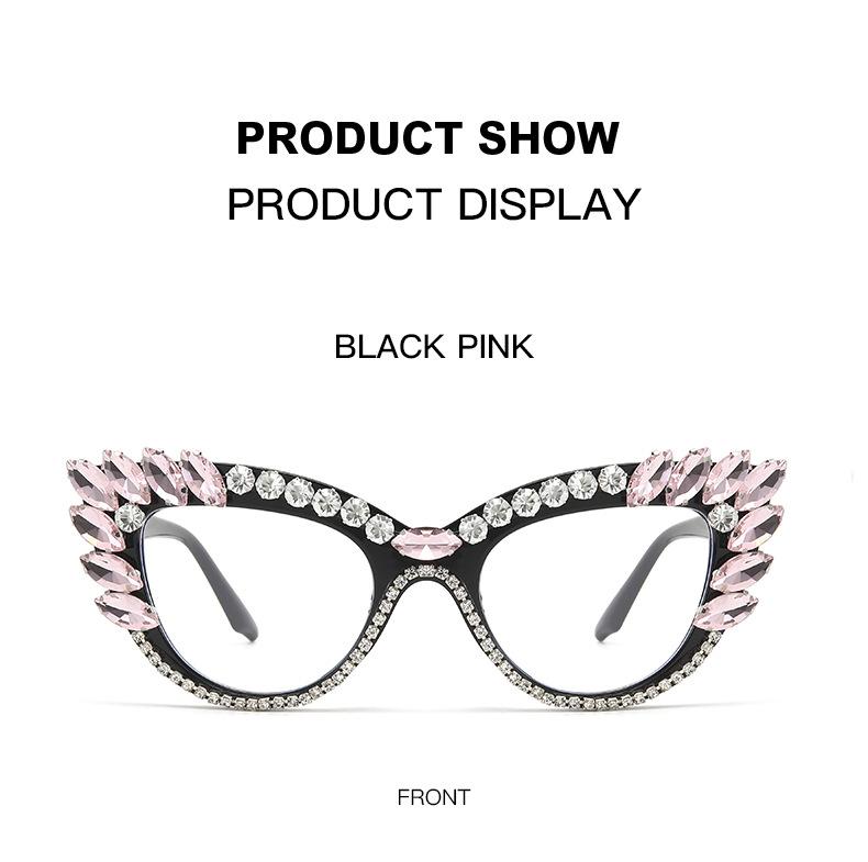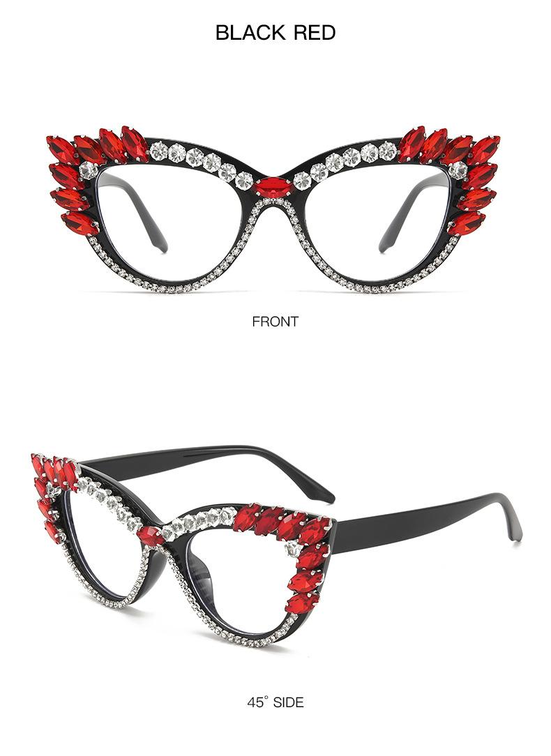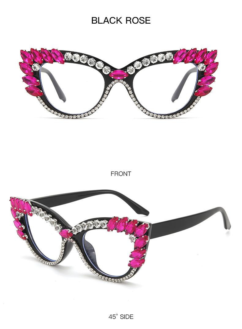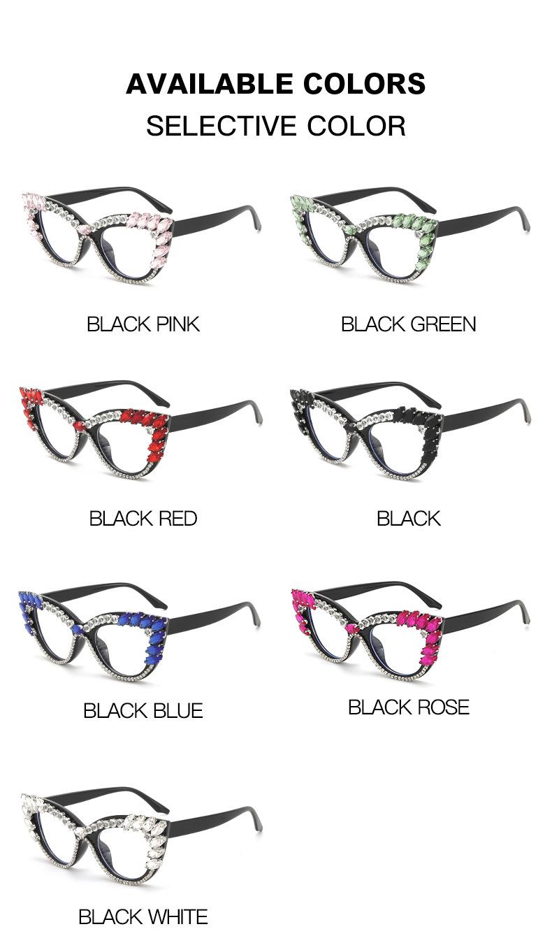 Nuevos Gafas Decorativas de Moda Populares en Internet Ins Ojo de Gato Europeo y Americano Diamante Luz Anti-azul Espejo Plano Protección Ocular Transfronteriza Moda Femenina
