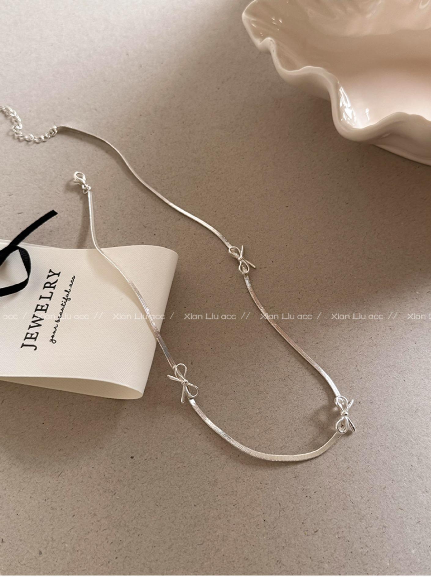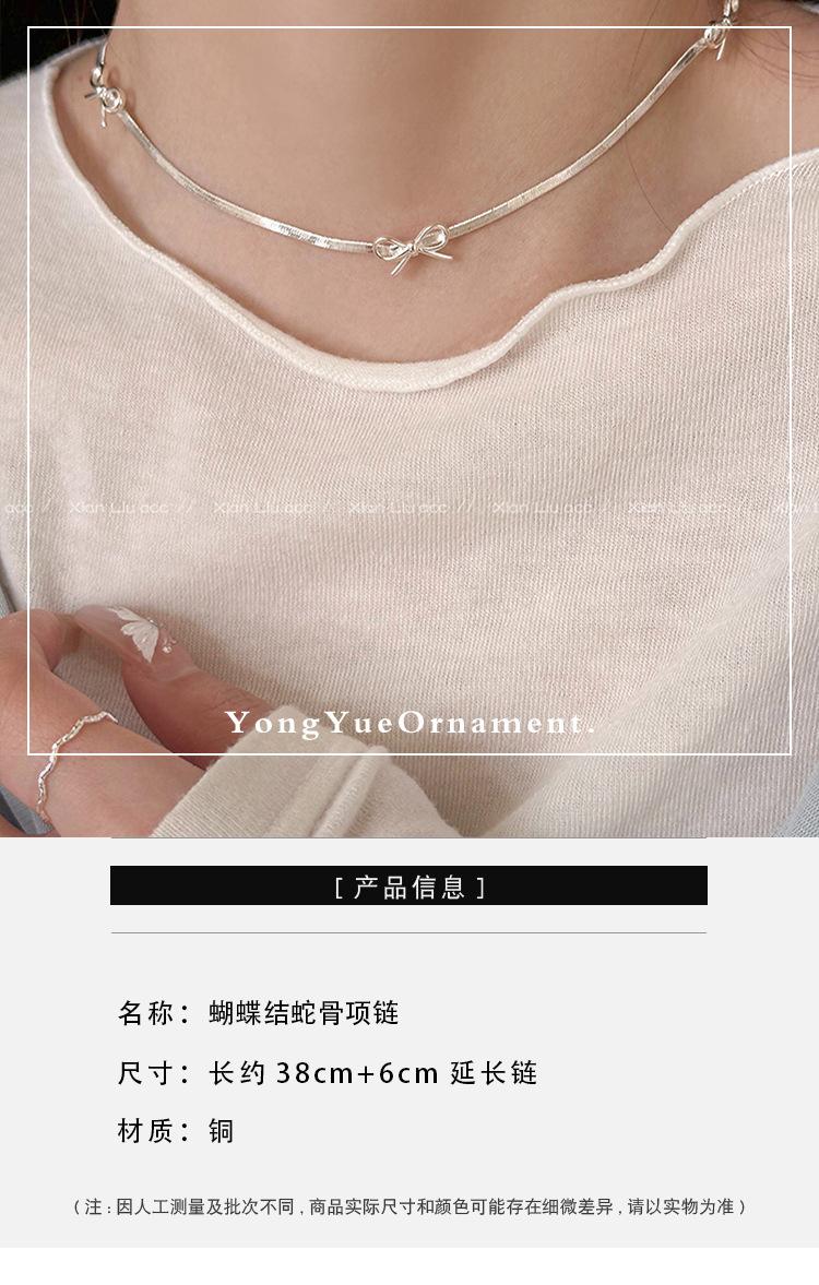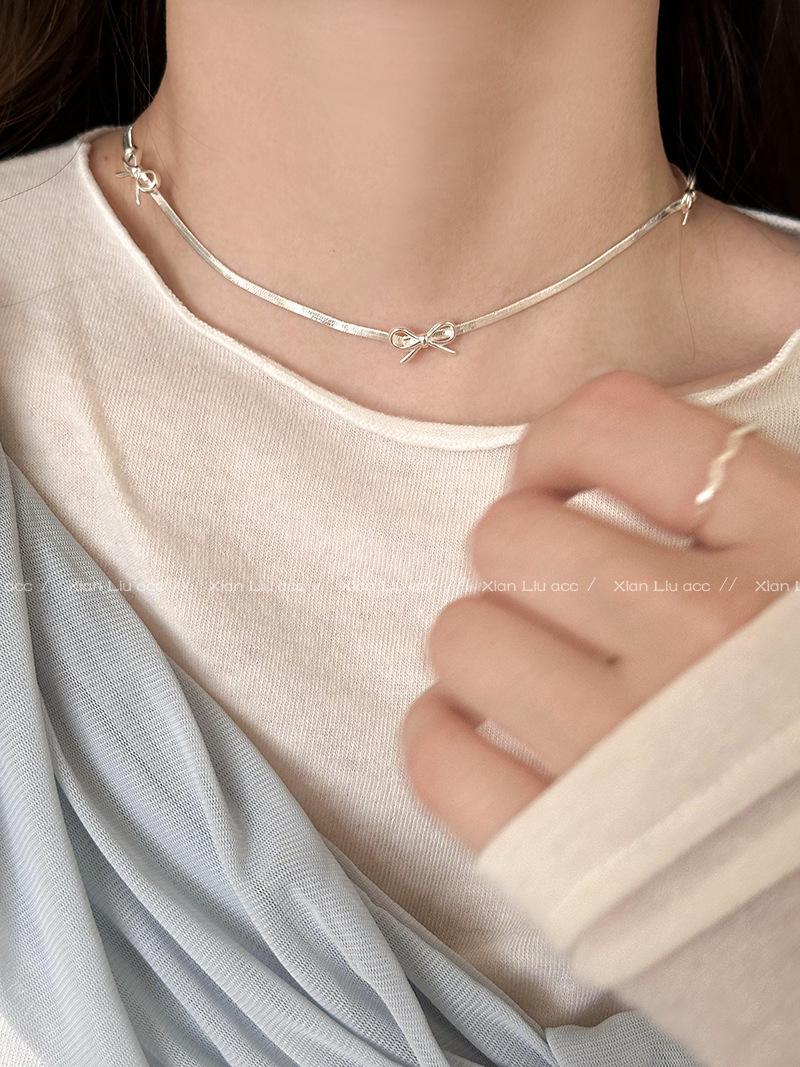 Collar minimalista estilo lazo plateado cadena hueso de serpiente para mujer lujo ligero nicho temperamento versátil cadena clavícula venta al por mayor