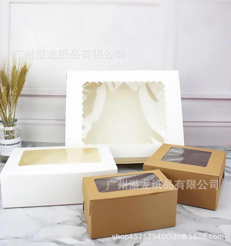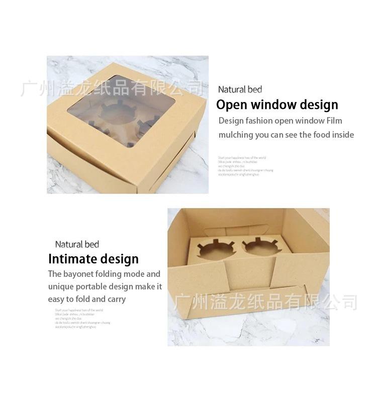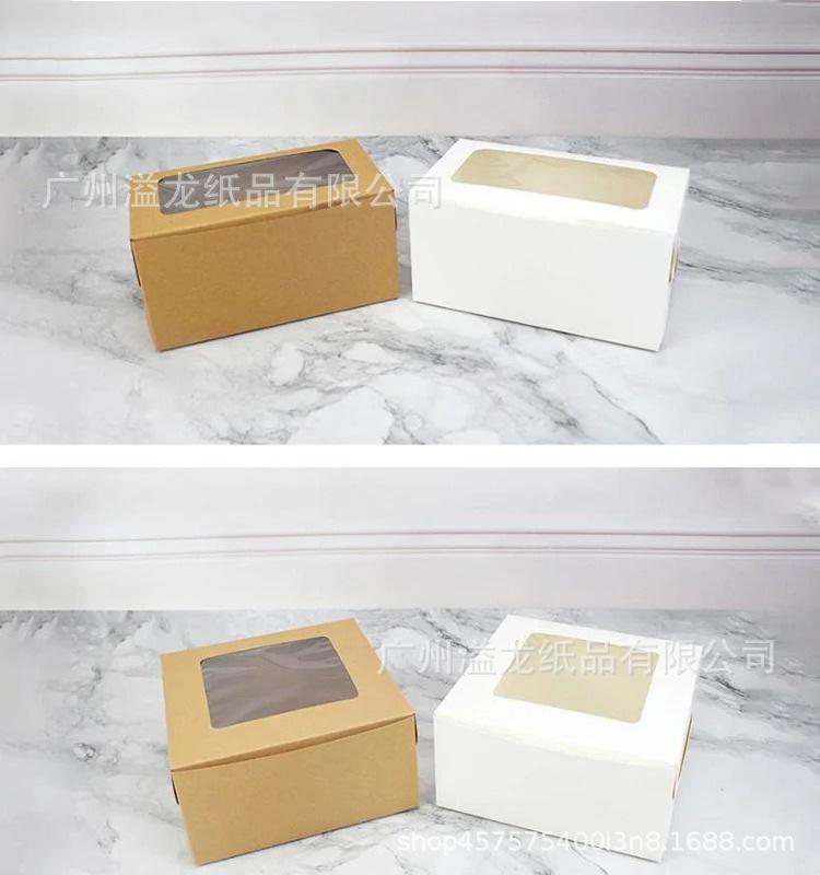 Caja de papel Kraft desechable para pastel de panadería o fiesta de cumpleaños, caja de embalaje de pastel de taza de papel personalizada con ventana transparente