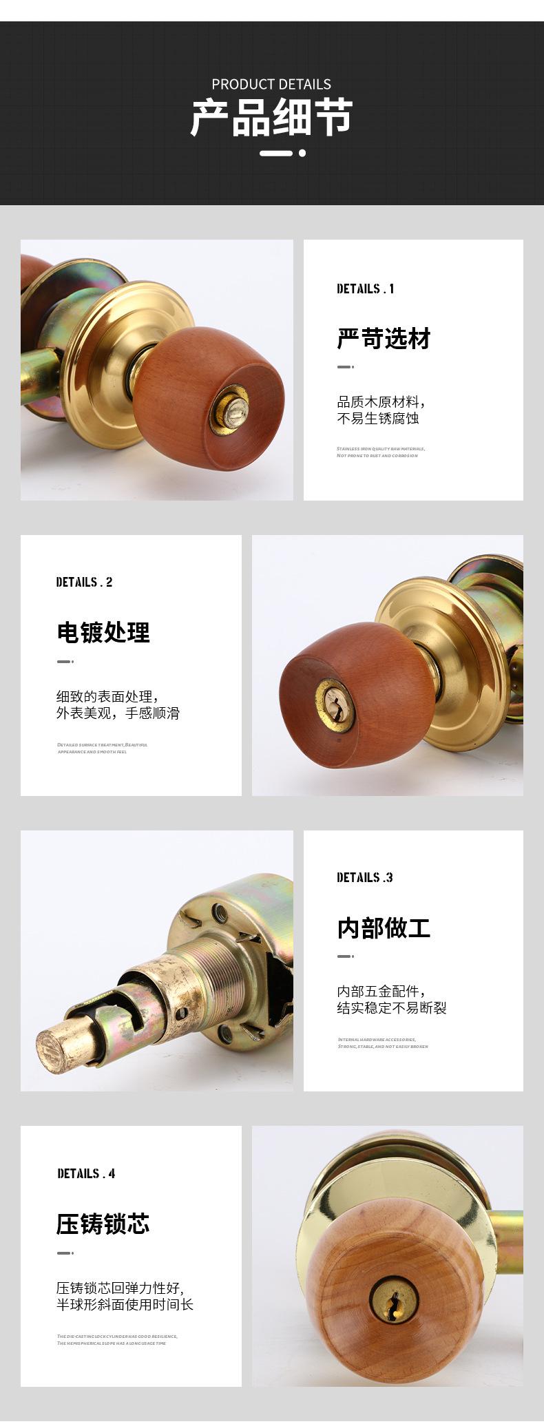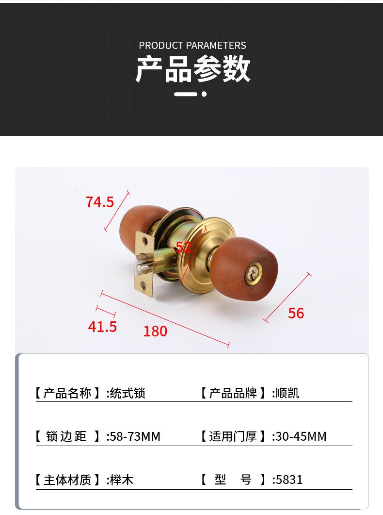 Cerradura de bola universal de haya, cerradura de cabeza redonda para puerta de dormitorio interior, cerradura de puerta de madera maciza, cerradura de bola al por mayor