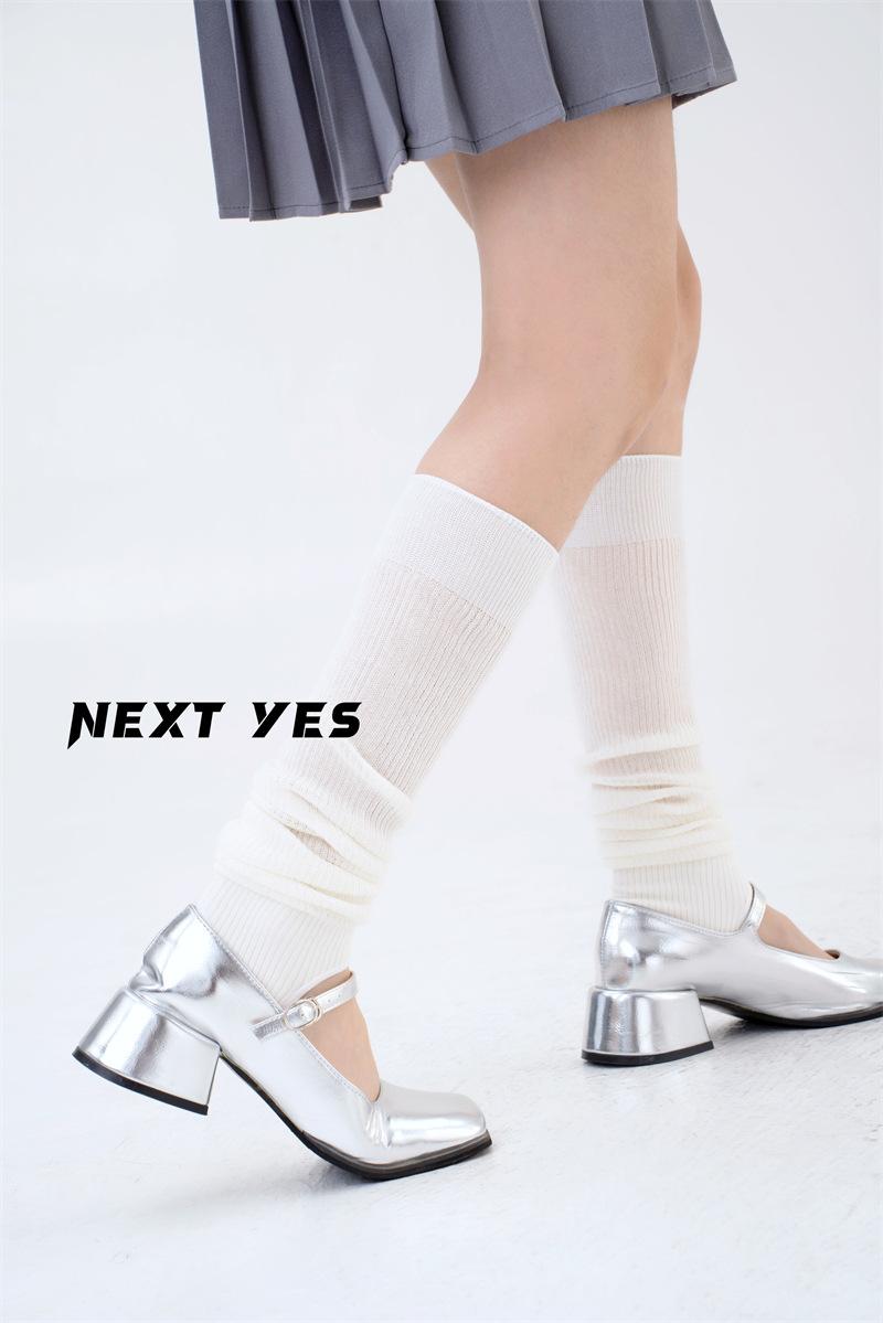 Zhuji nuevo color puro estilo simple dulce paso pie estilo ultrafino puede ser sobre la rodilla se puede apilar calcetines adelgazantes de moda