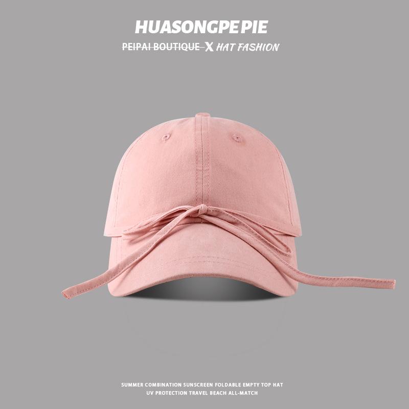 Gorra con visera y lazo para mujer, con aspecto de rostro pequeño, de red roja, gorra de béisbol de moda, dulce sombrero de protección solar, sombrero para el sol para estudiantes, combinable con todo.