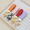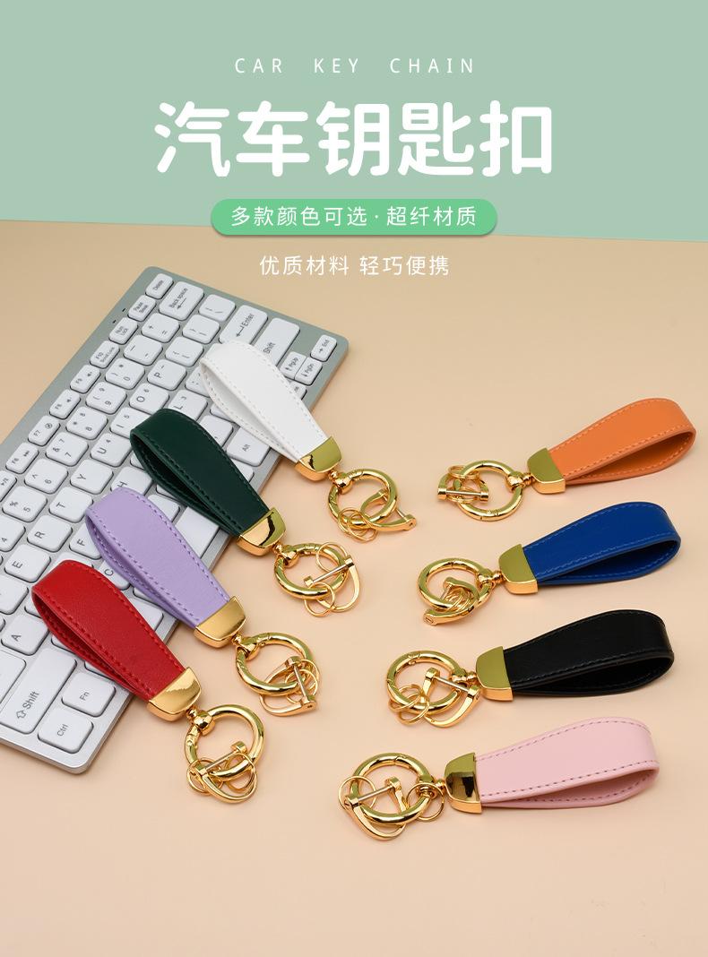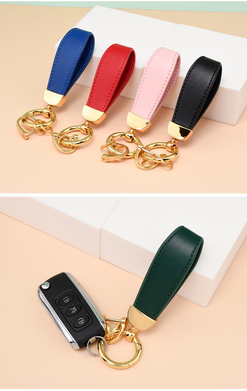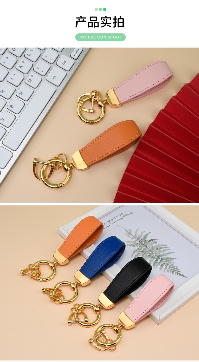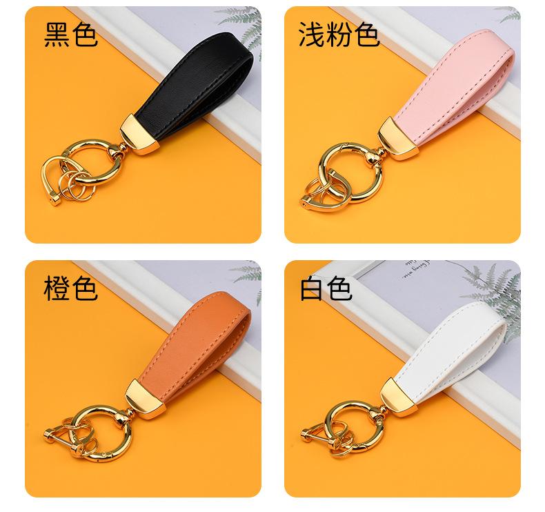 Llavero creativo de cuero con hebilla de herradura de metal para coche, con grabado láser y logotipo personalizado.