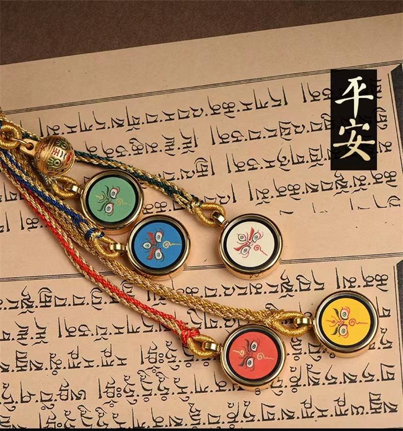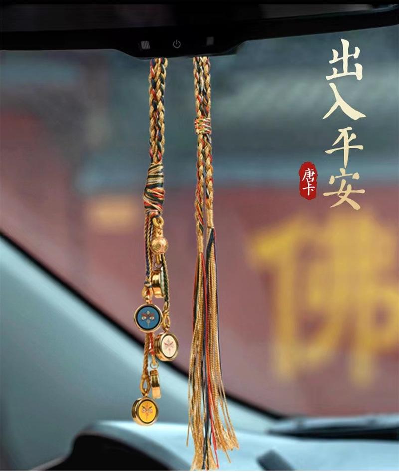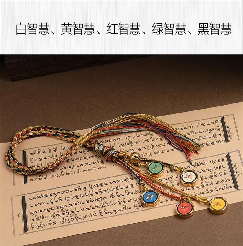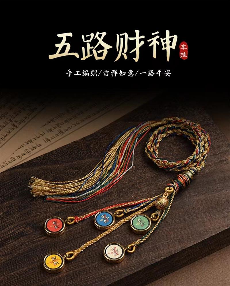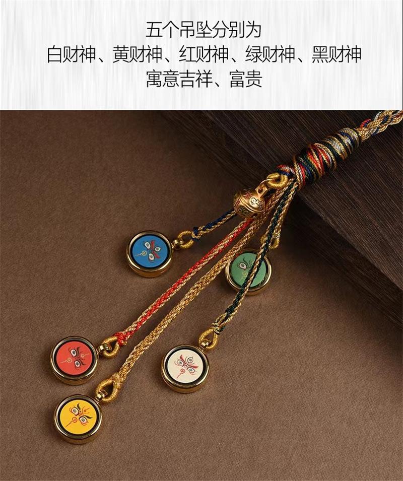 Xizang Thangka Cinco Dioses de la Riqueza Colgante para Coche Pequeño Colgante Thangka Hecho a Mano Colgante de Cuerda Dios Amarillo de la Riqueza Caja Gawu Joyería