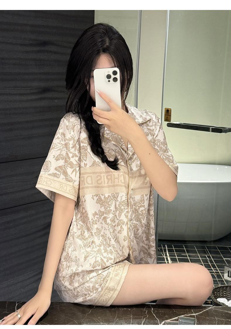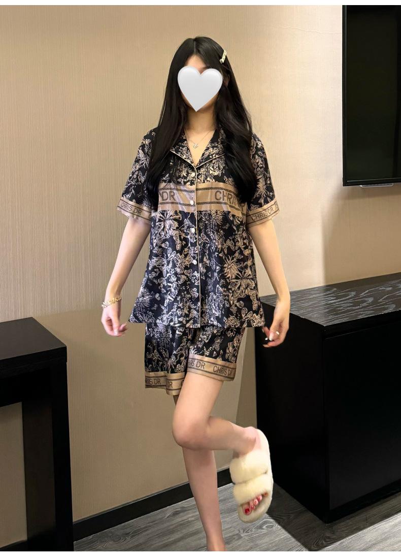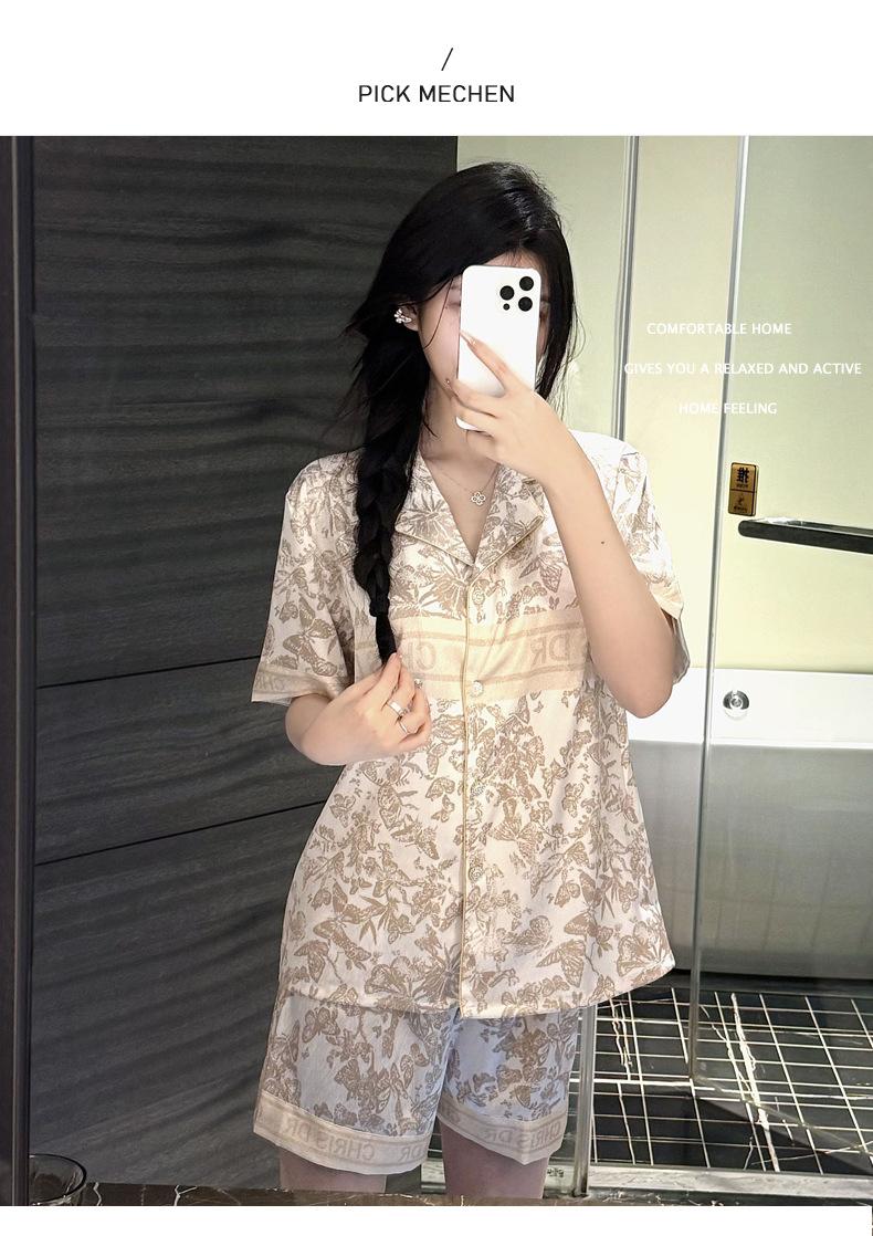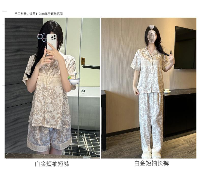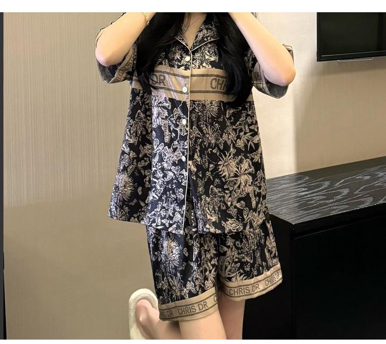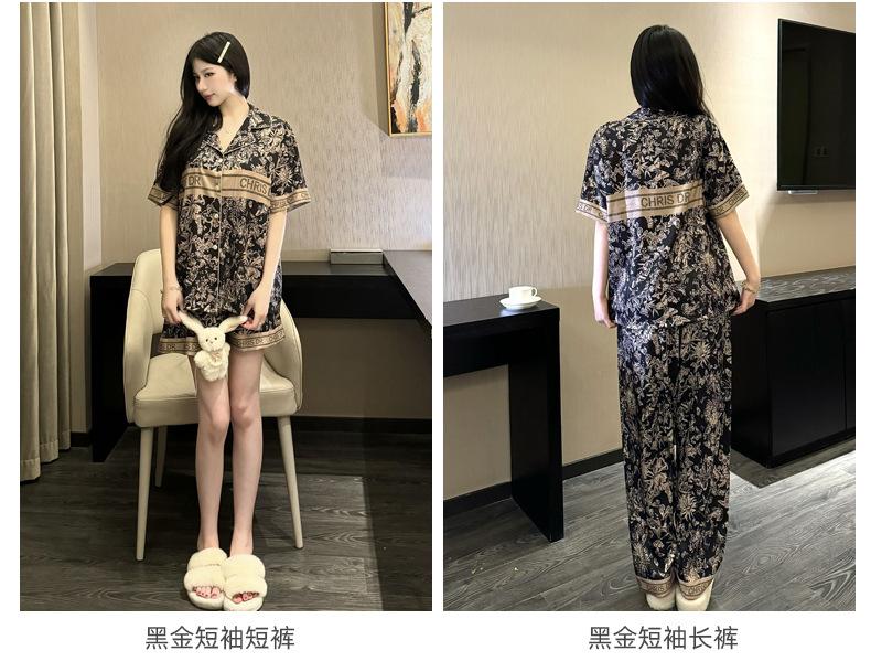 Pijamas de verano para mujer, pantalones cortos de manga corta, traje de tres piezas, nuevo estilo 2024, ropa de hogar fina de seda de hielo de alta gama
