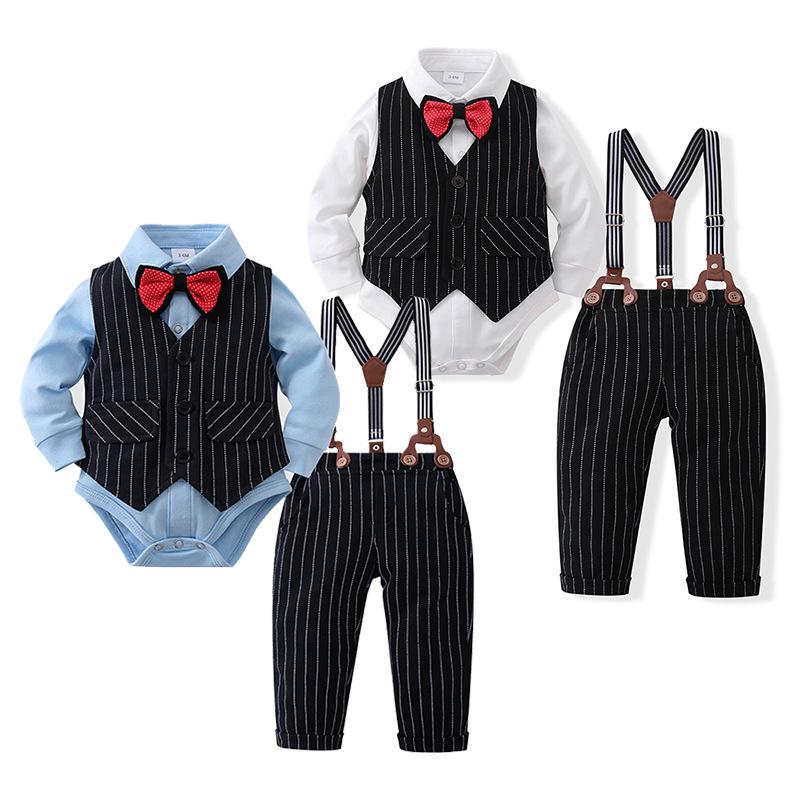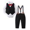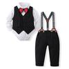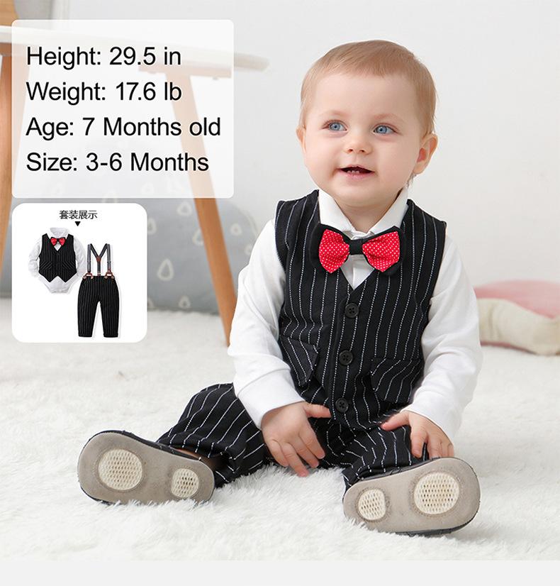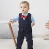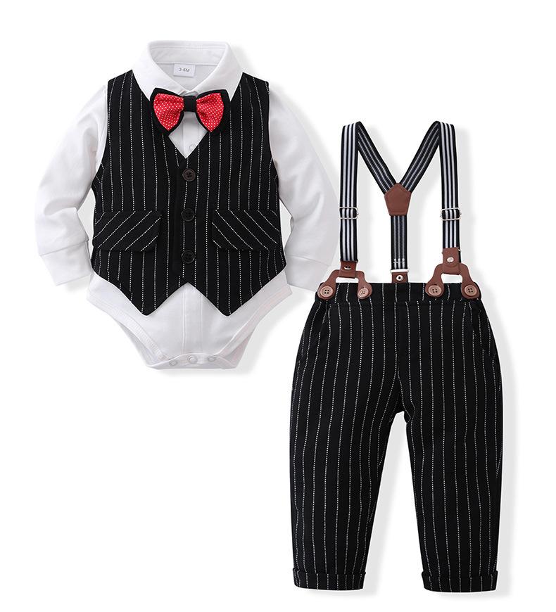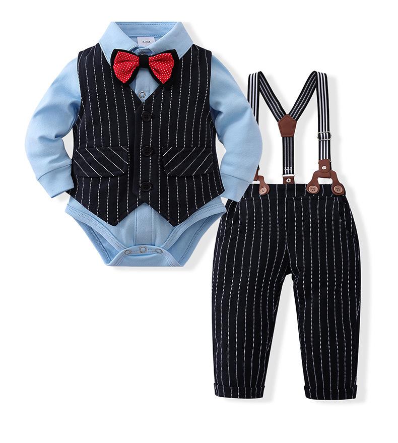 3M-6M-9M-12M-18M Ropa infantil de comercio exterior para bebé, primavera, mangas largas, ropa de otoño para niño, overol de caballero británico, conjunto de tres piezas, mameluco, traje infantil