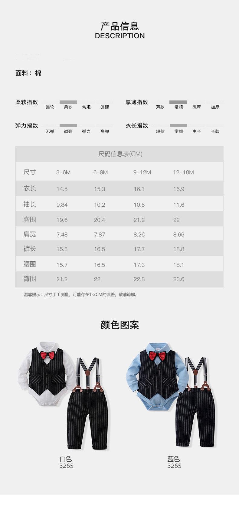 Ropa infantil de comercio exterior, ropa de bebé de primavera y otoño para niño, mono de caballero para bebé, mono de tres piezas, traje para niño