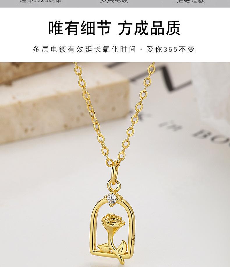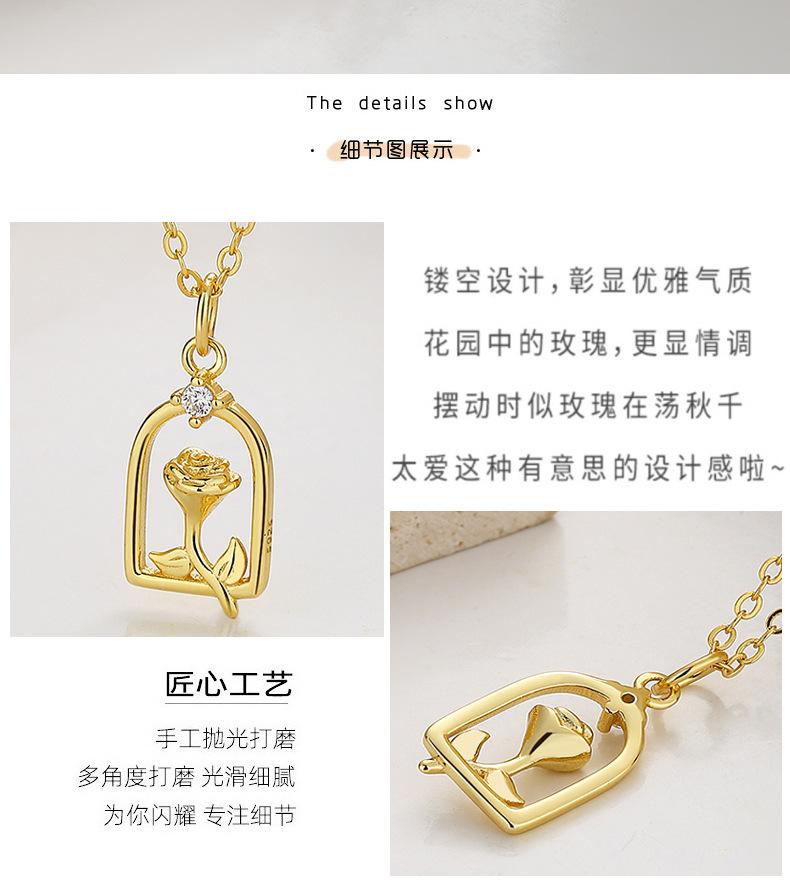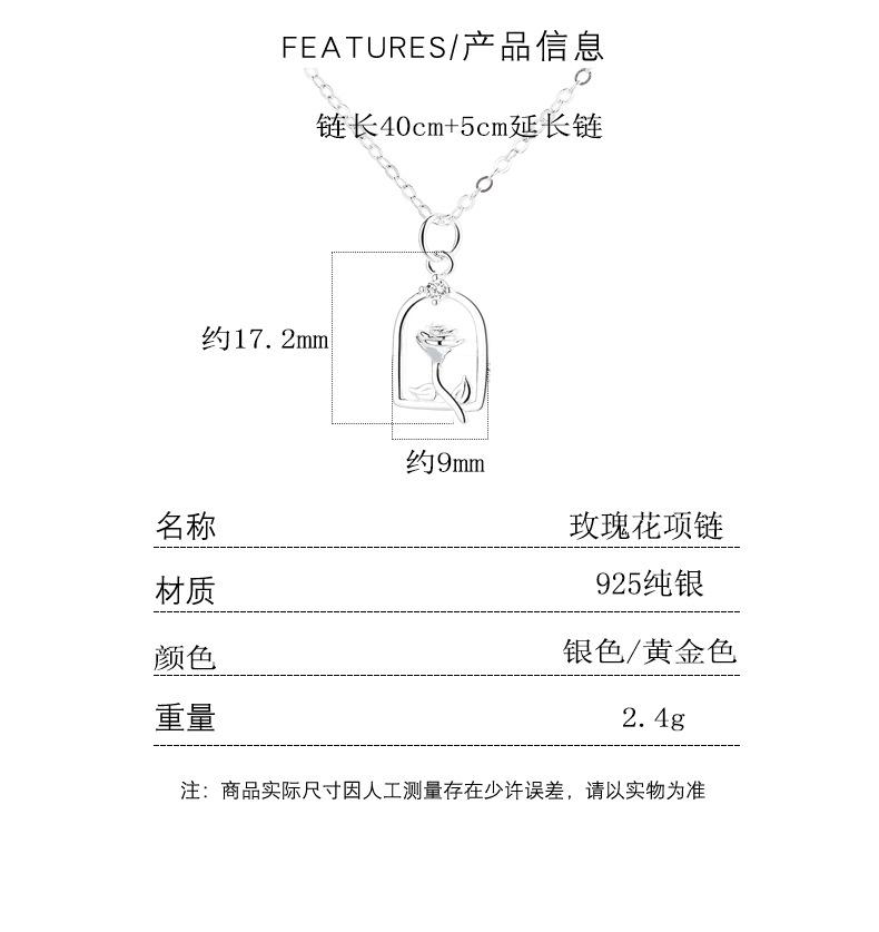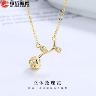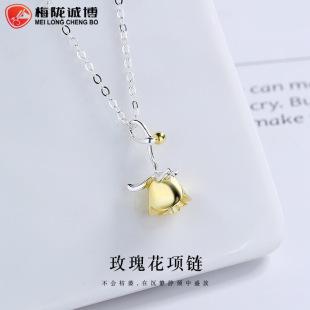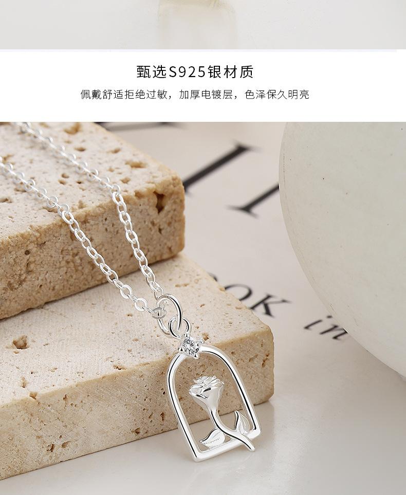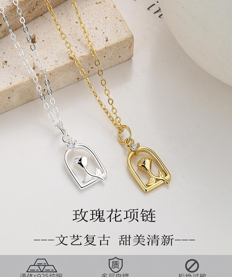 Collar de rosa de plata de ley 925 para mujer, nuevo estilo, cadena de clavícula con flores frescas, temperamento personalizado, joyería de alta gama.