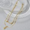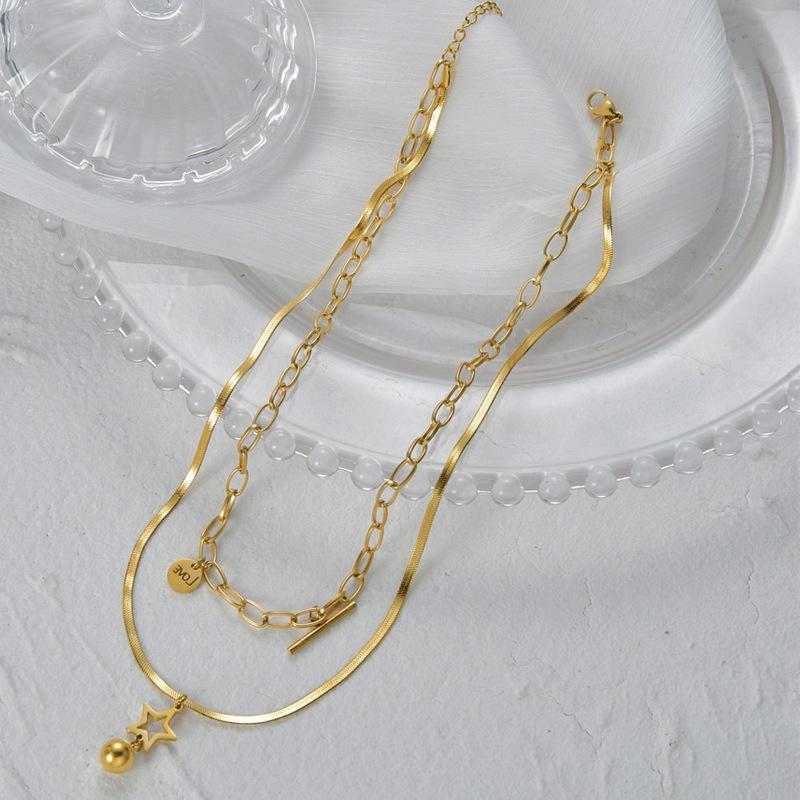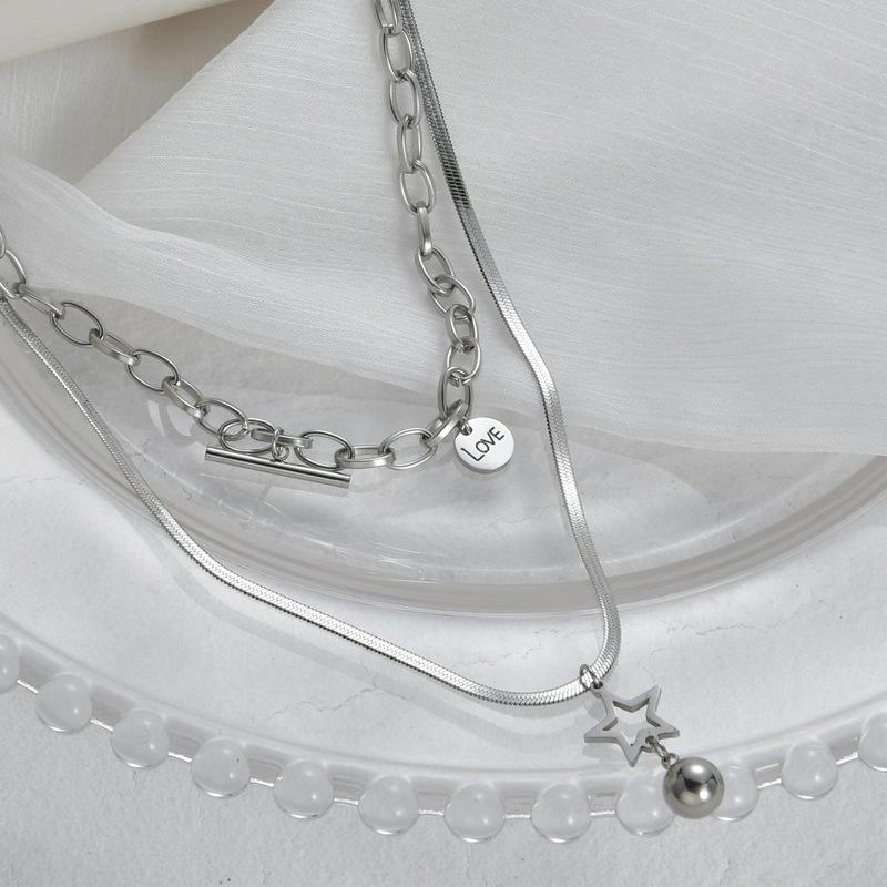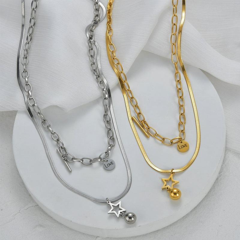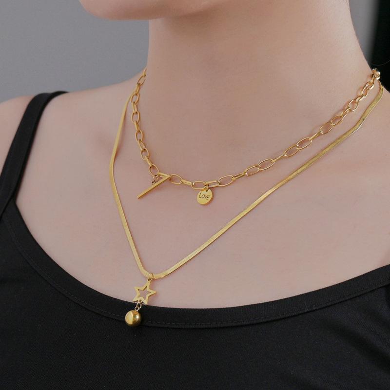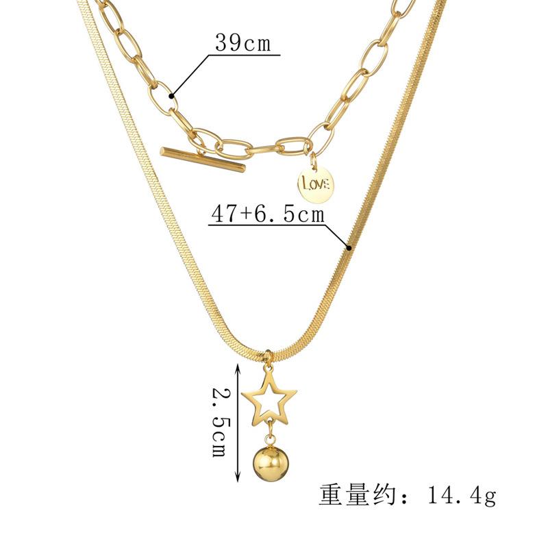 Collar doble de cinco estrellas de nicho de tendencia transfronteriza 2021, temperamento femenino, uso simple apilado, joyería de cadena de clavícula de acero de titanio