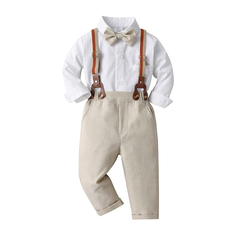 Ropa infantil transfronteriza, pantalones con tirantes de primavera y otoño, traje infantil, ropa de bebé, vestido de caballero británico, ropa de otoño para niños