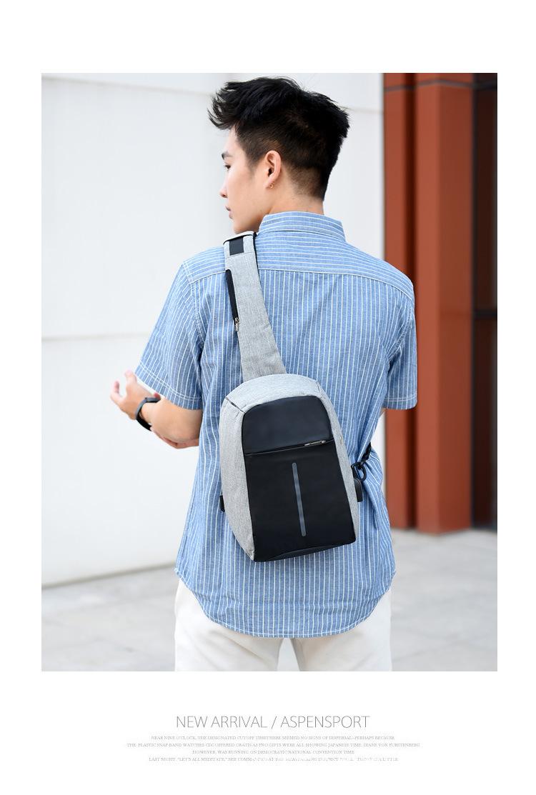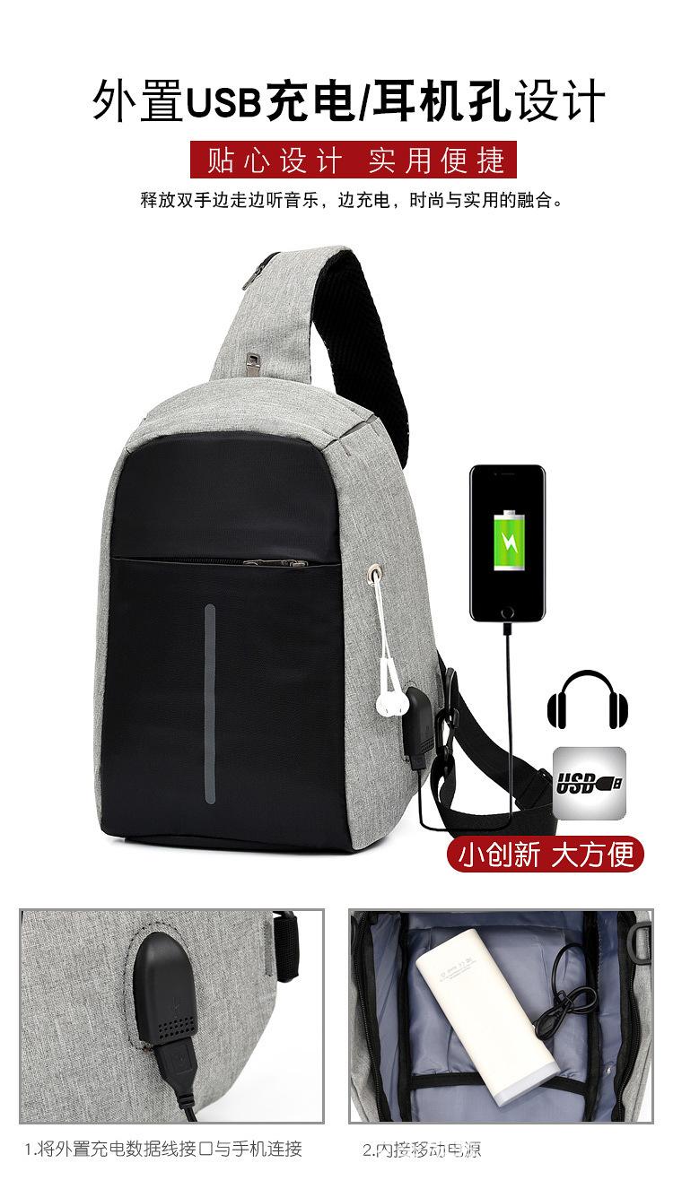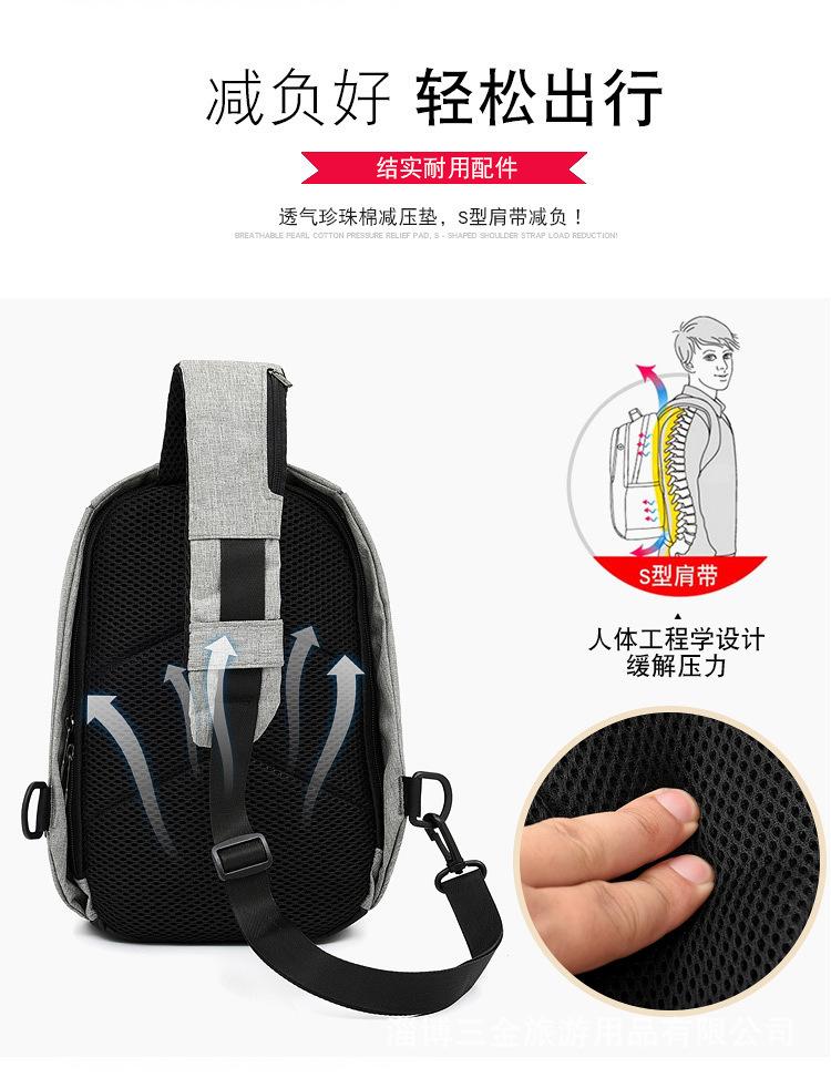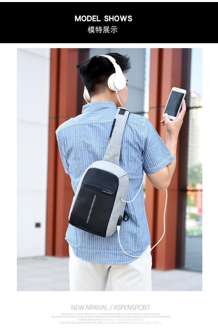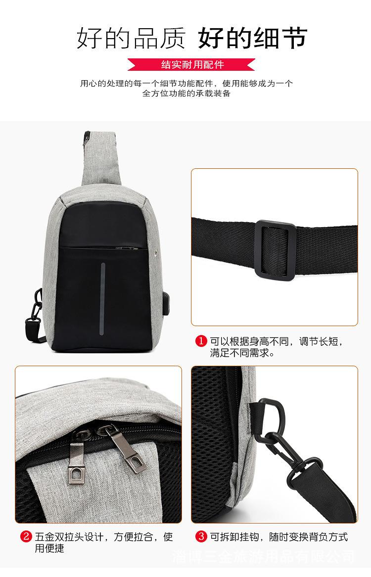 Suministro Directo de Fábrica Bolsa de Hombro Casual para Hombre Repelente al Agua Interfaz USB Bolsa de Pecho Casual para Exteriores Bolsa de Hombro Cruzada