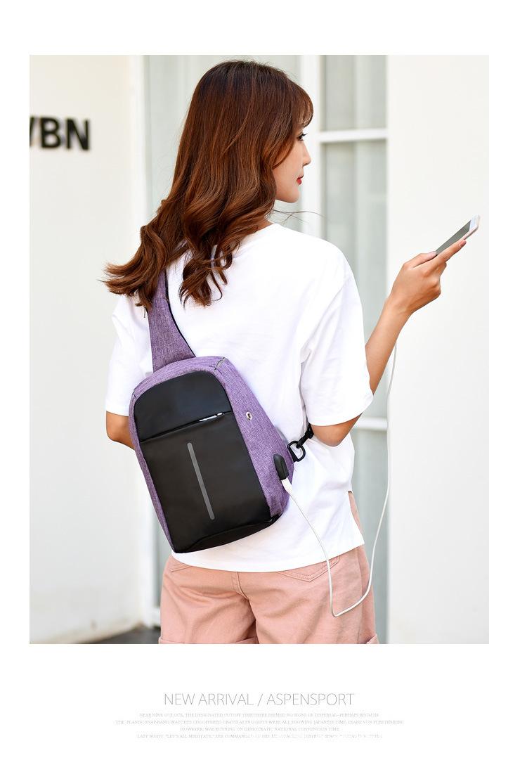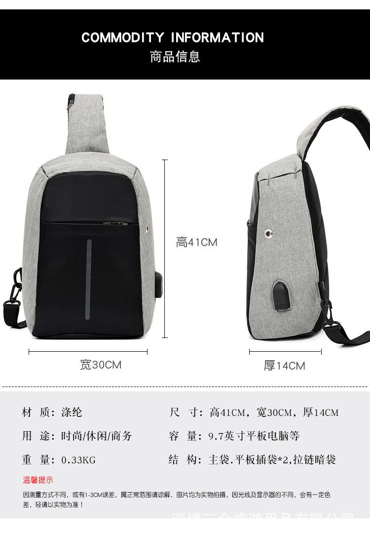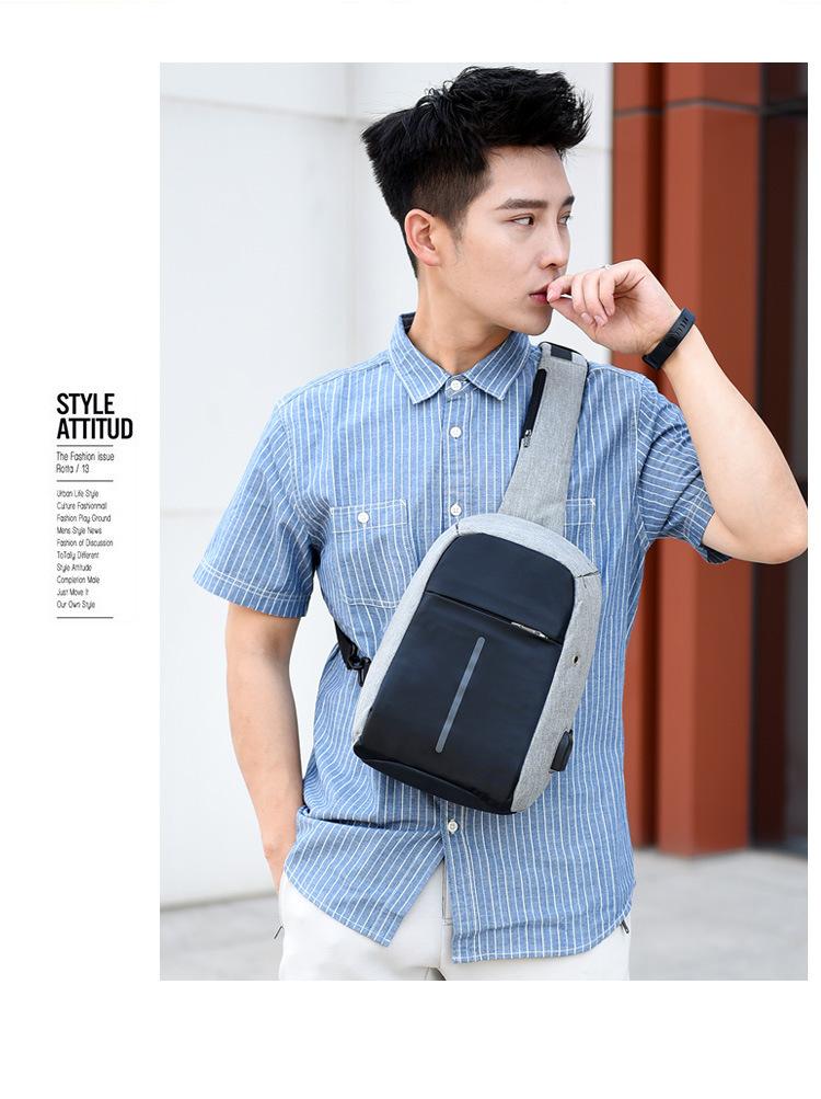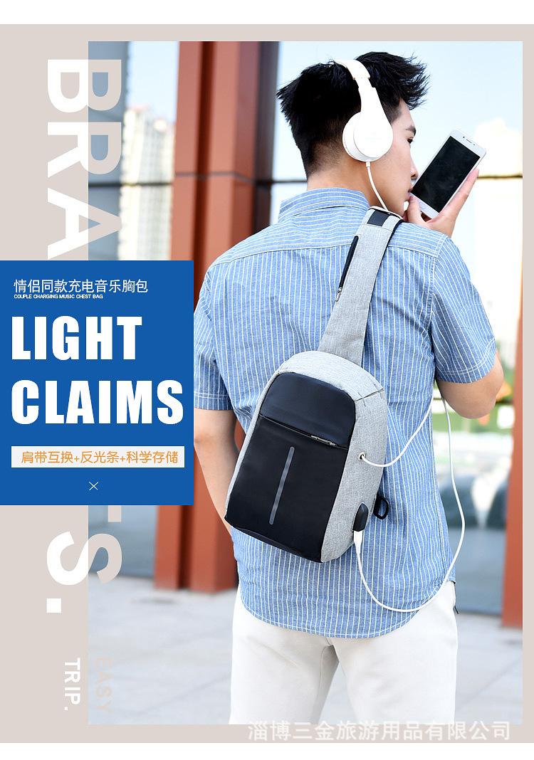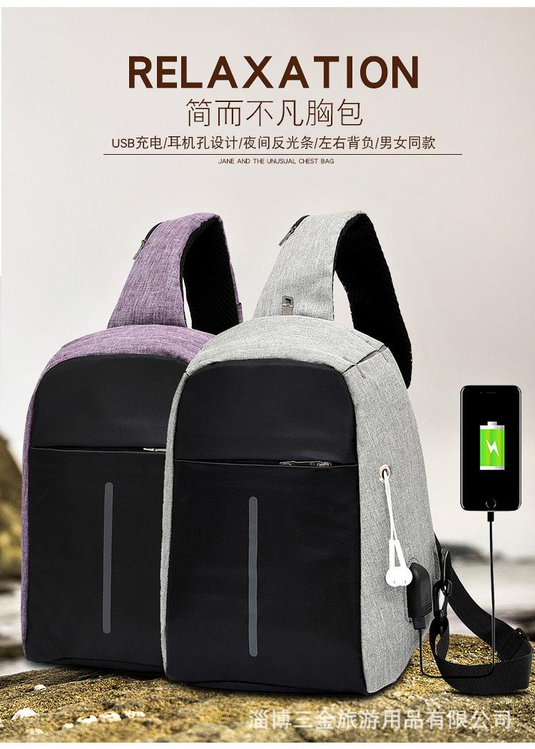 Suministro Directo de Fábrica Bolsa de Hombro Casual para Hombre Repelente al Agua Interfaz USB Bolsa de Pecho Casual para Exteriores Bolsa de Hombro Cruzada
