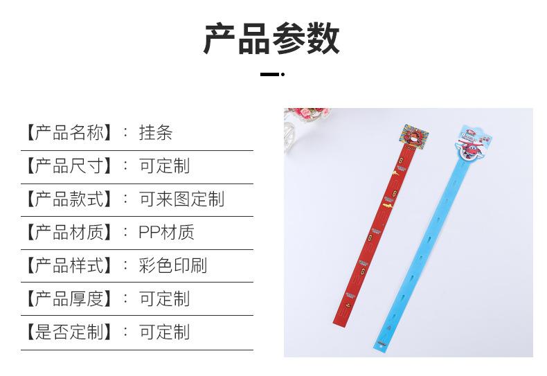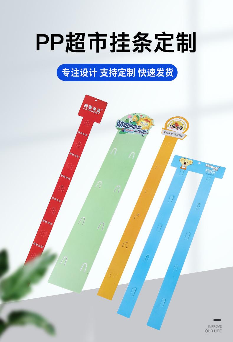 Tiras colgantes de plástico PP personalizadas, tiras colgantes personalizadas para exhibidores de productos de supermercado, impresión de logotipos promocionales para eventos gastronómicos