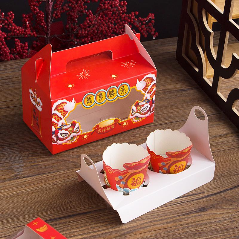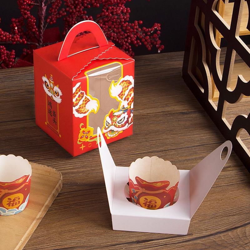 Caja para Cupcakes de 1 Pieza Portátil Transparente para Magdalenas Danza del León Caja de Embalaje para Cupcakes de 2 Piezas