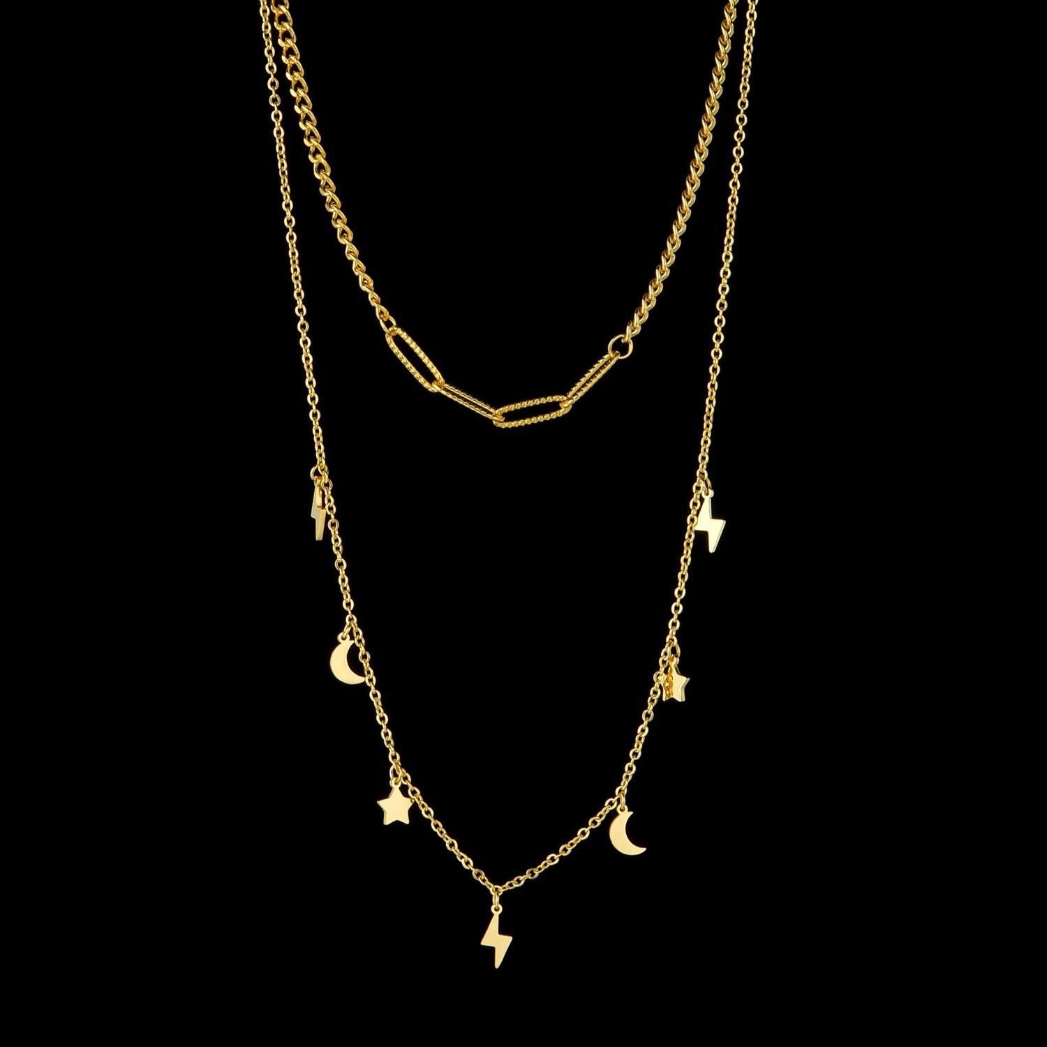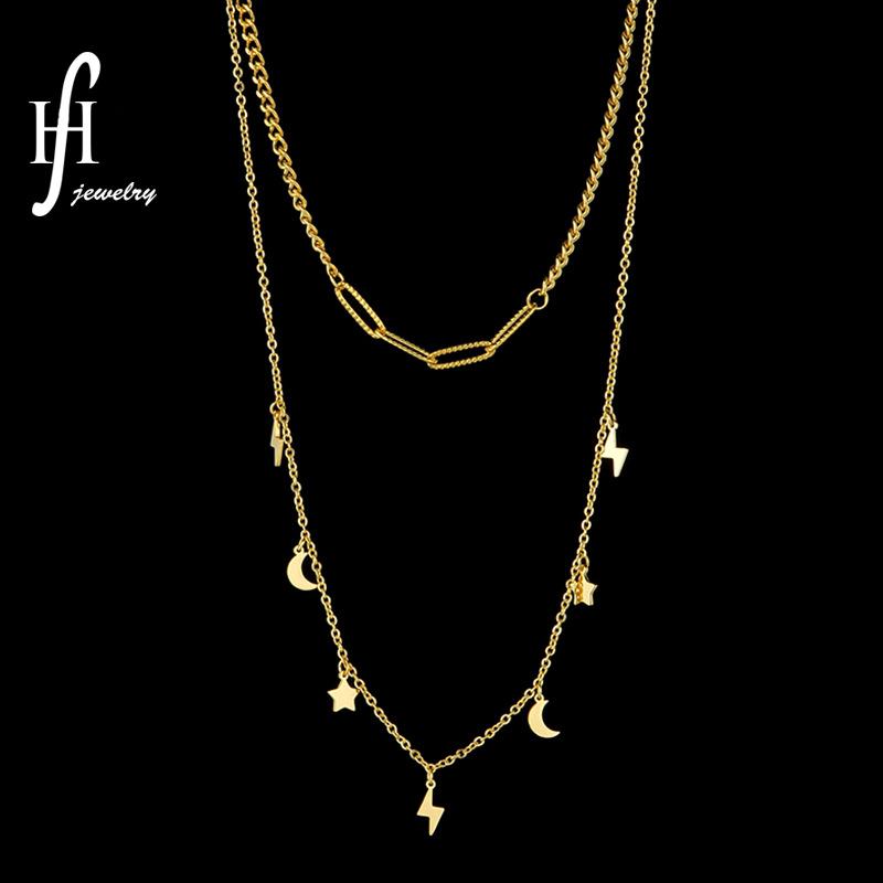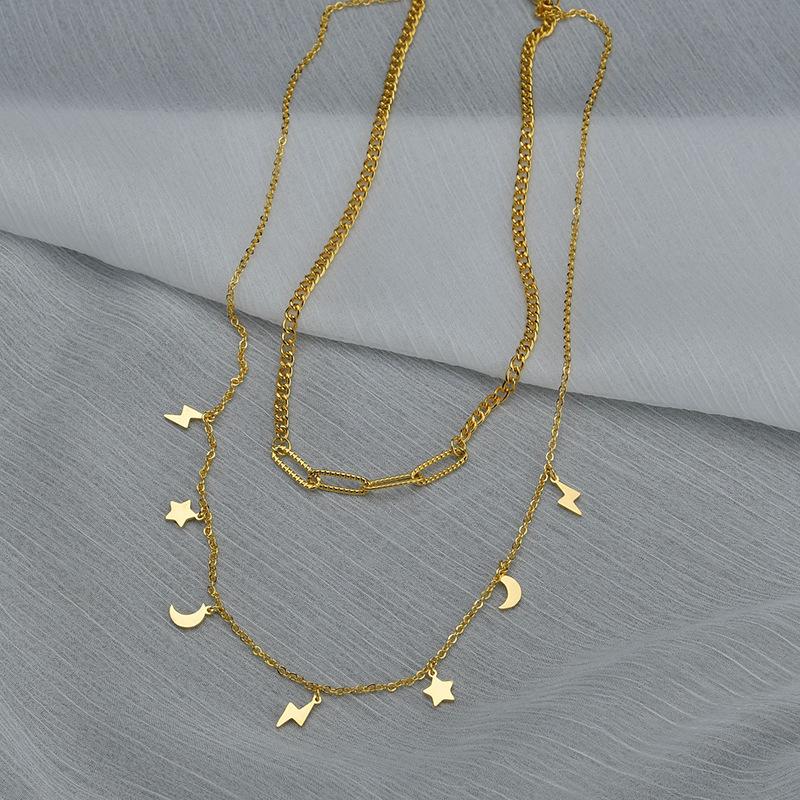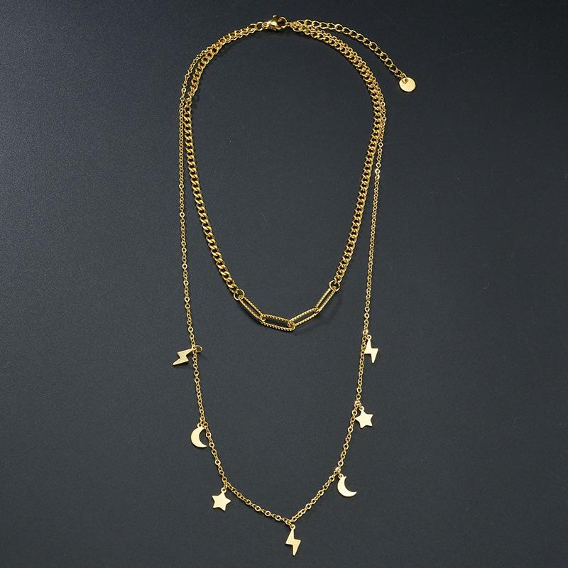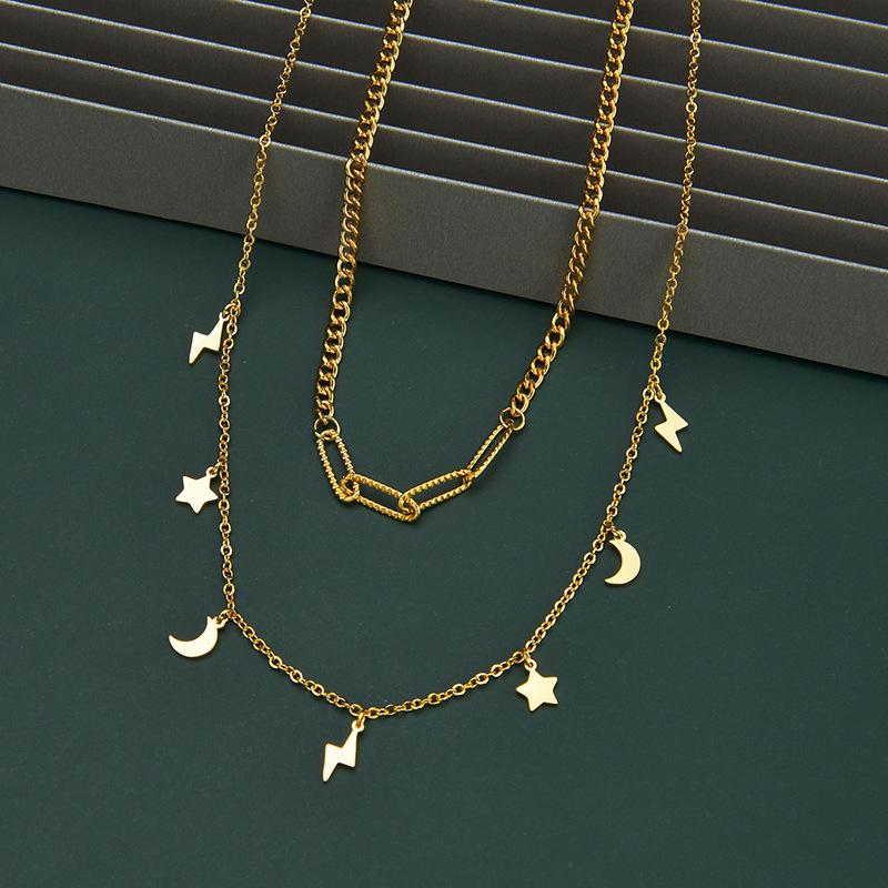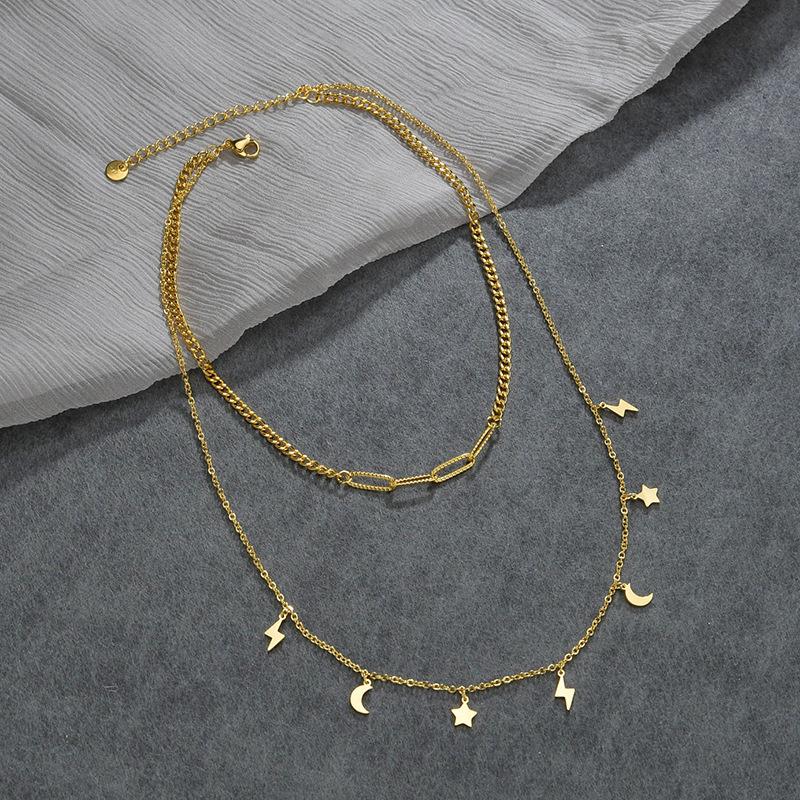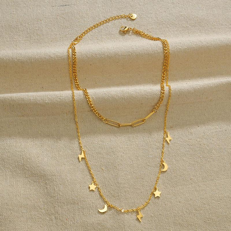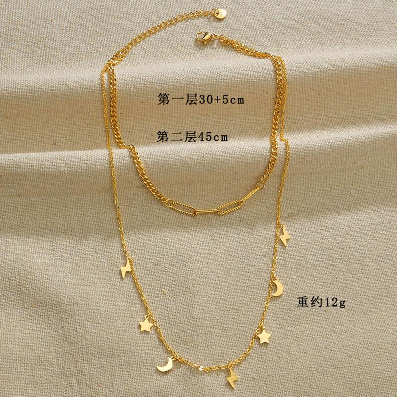 Collar transfronterizo de Europa y Estados Unidos, simple, doble luna, estrella, cadena de clavícula corta, chapada en oro de 18 quilates, cadena de cuello de acero inoxidable, venta al por mayor