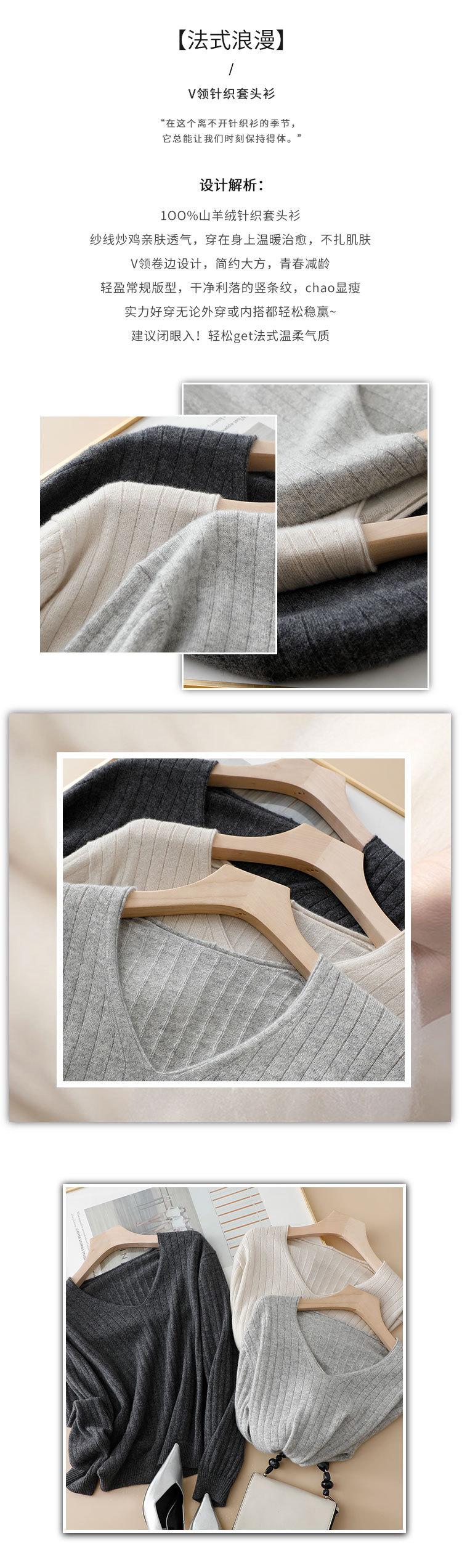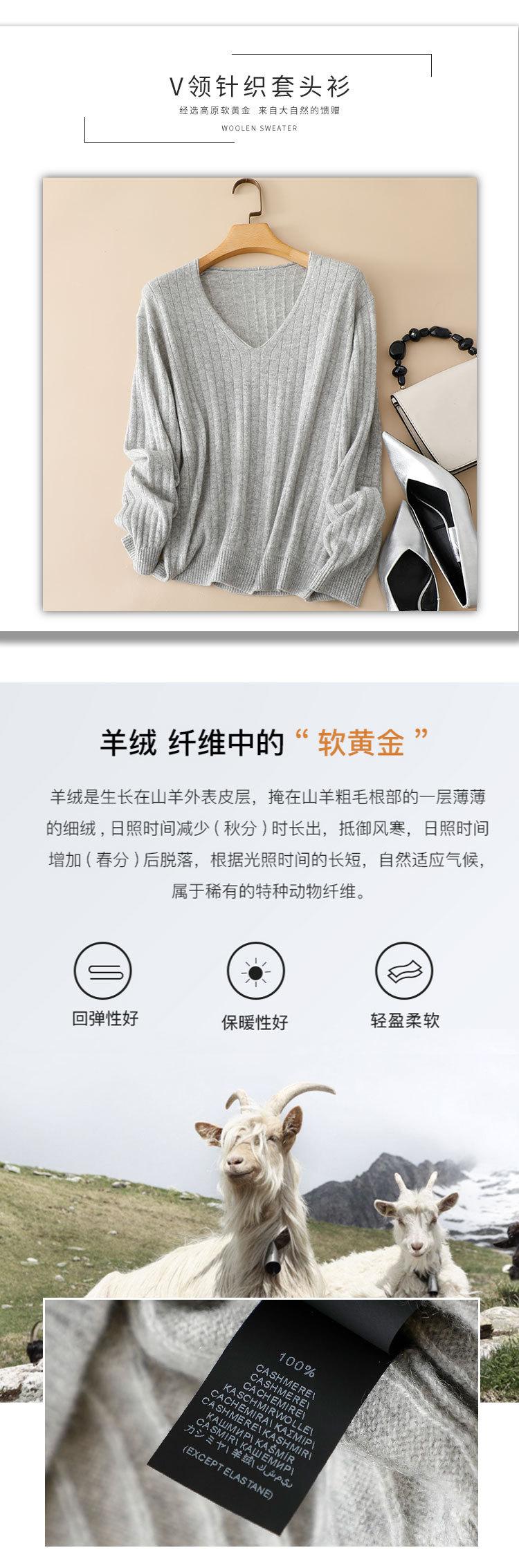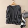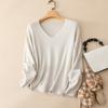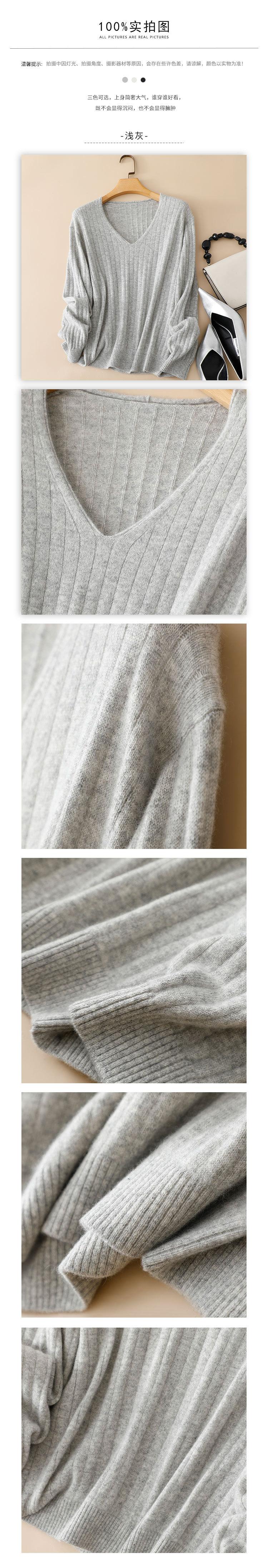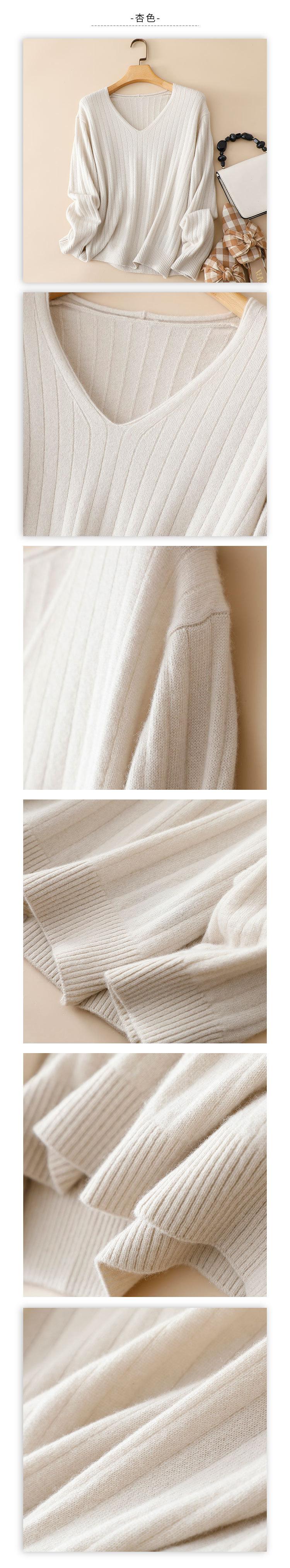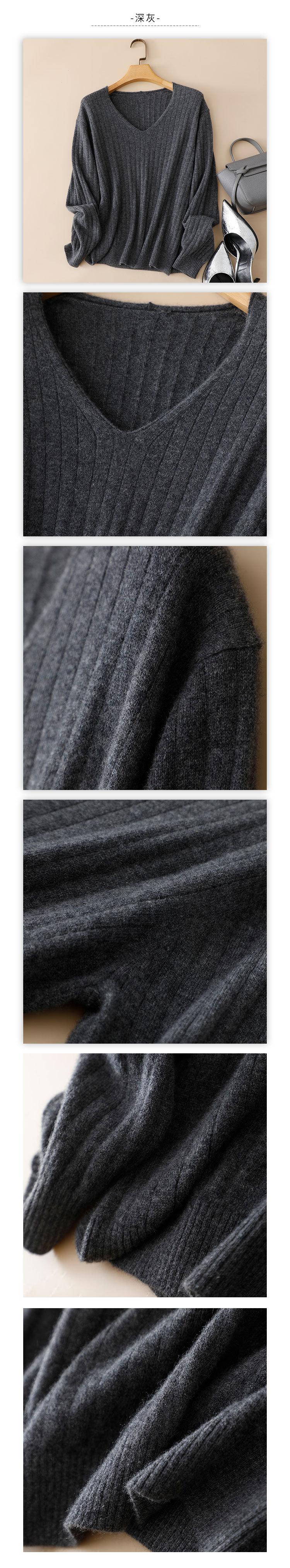 Suéter Pinrong otoño e invierno LP nuevo cachemir puro para mujer cuello en V versátil estilo perezoso punto pulóver base de punto