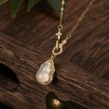Collar de Calabaza de Calcedonia Blanca Natural de Plata S925 de Nuevo Estilo Chino para Mujer, Joyería de Cadena de Clavícula Entrelazada de Lujo Ligero y Alta Gama