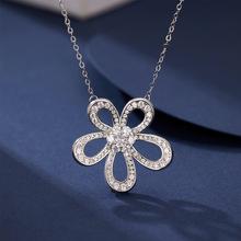 plata esterlina s925 nicho japonés y coreano lujo ligero diamante completo colgante de flor grande cadena clavicular collar versátil con temperamento de trébol para mujer