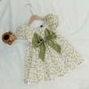 Vestido Dulce Nuevo de Verano 2026 Estilo Coreano para Niñas, Mangas Abullonadas Florales Frescas, Vestido de Princesa con Lazo