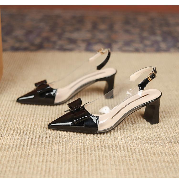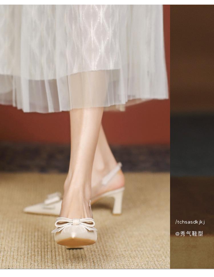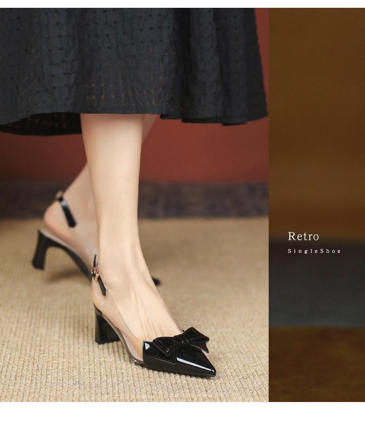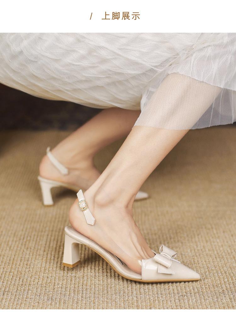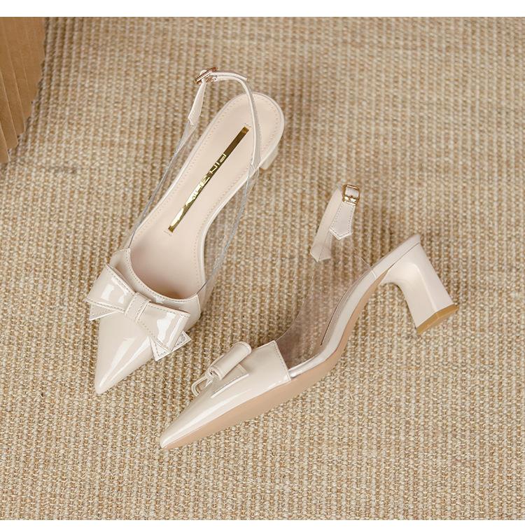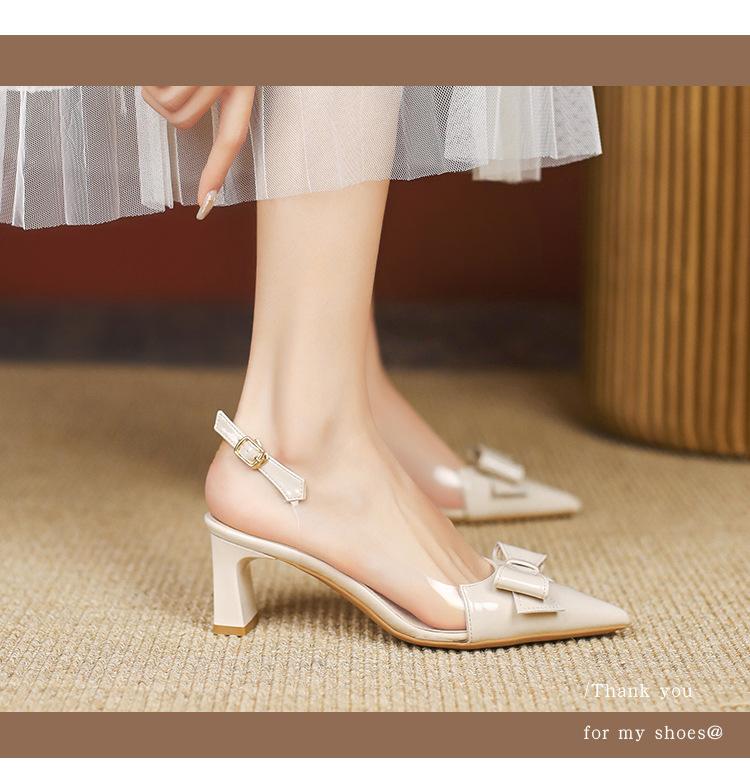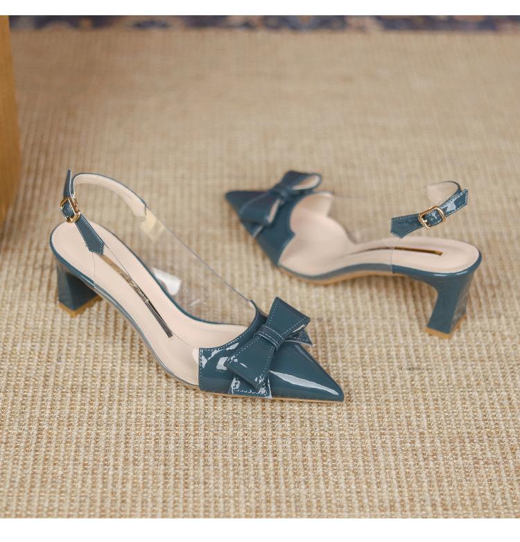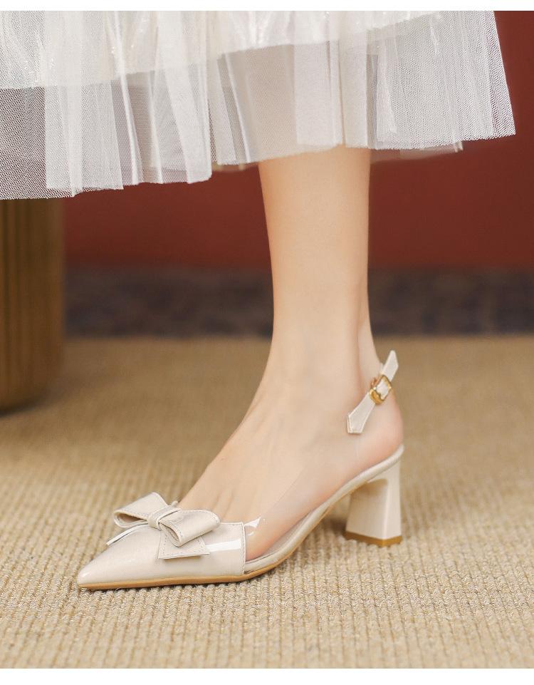 Sandalias coreanas de punta puntiaguda con tacón alto para mujer, zapatos de tacón bajo con lazo, zapatos de verano para mujer, zapatos vacíos y frescos para mujer