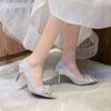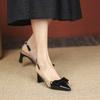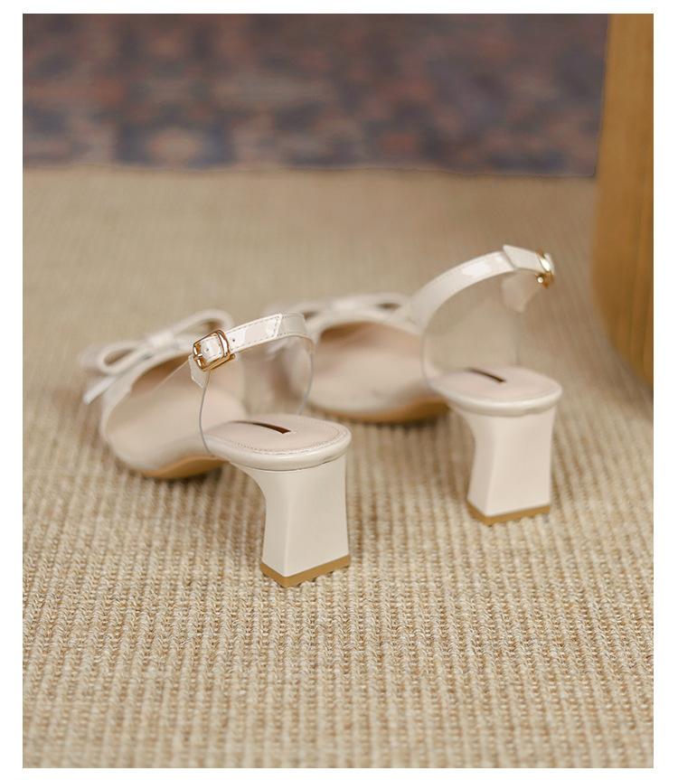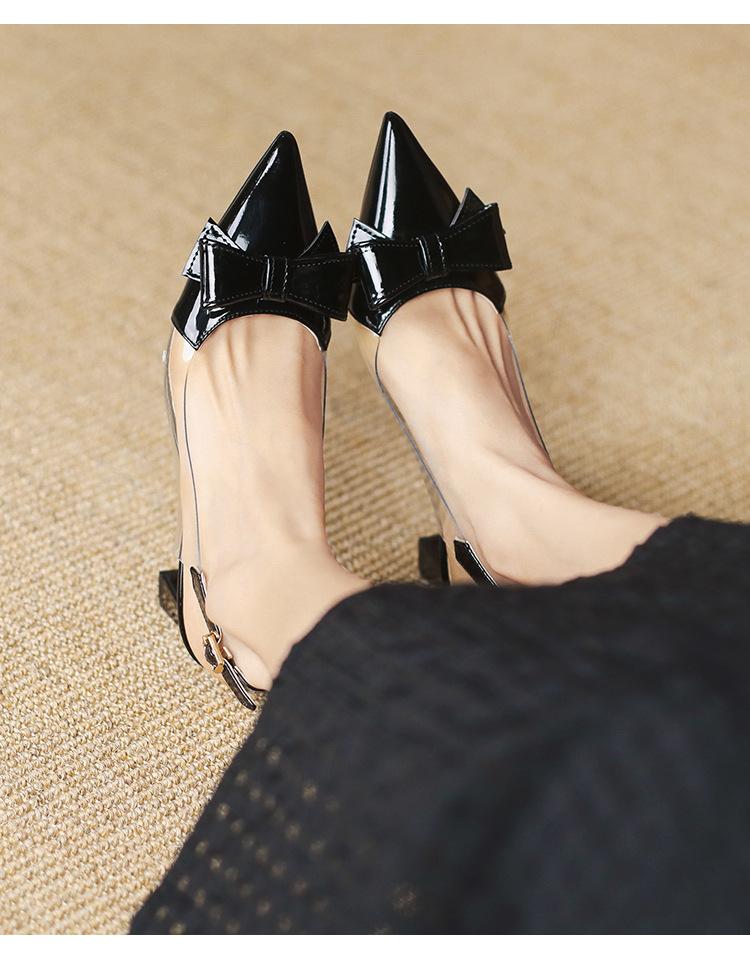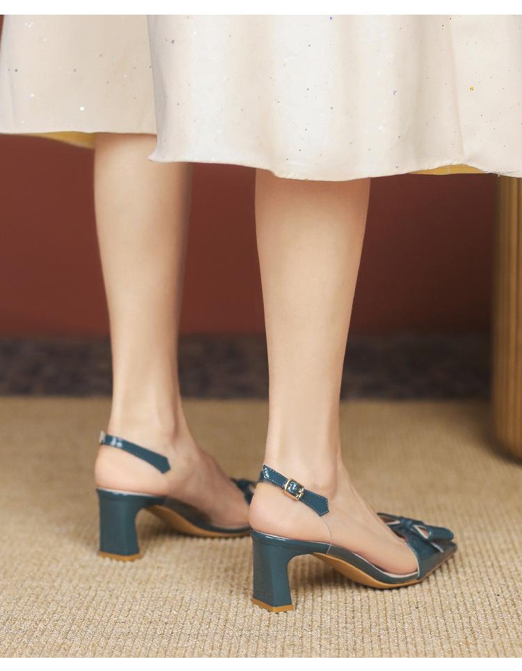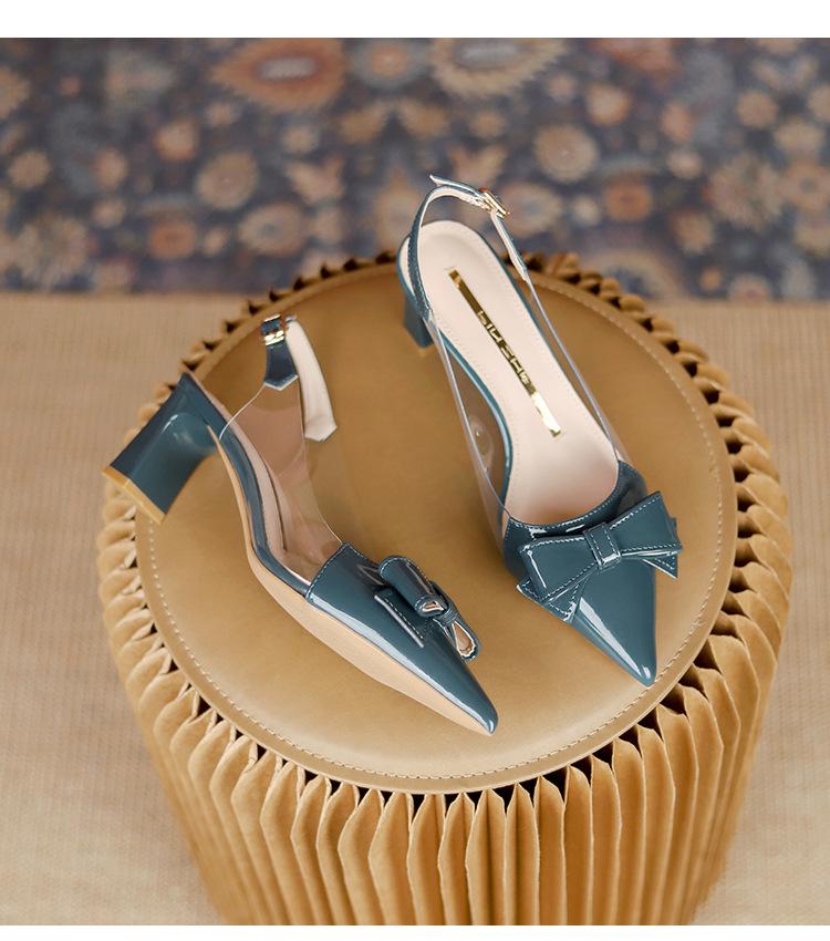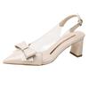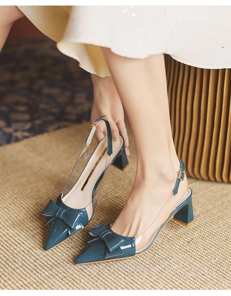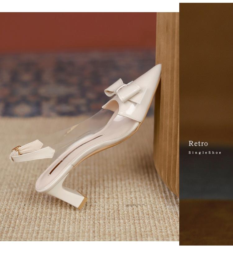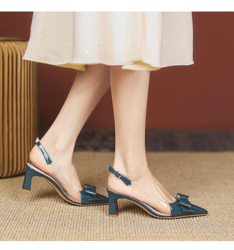 Sandalias coreanas de punta puntiaguda con tacón alto para mujer, zapatos de tacón bajo con lazo, zapatos de verano para mujer, zapatos vacíos y frescos para mujer