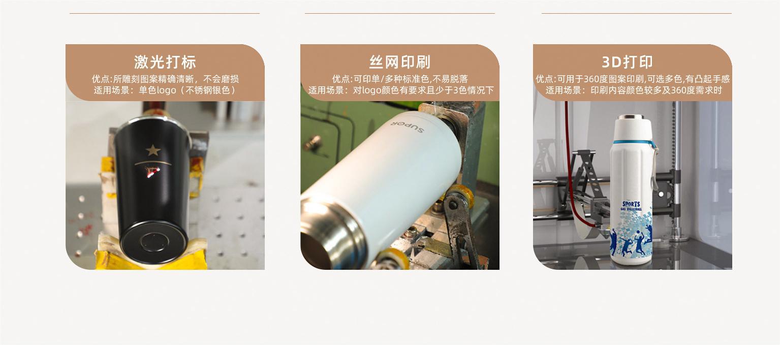 laser engraving, silk screen printing, 3D printing