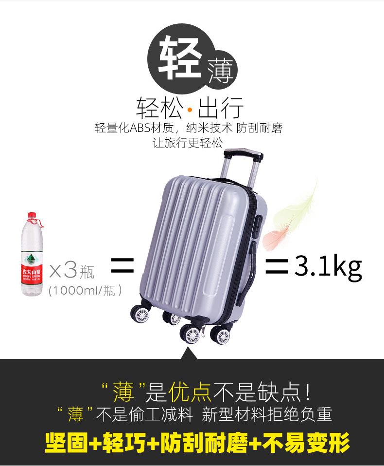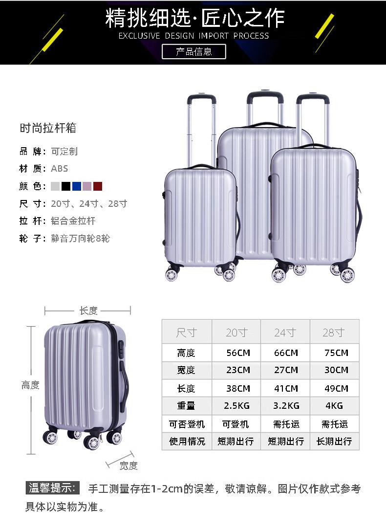 Maleta con ruedas de regalo de fábrica, equipaje de ABS, equipaje de viaje, maleta con contraseña, caja de embarque con logotipo, caja de envío fija