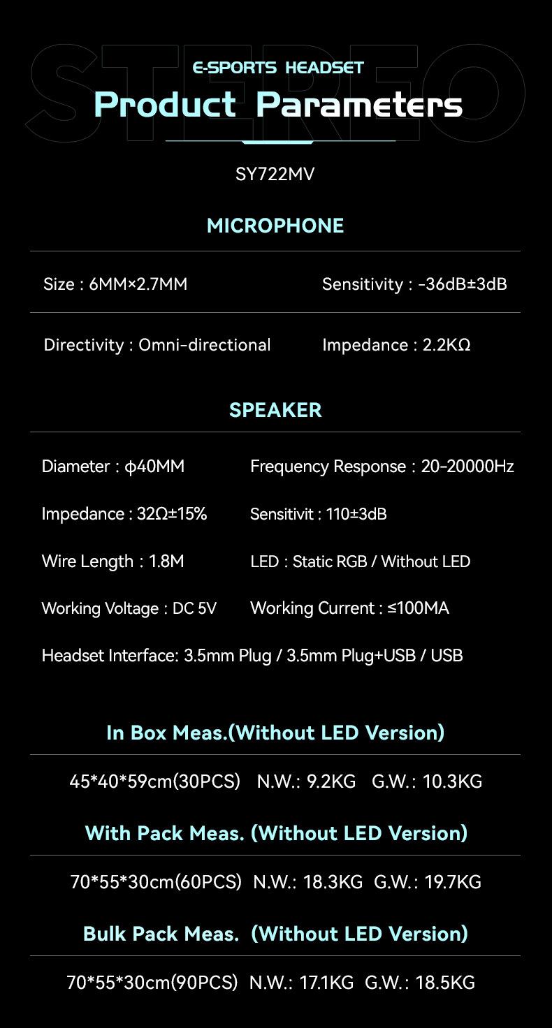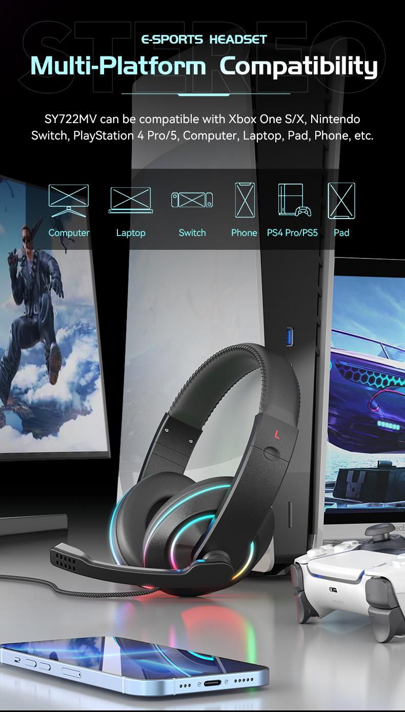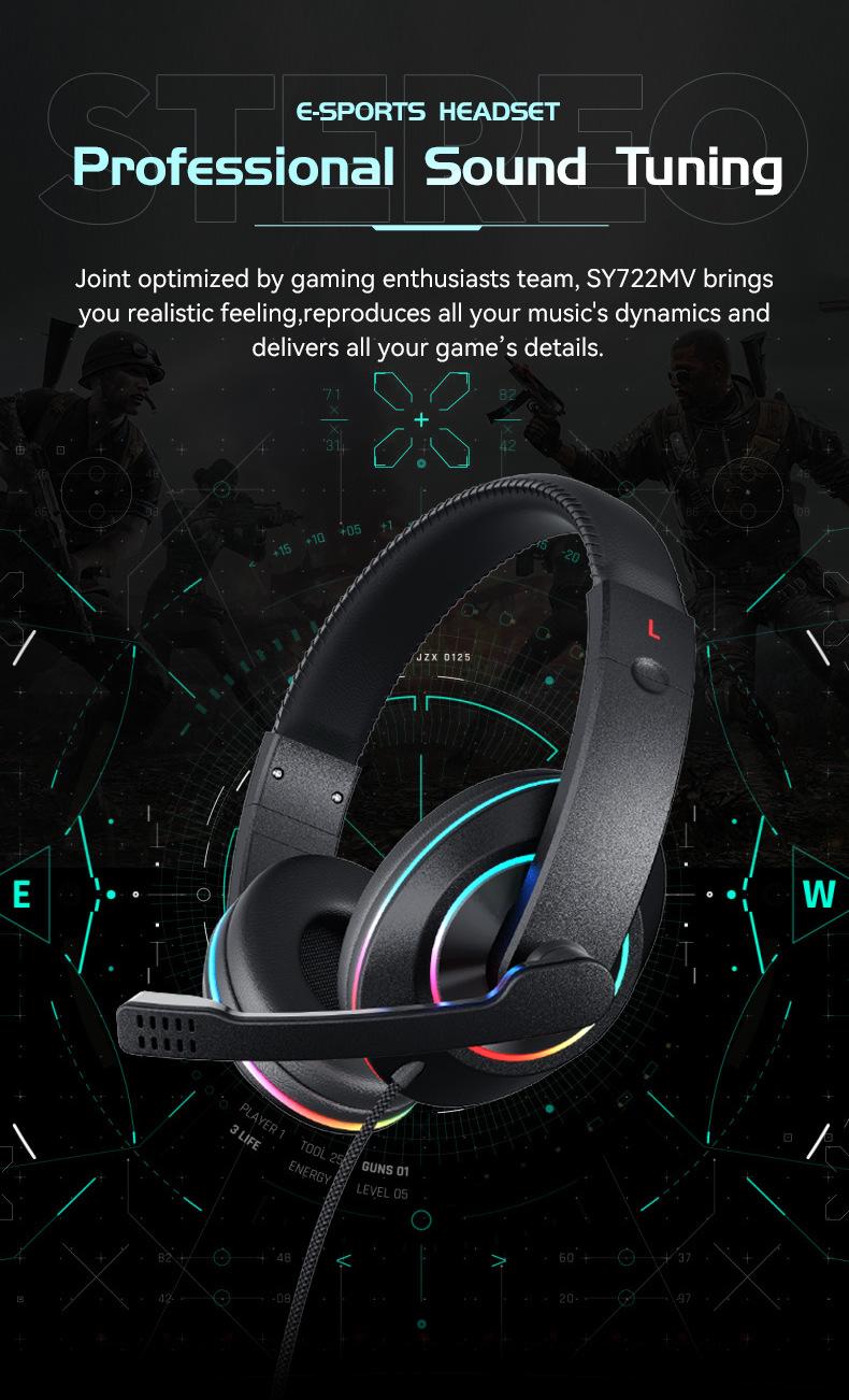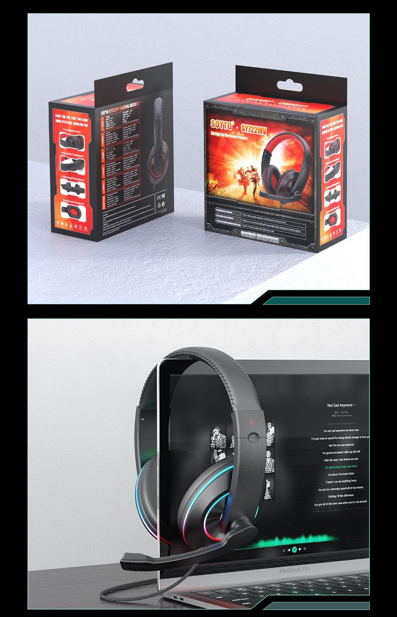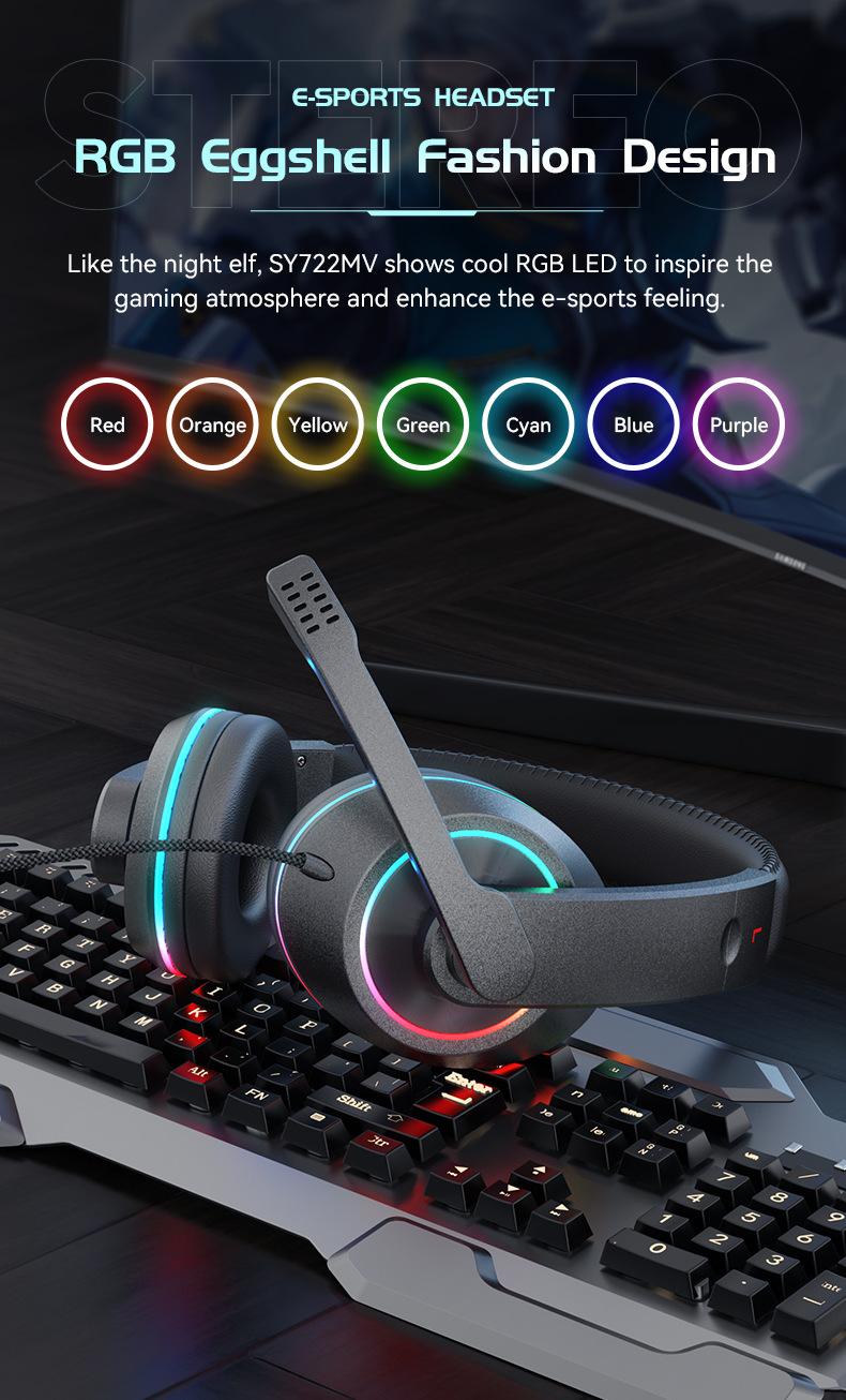 SY722 static RGB luminous earphone with packing