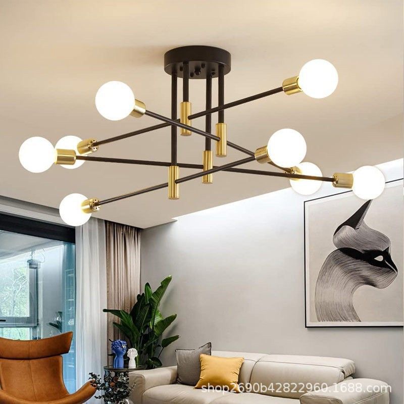 Lámpara de techo nórdica de lujo para sala de estar, sencilla, creativa, de Amazon, de hierro, para estudio, hogar, LED, con forma de rama.