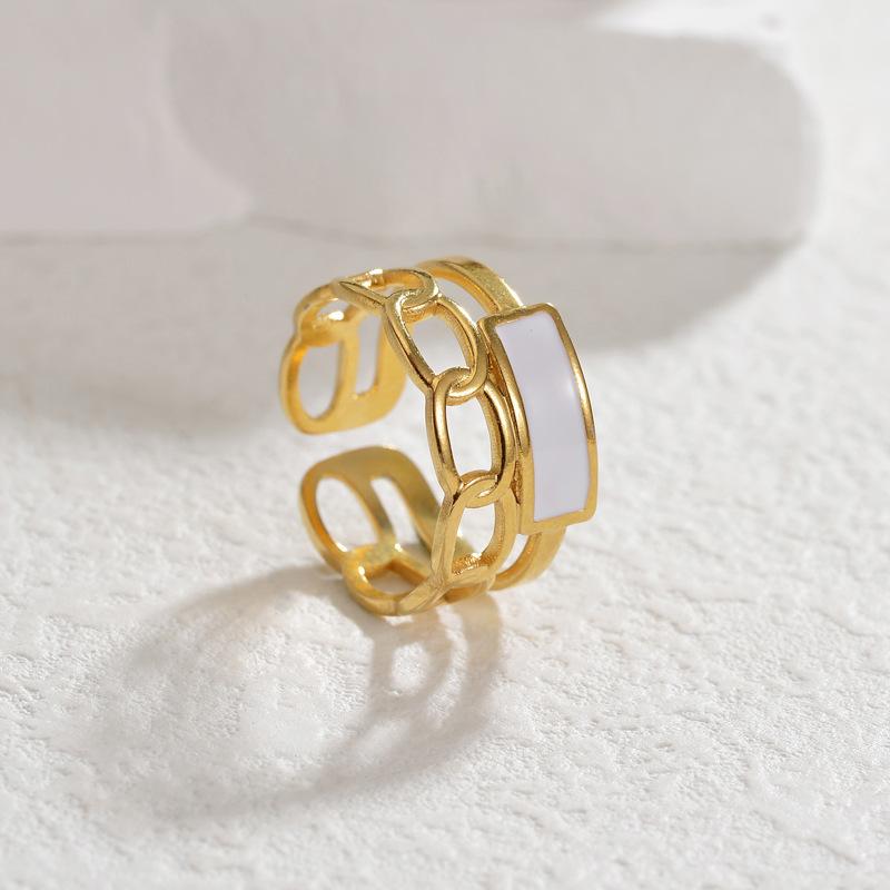 Anillo de apertura ajustable con forma de gota de aceite de acero inoxidable 304 estilo retro europeo y americano para mujer, chapado en oro de 18 quilates, venta al por mayor