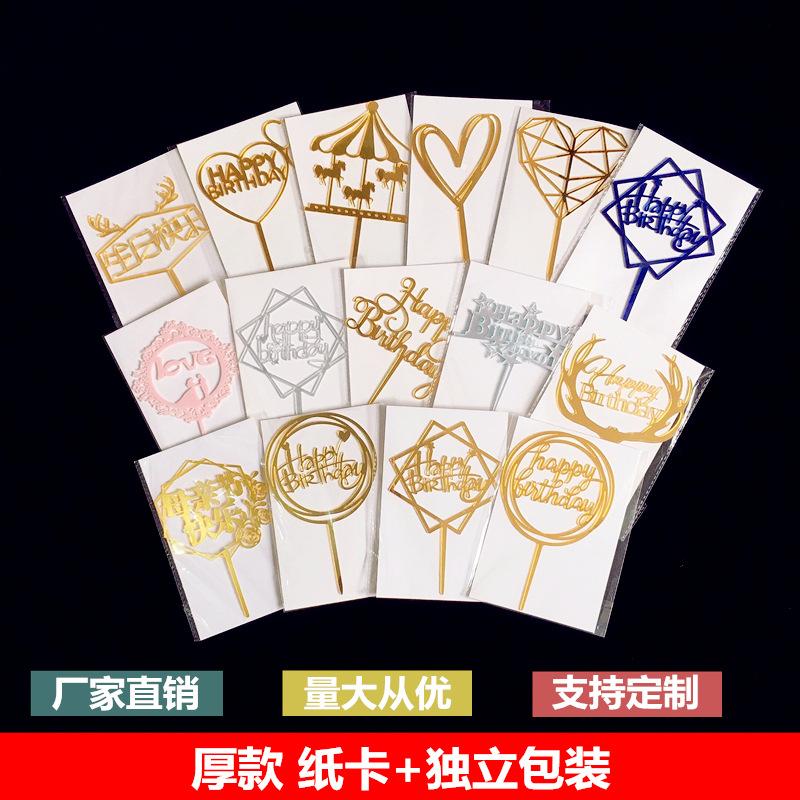 Acrílico Enchufe Grande Tarjeta Feliz Cumpleaños Decoración de Pastel Enchufe Doble Espejo Tarjeta Enchufe Horneado Vacaciones Venta Directa de Fábrica