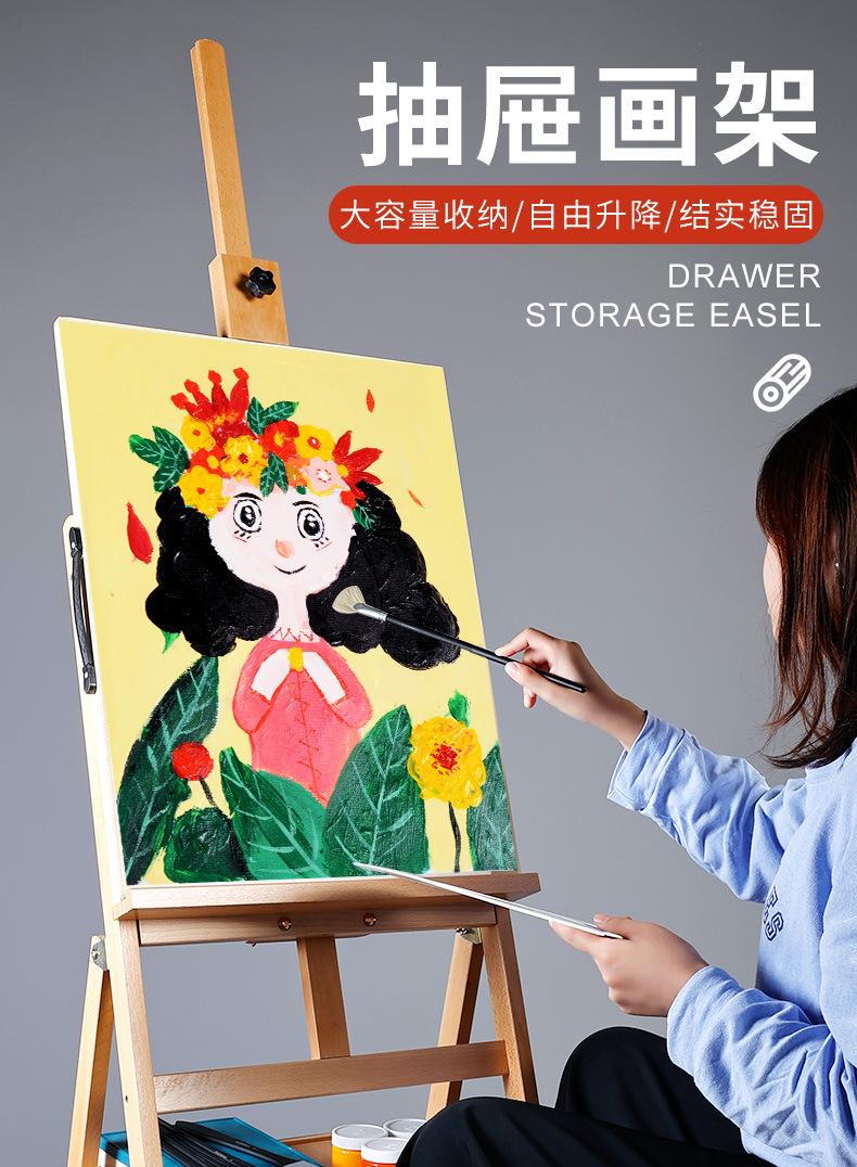 Caballete de Caja de Madera de Haya Madera Maciza con Cajón Tipo Boceto Madera Especial para Estudiantes Cajón Caballete para Pintura al Óleo Plegable Venta al por Mayor