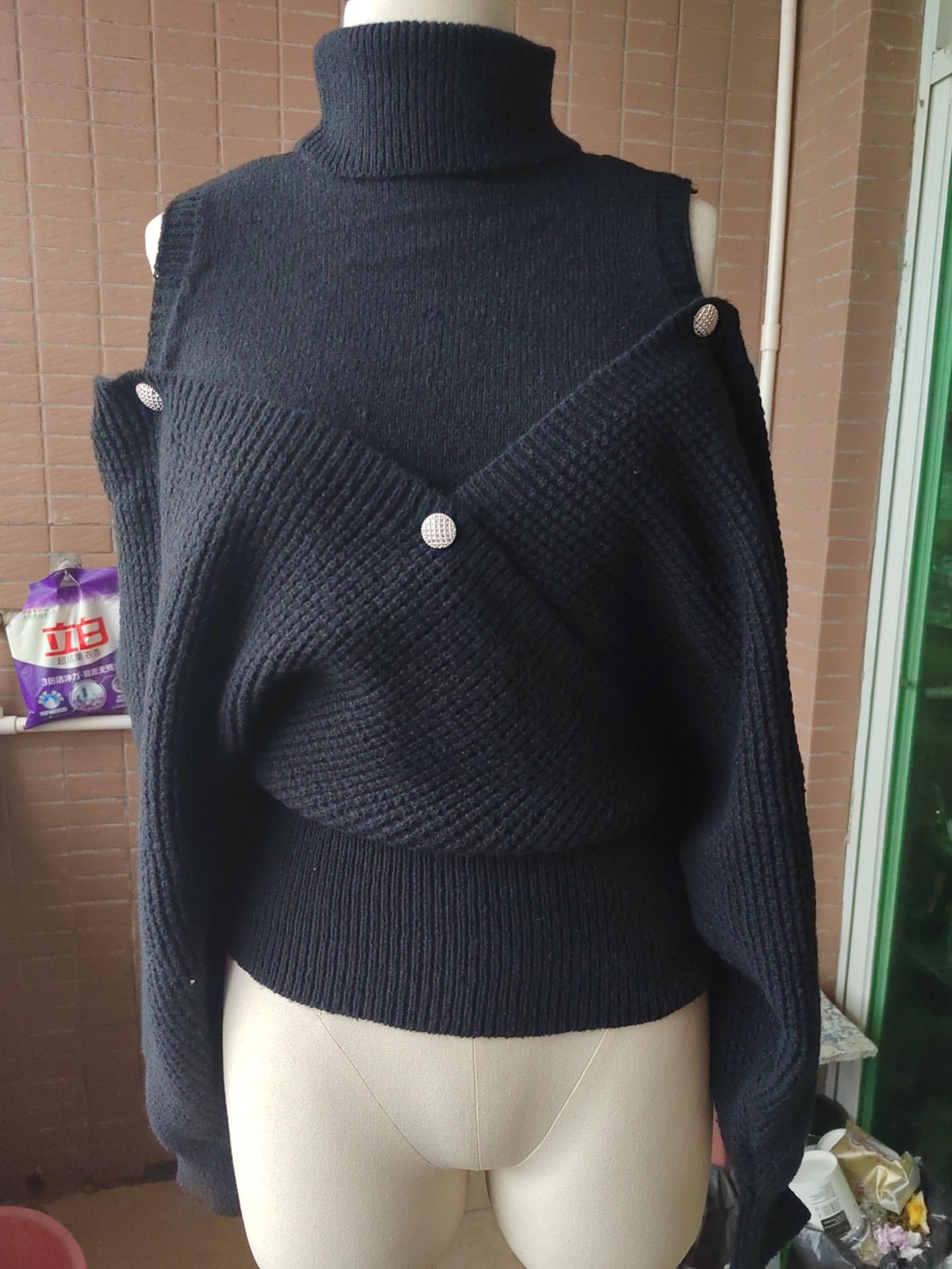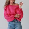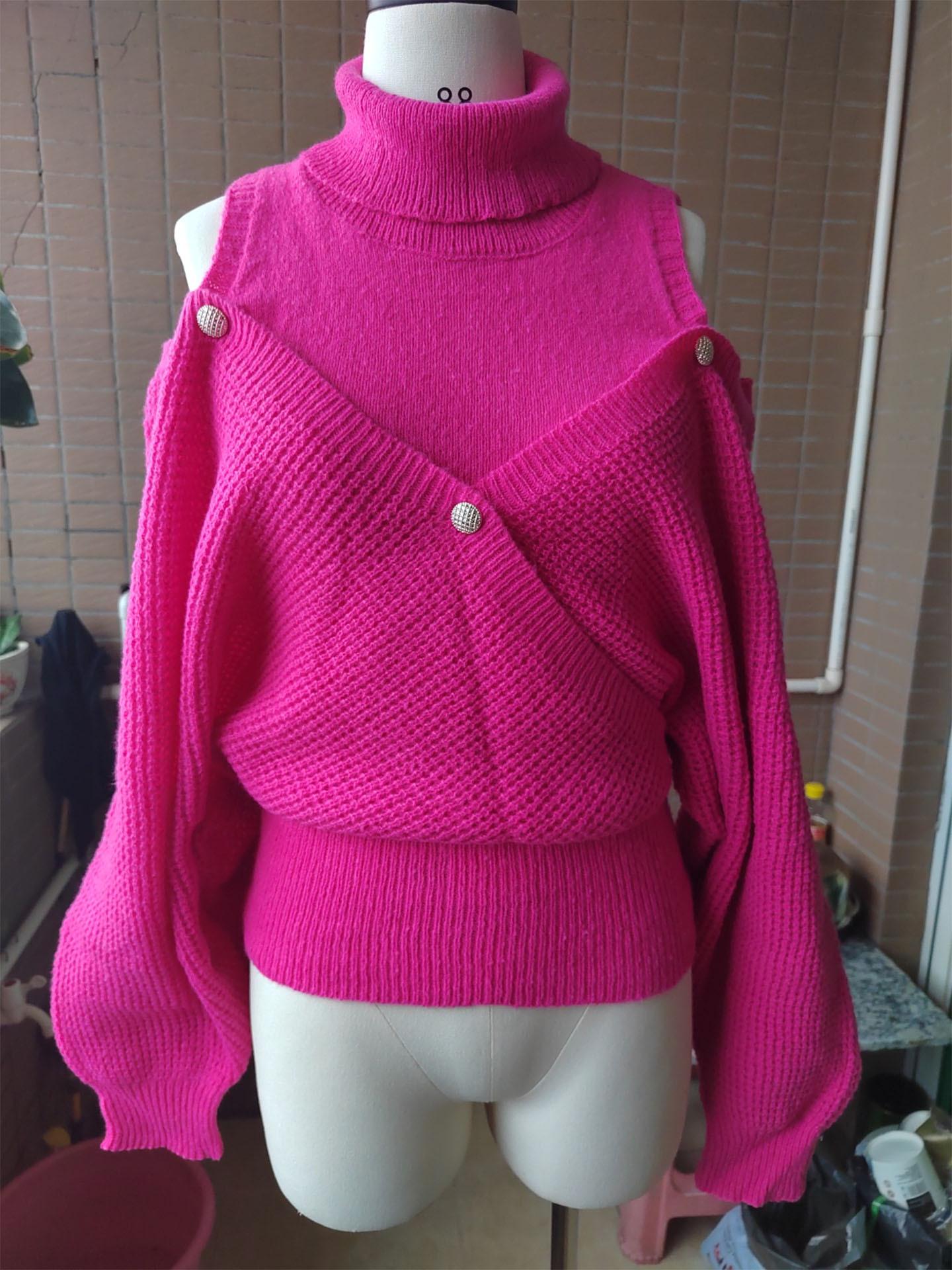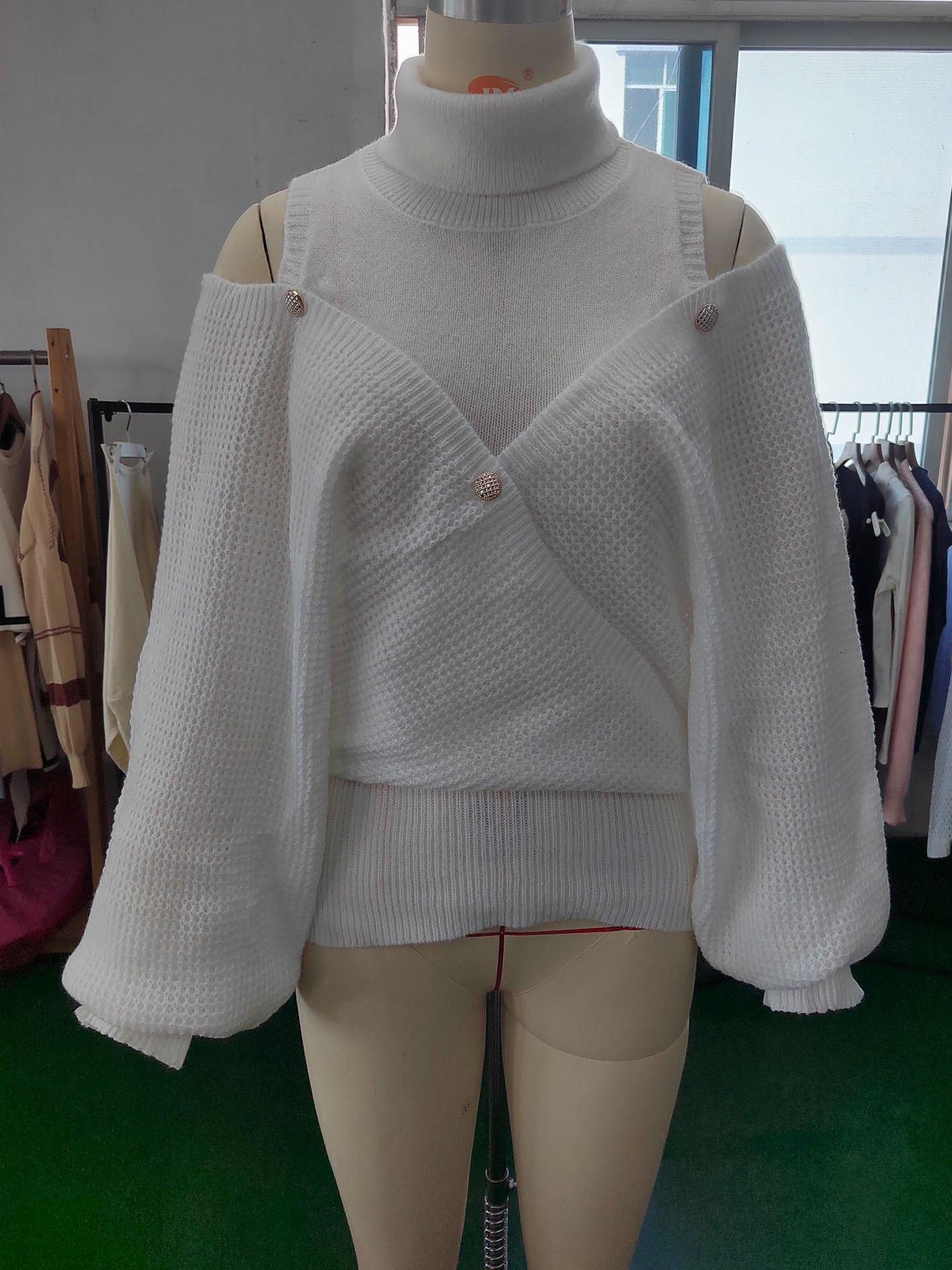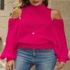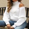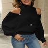 Europeo y Americano Nuevo Otoño e Invierno Transfronterizo Amazon Punto Ropa de Mujer con Hombros Descubiertos Manga Larga Jersey de Punto de Color Puro Tops de Mujer