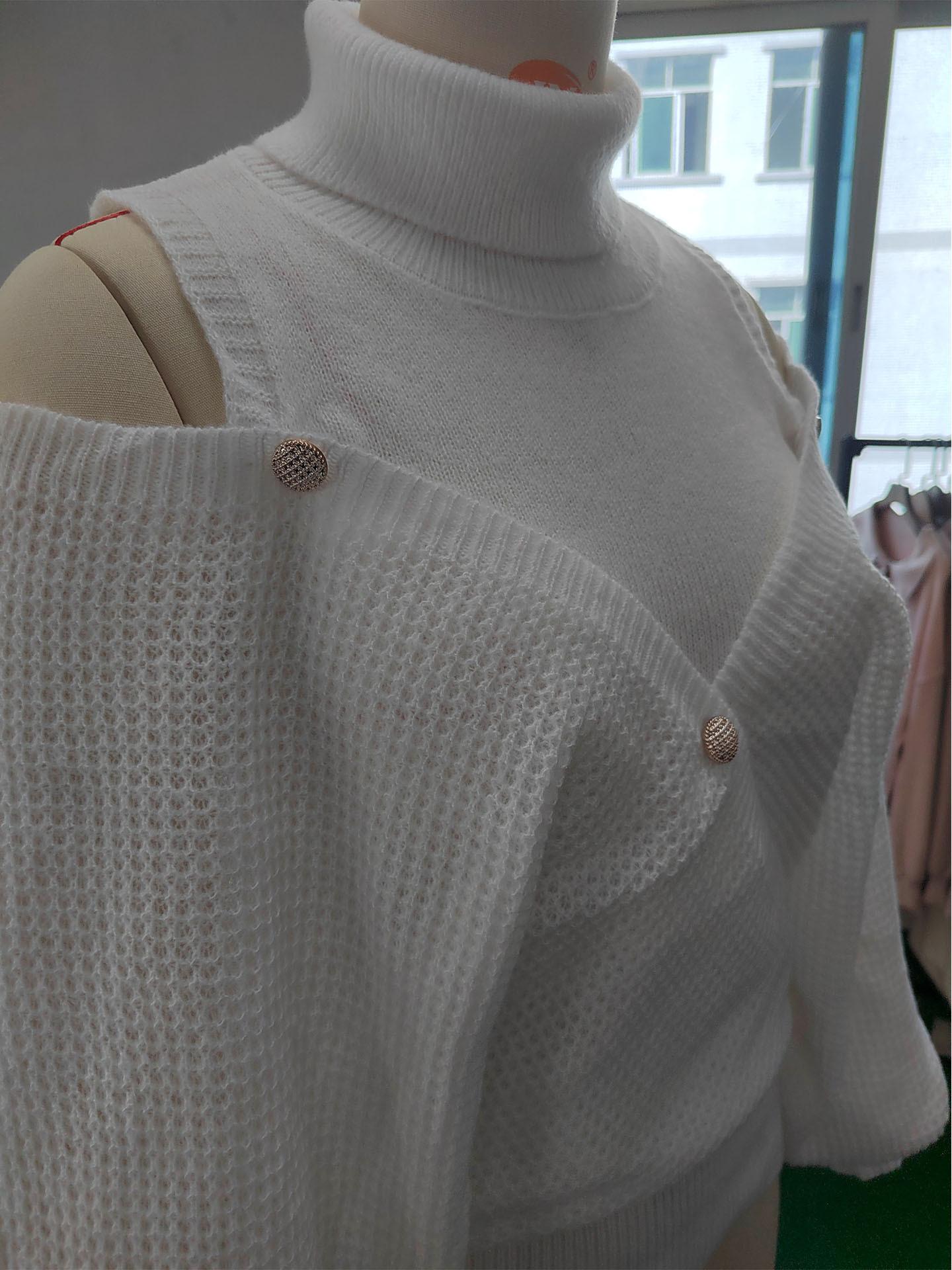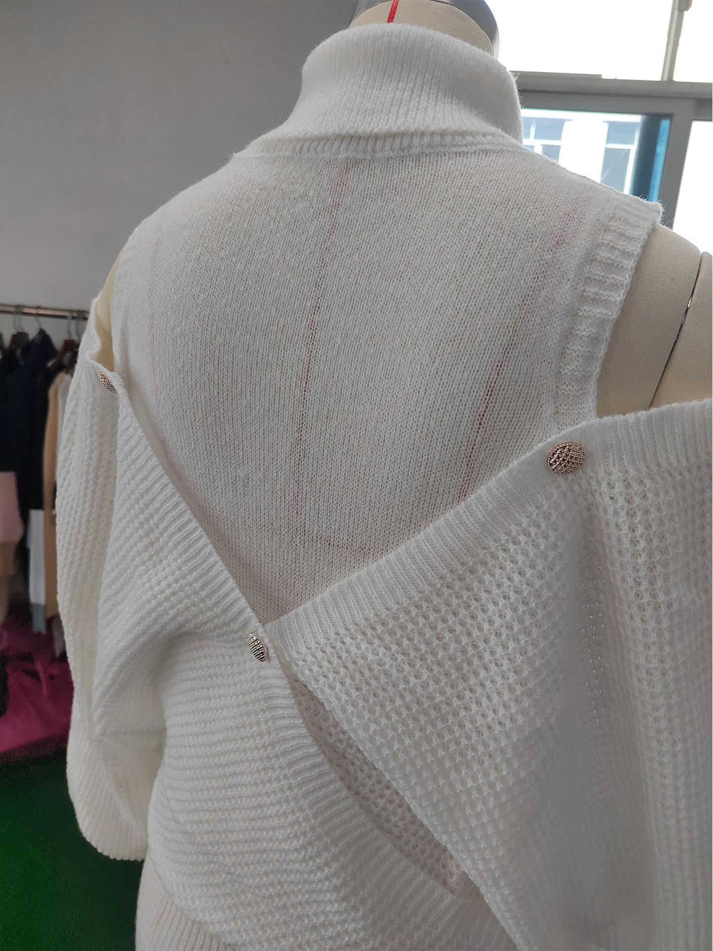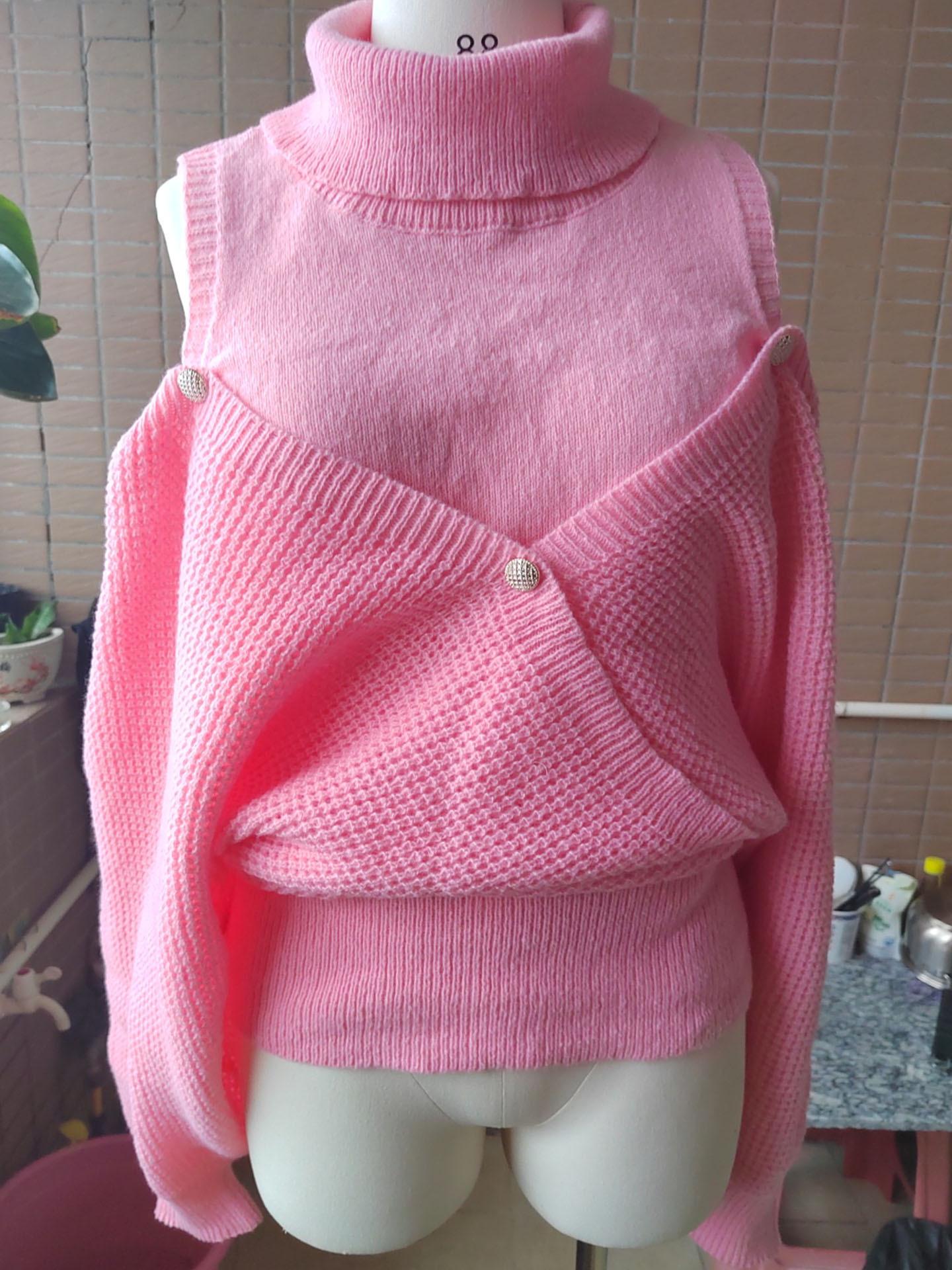 Europeo y Americano Nuevo Otoño e Invierno Transfronterizo Amazon Punto Ropa de Mujer con Hombros Descubiertos Manga Larga Jersey de Punto de Color Puro Tops de Mujer