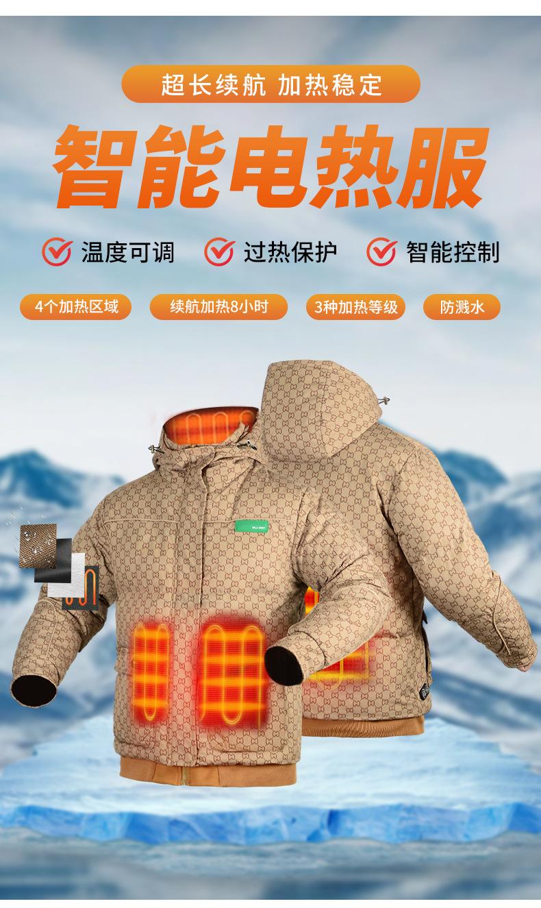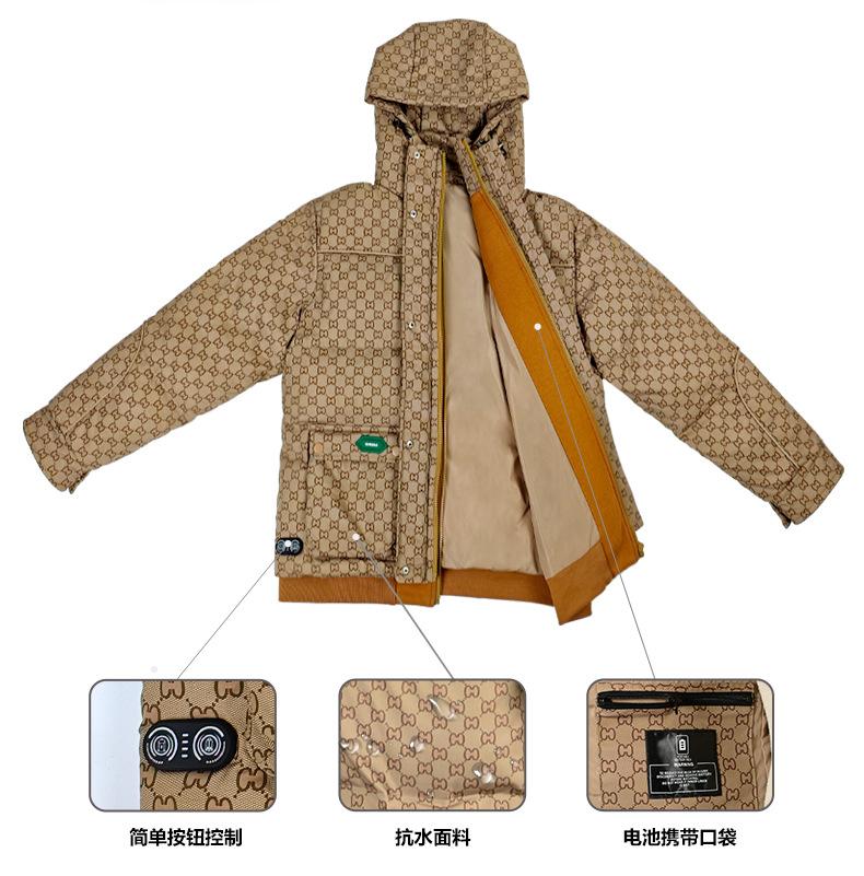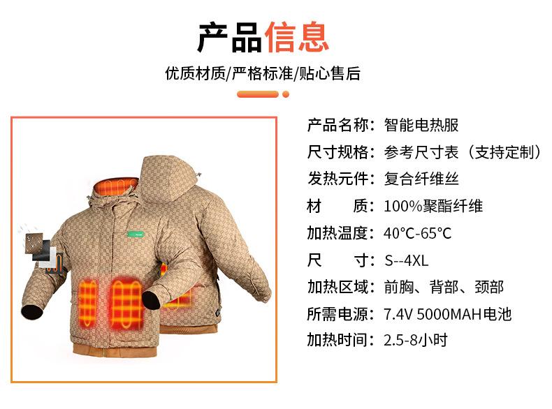 Ropa de algodón para calefacción de invierno, hecha a medida, con capucha, calefacción a temperatura constante, ropa de calefacción eléctrica USB, ropa de algodón de plumón, procesamiento de ropa de calefacción eléctrica