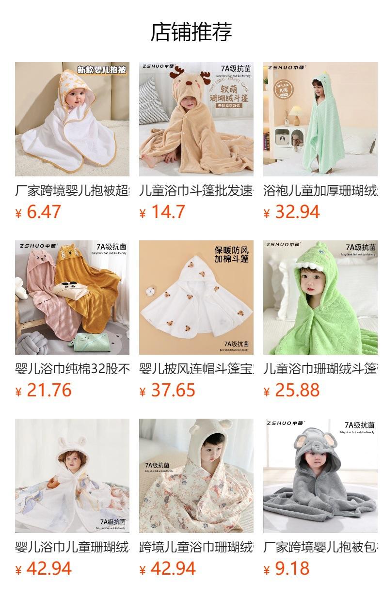 Toalla de Baño para Niños de Vellón Coral Toalla Envolvente para Baño Toalla Envolvente para Recién Nacido Bolsa Capa Absorbente Gruesa de Dibujos Animados Edredón de Sujeción Transfronterizo