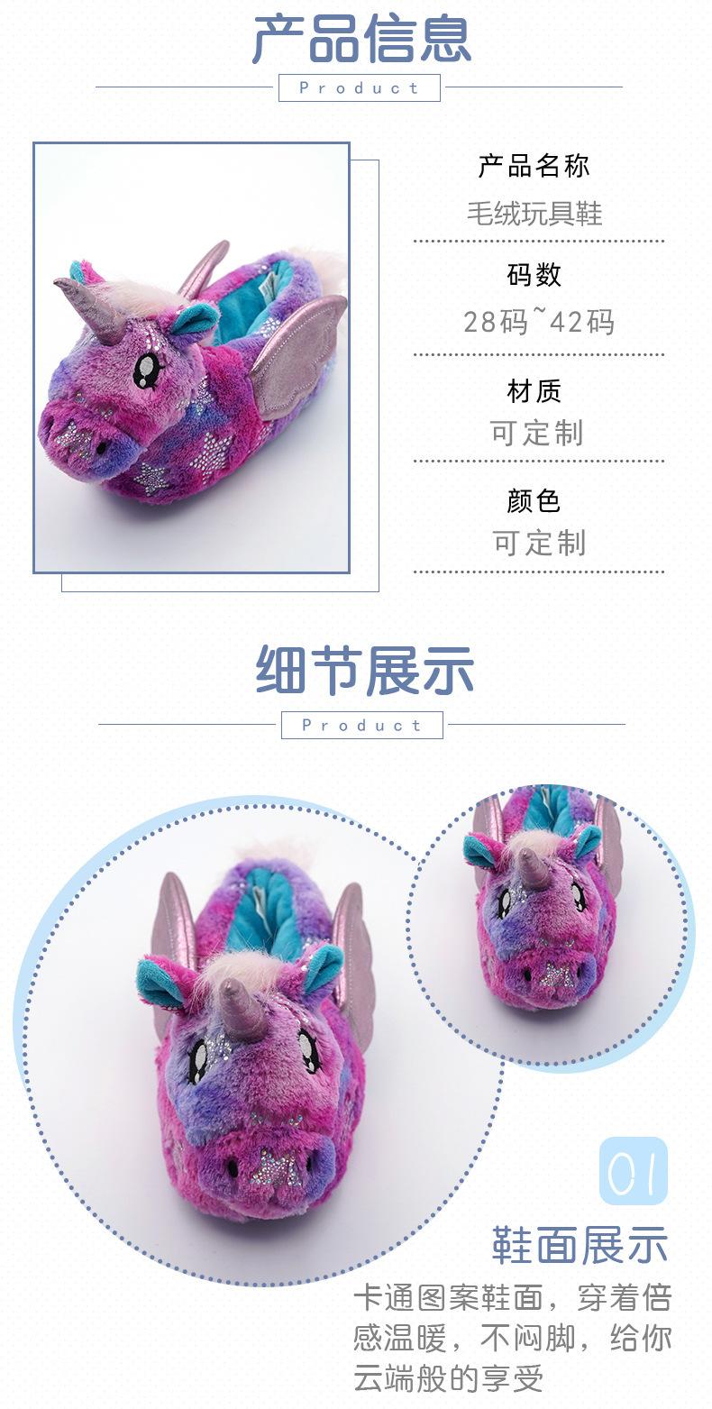 Zapatillas de algodón de felpa para el hogar, venta al por mayor de fábrica, con dibujos de unicornios y animales, cálidas para el hogar.