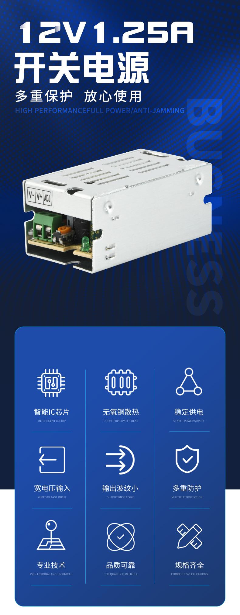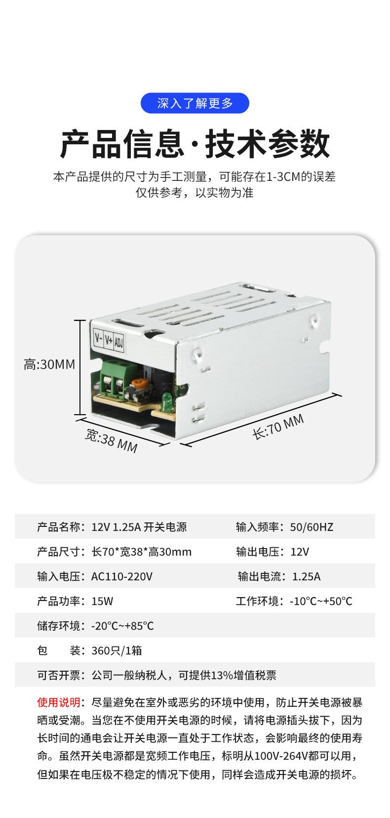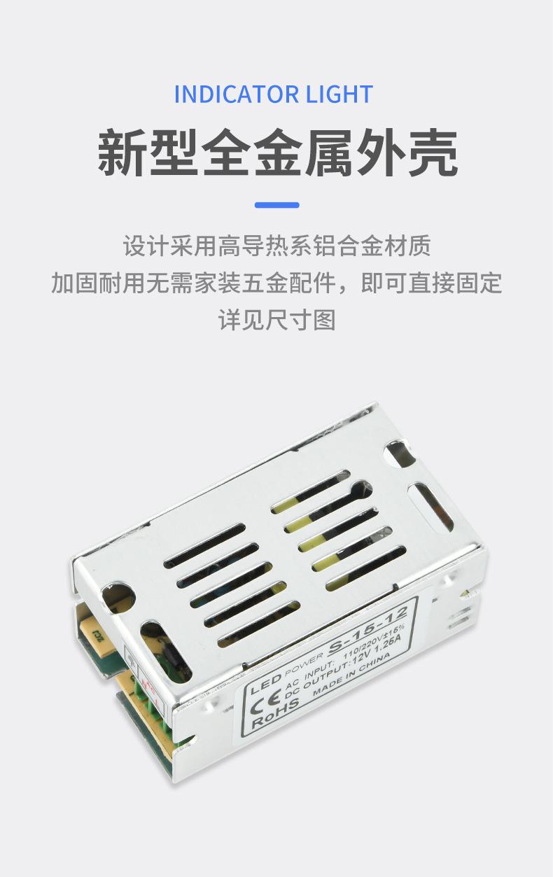 Fuente de alimentación conmutada S-15-12 de 12 V y 1,25 A con carcasa de hierro y transformador de 12 V y 15 W.