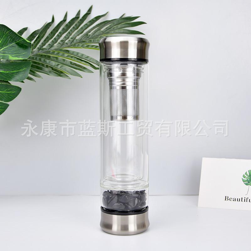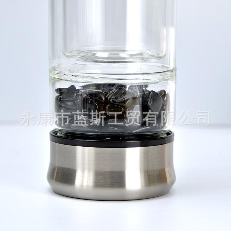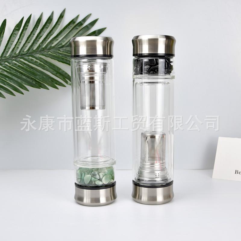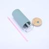 Vaso de agua resistente al calor al por mayor de fábrica con tapa de bambú y funda de silicona, aislamiento térmico antiquemaduras, vaso de vidrio con pajita de vidrio de alto borosilicato