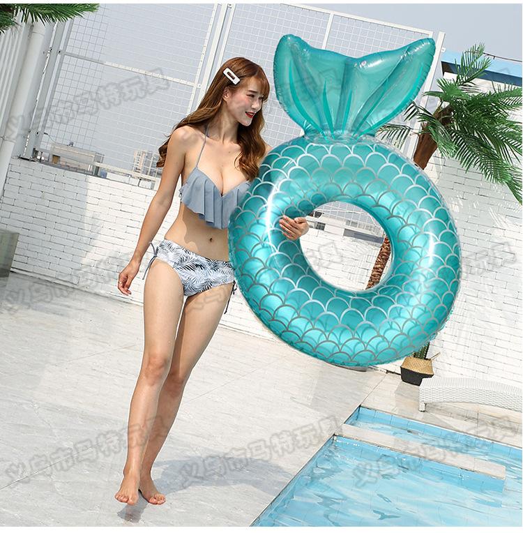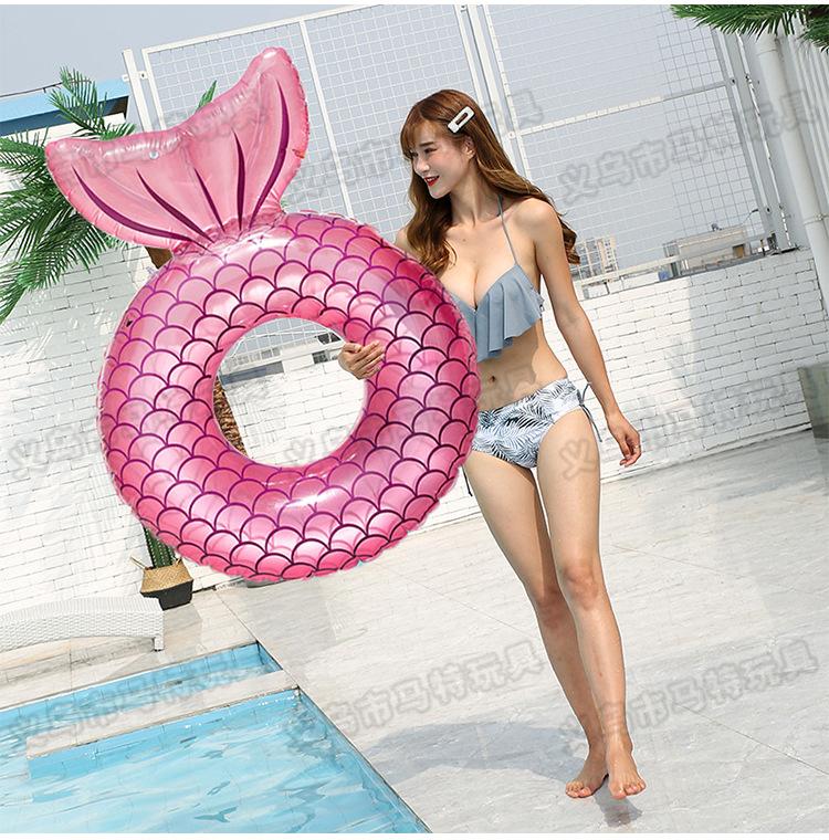 Red roja nueva gruesa sirena natación anillo adulto agua juguetes natación al aire libre respaldo natación anillo