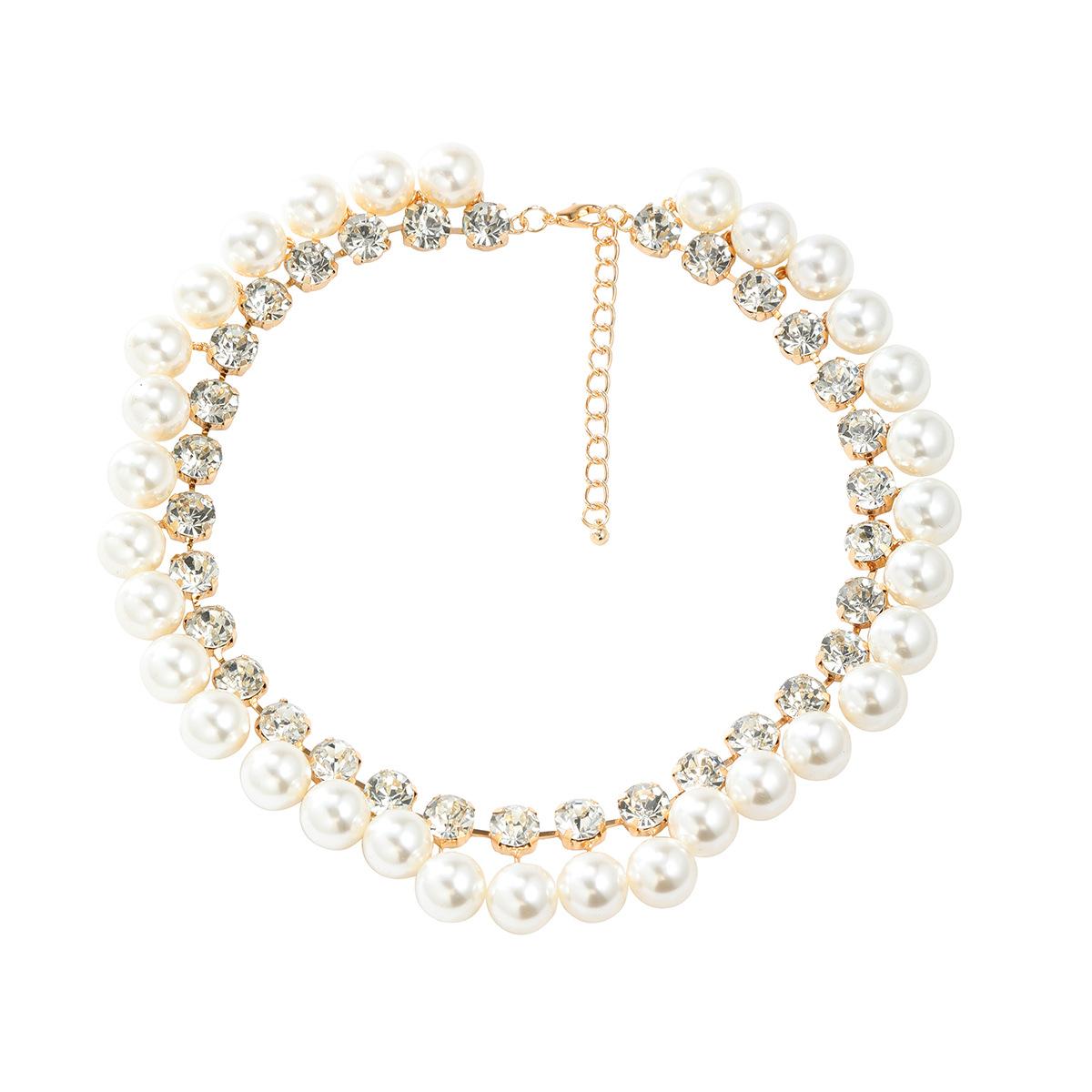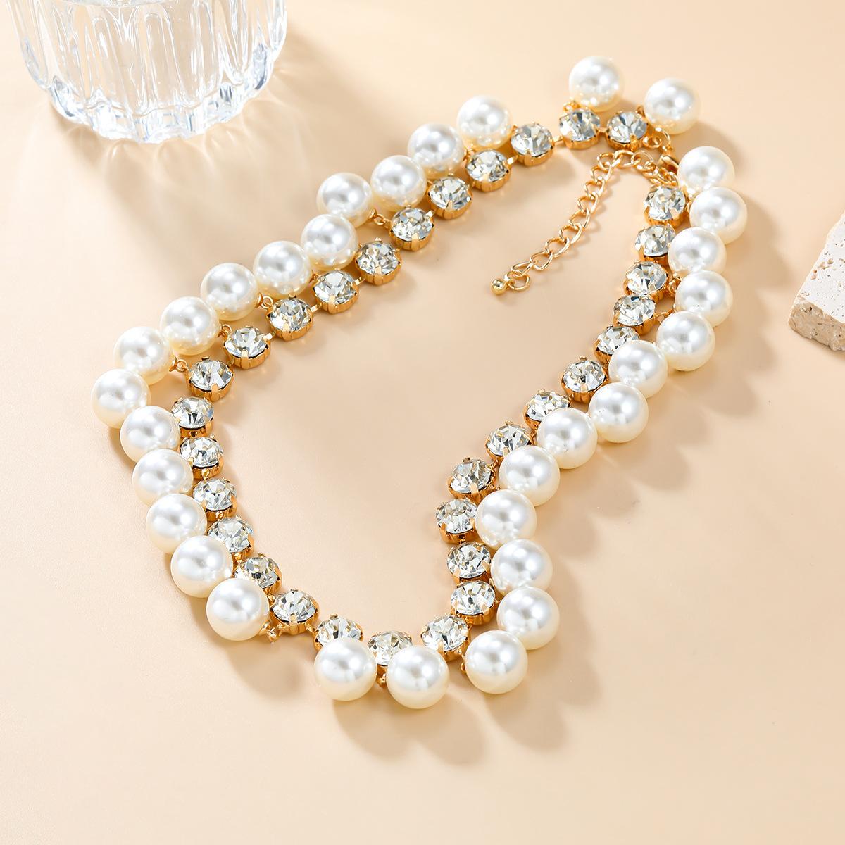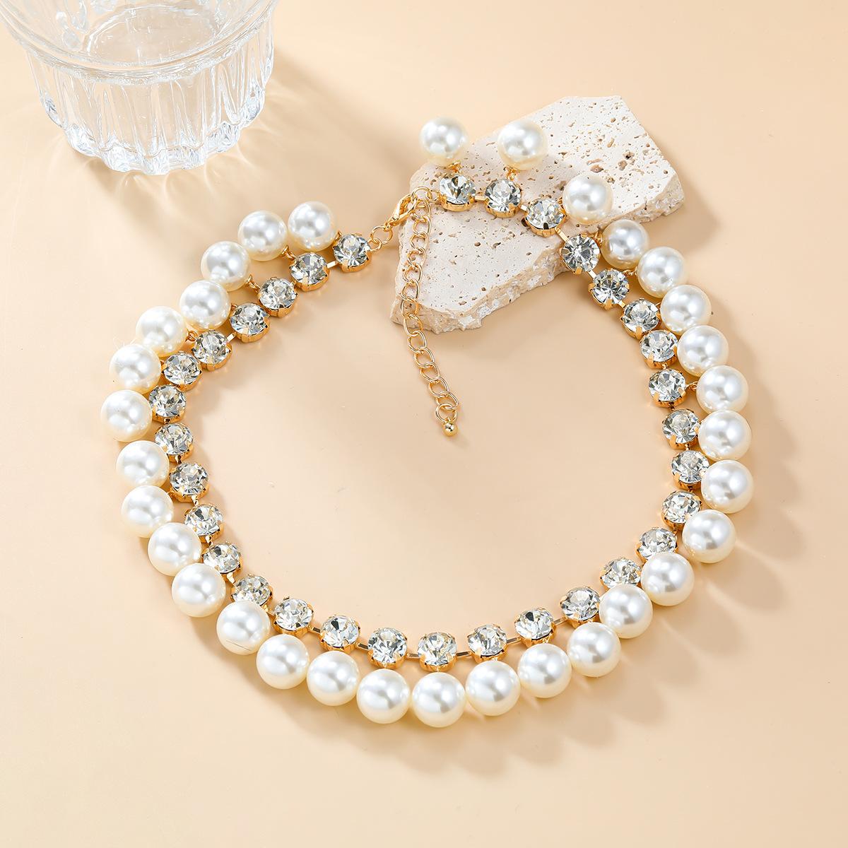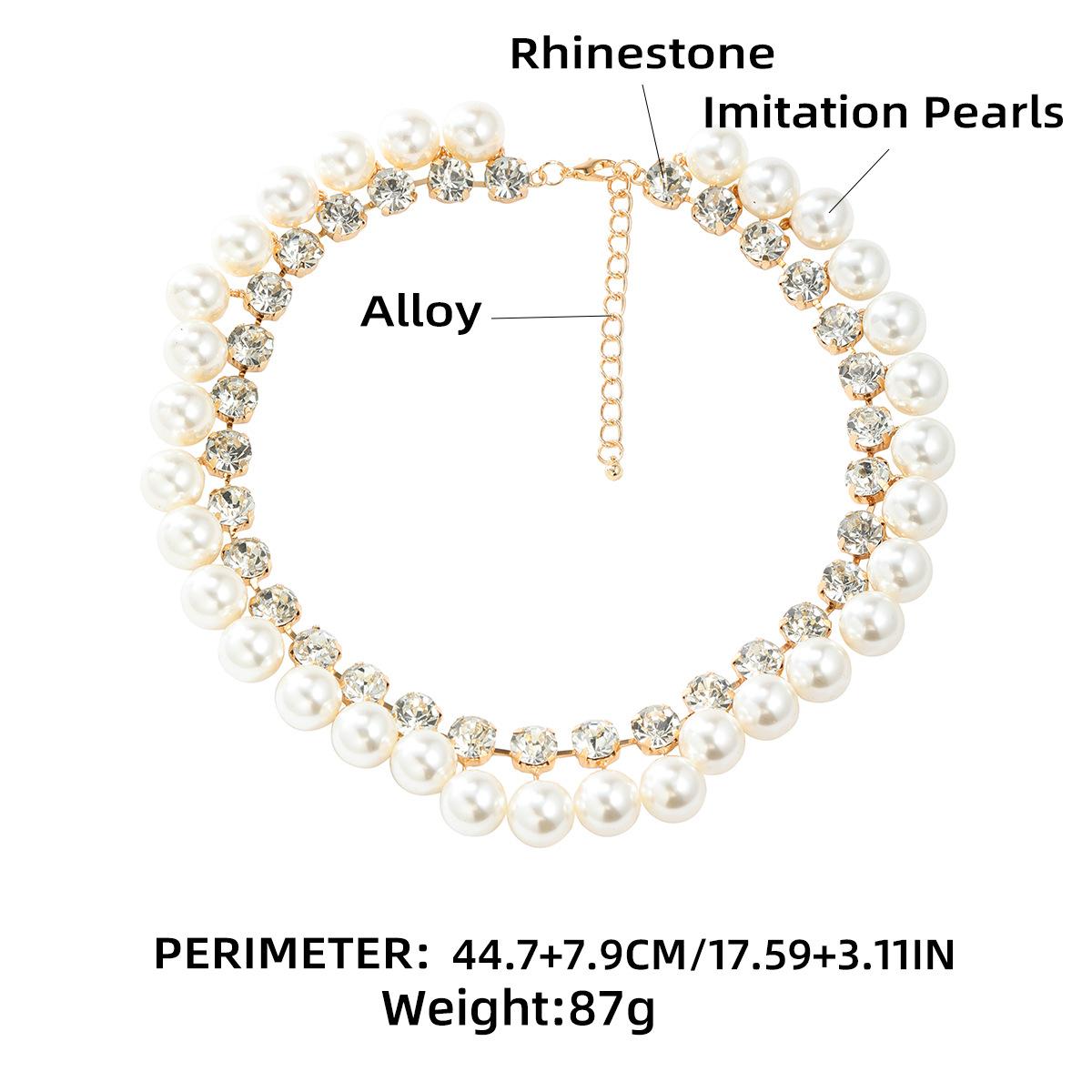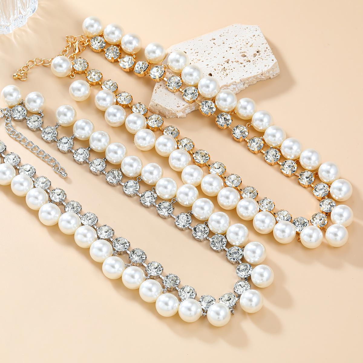 Collar nuevo de otoño e invierno de estilo europeo y americano para mujer, collar de perlas con incrustaciones de diamantes de aleación, accesorios para banquetes, cadena de suéter de lujo ligera francesa