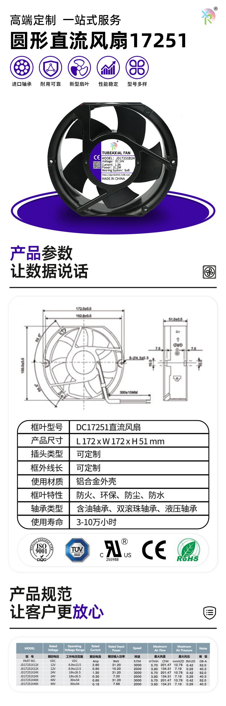 Ventilador de refrigeración de CC DC17251 para equipos navales, máquina de soldadura, módulo de radiador, ventilador de refrigeración industrial, personalización